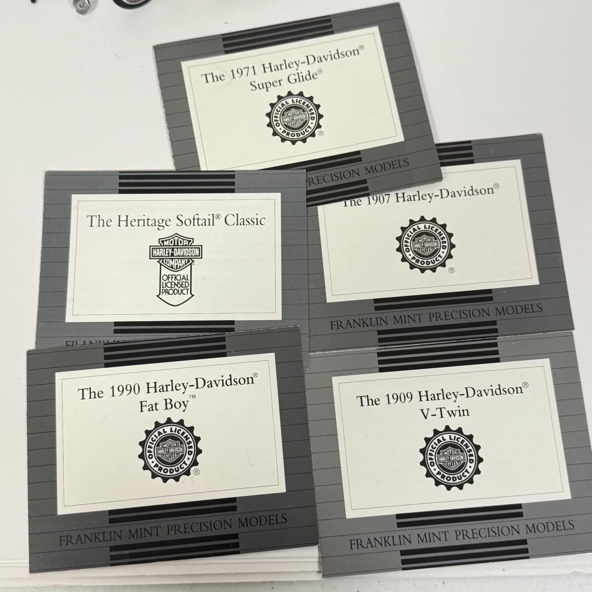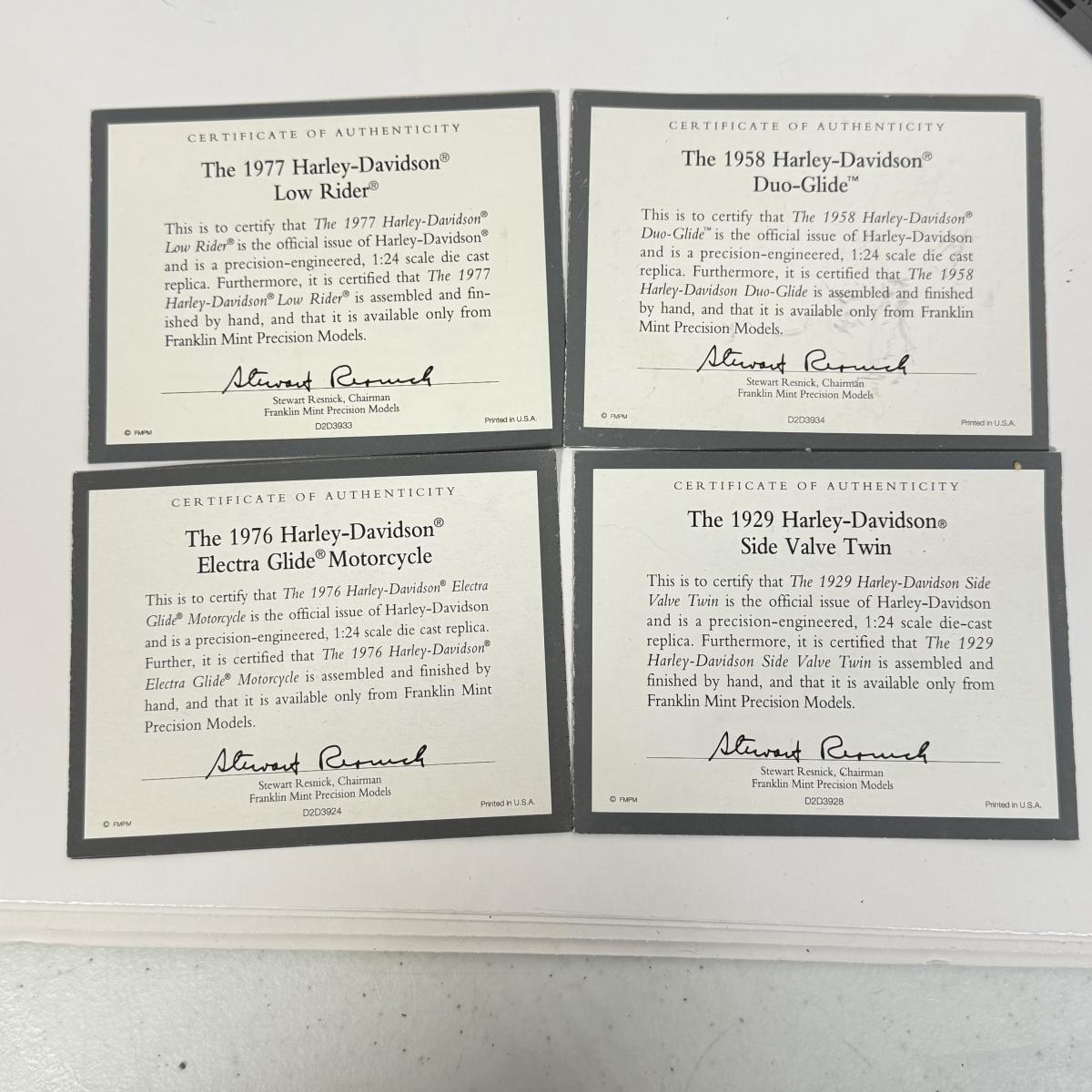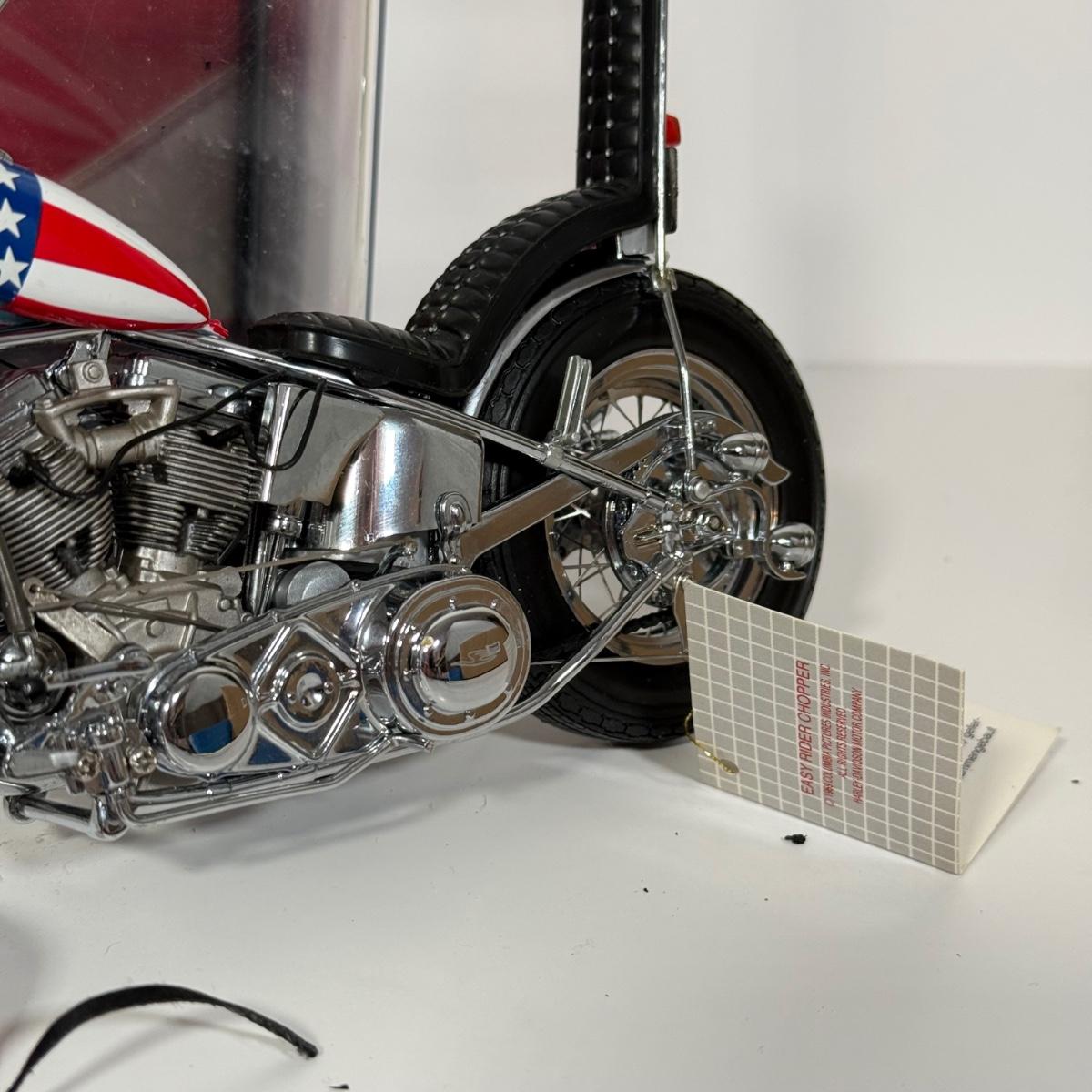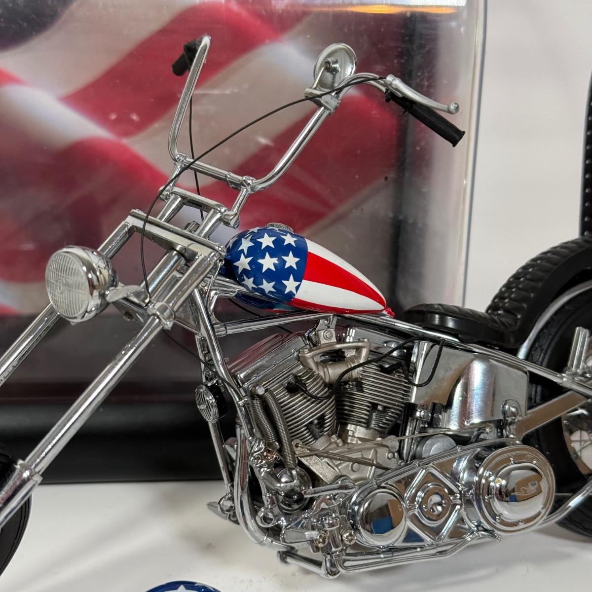 LOT 81: The Franklin Mint Motorcycle Models w/ COAs & American Flag Motorcycle Model w/ Helmet & Display Case