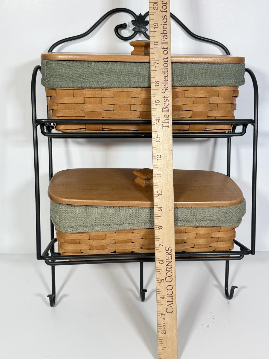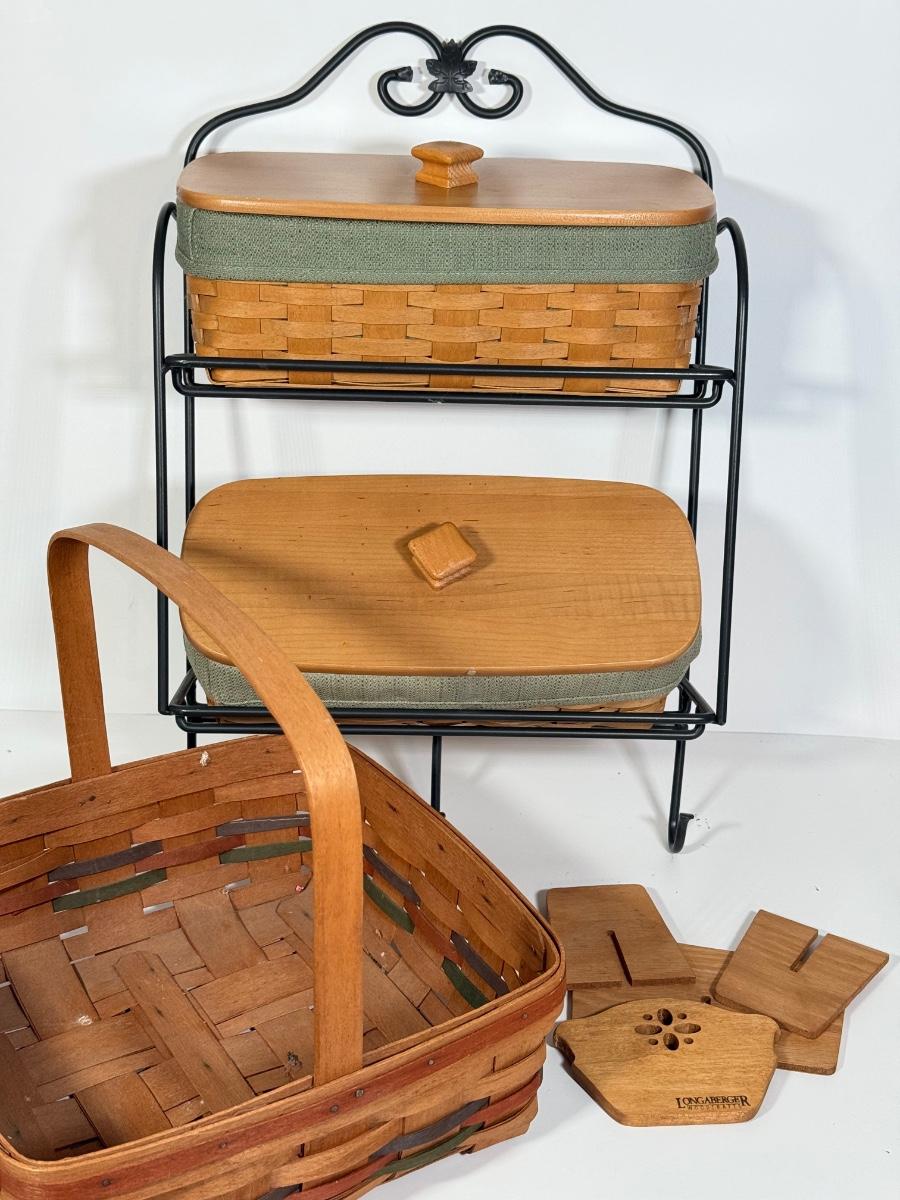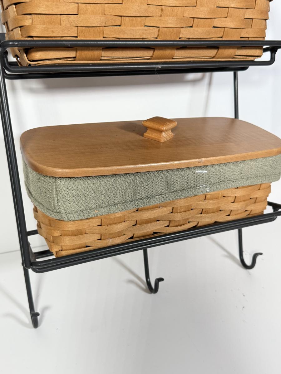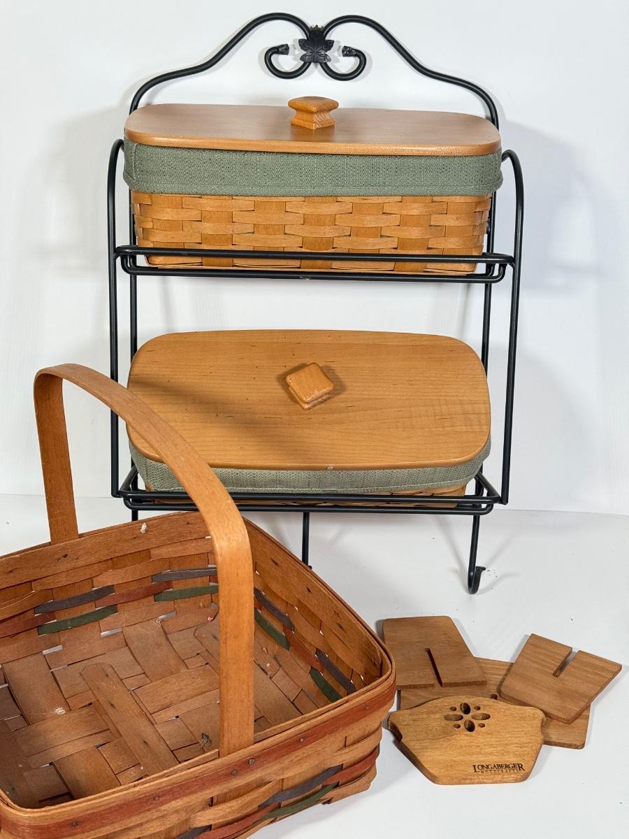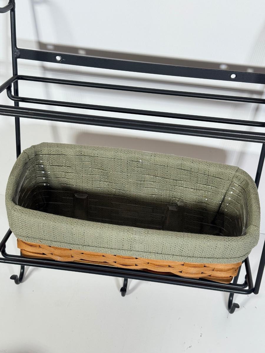 LOT 84: Green Angled Longaberger Wall Baskets w/ Metal Mount & Square Handled Longaberger Basket