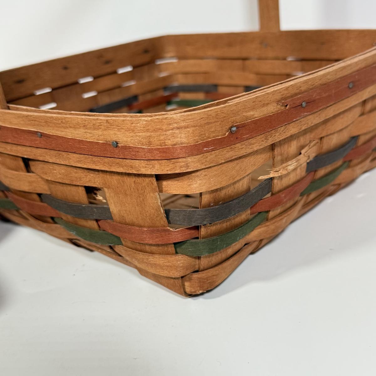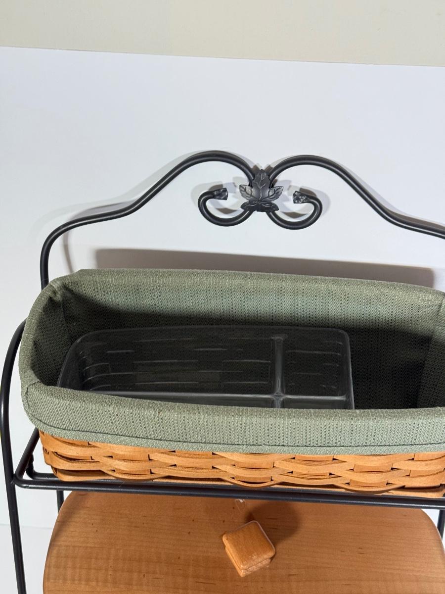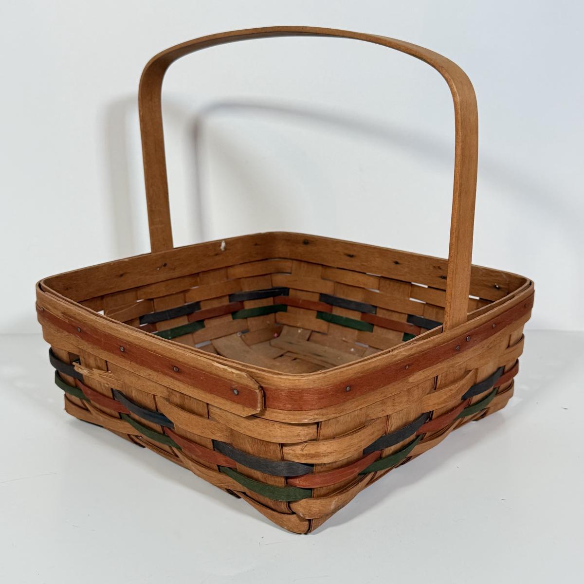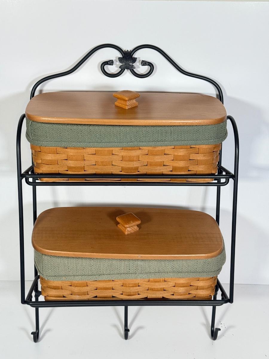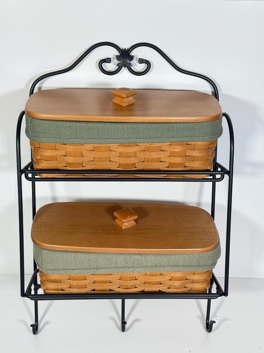 LOT 84: Green Angled Longaberger Wall Baskets w/ Metal Mount & Square Handled Longaberger Basket