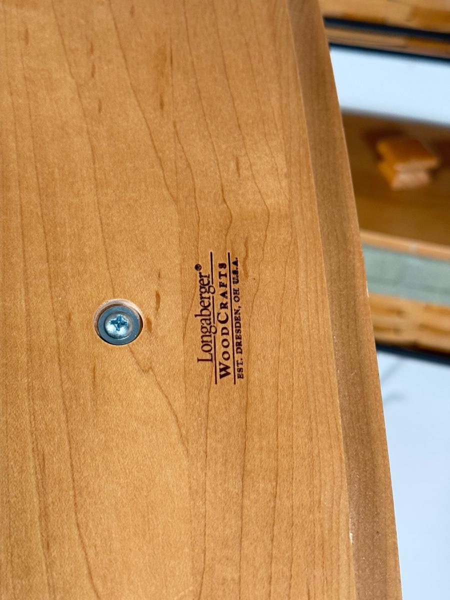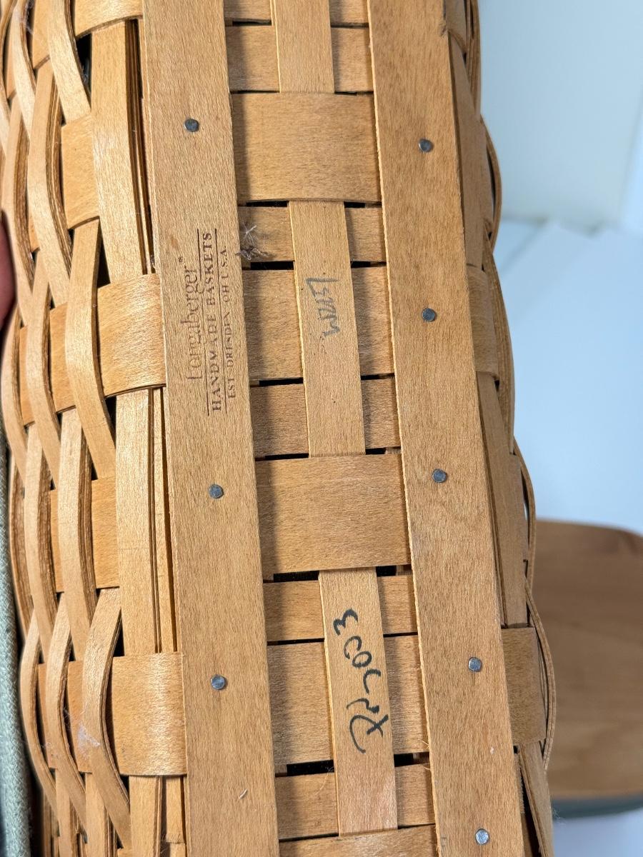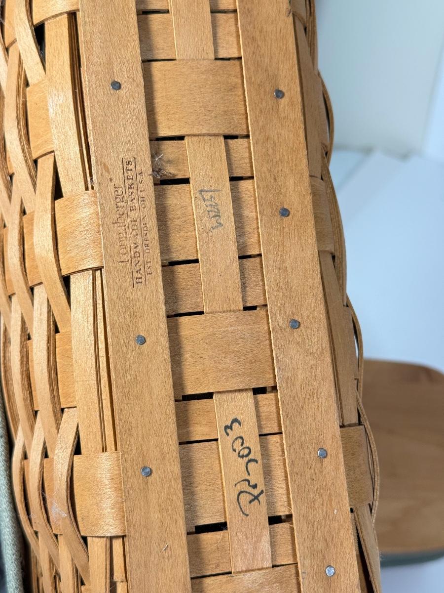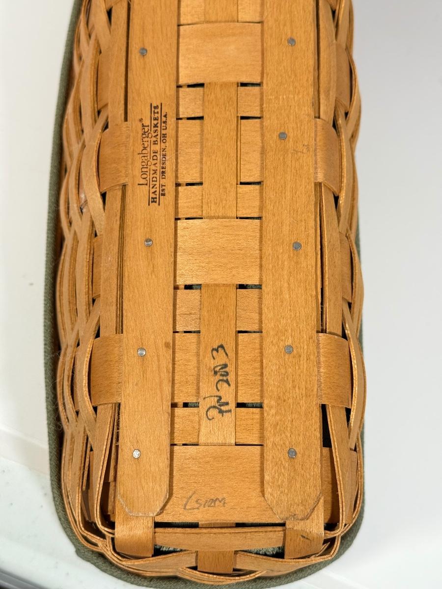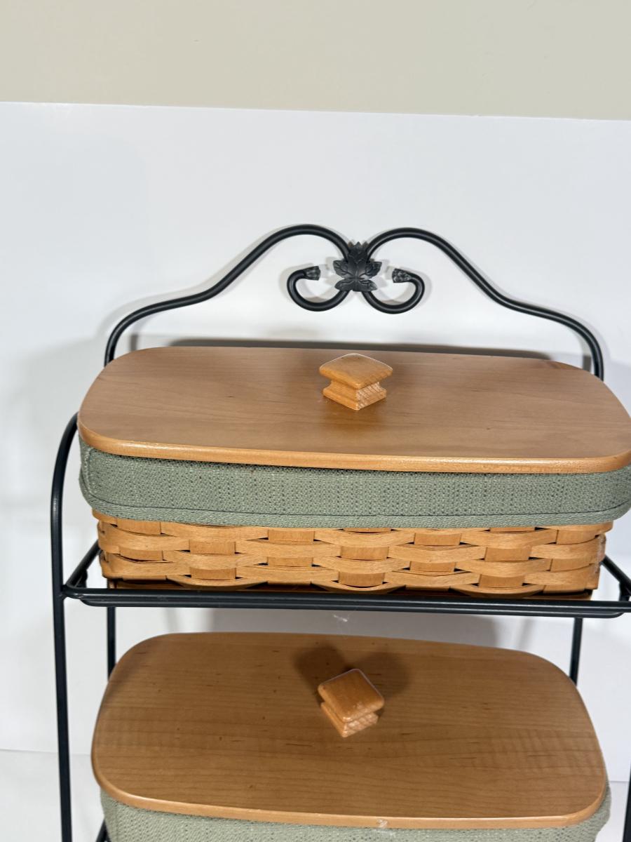 LOT 84: Green Angled Longaberger Wall Baskets w/ Metal Mount & Square Handled Longaberger Basket