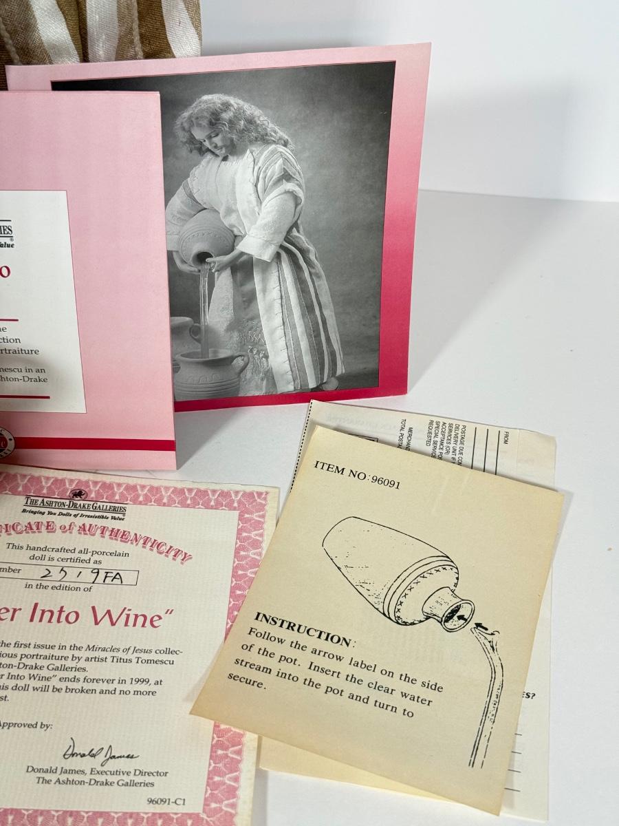 LOT 95: Jesus Water into Wine Doll by Ashton-Drake Galleries w/ Pots & COA