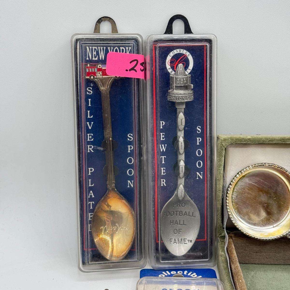 LOT 147: Collection of Souvenir Spoons: Pewter, Silver Plate & More