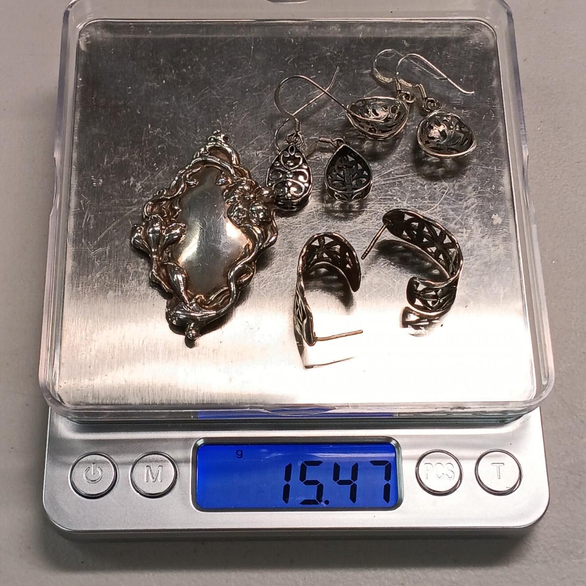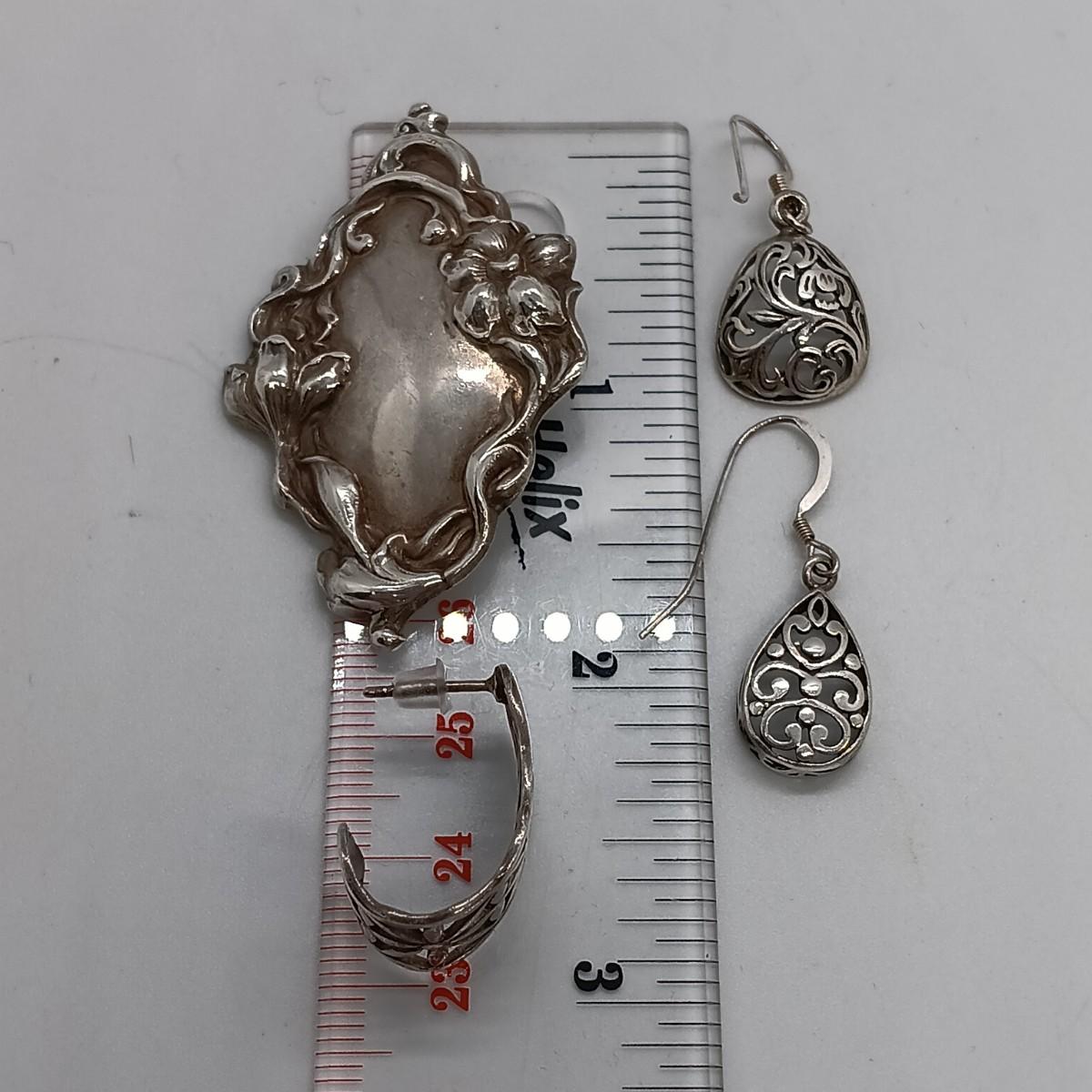 LOT 8: Vintage Sterling Earrings & Brooch 15.47g