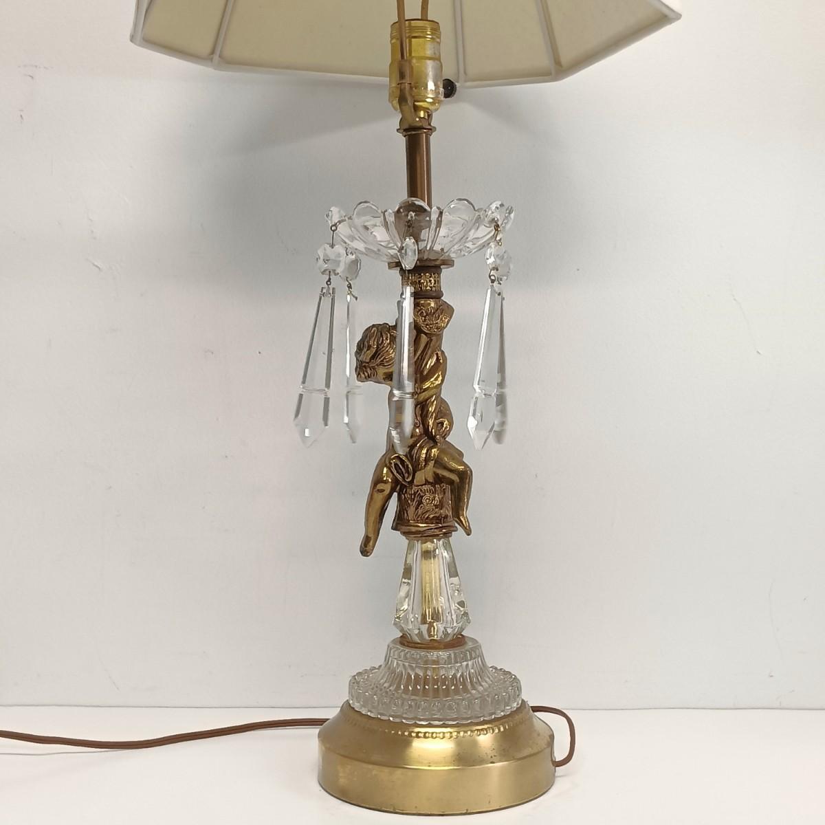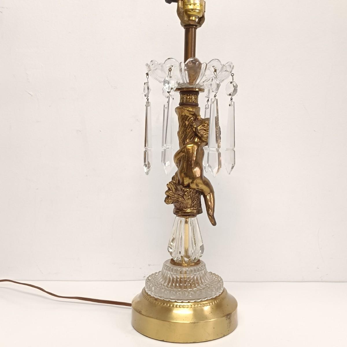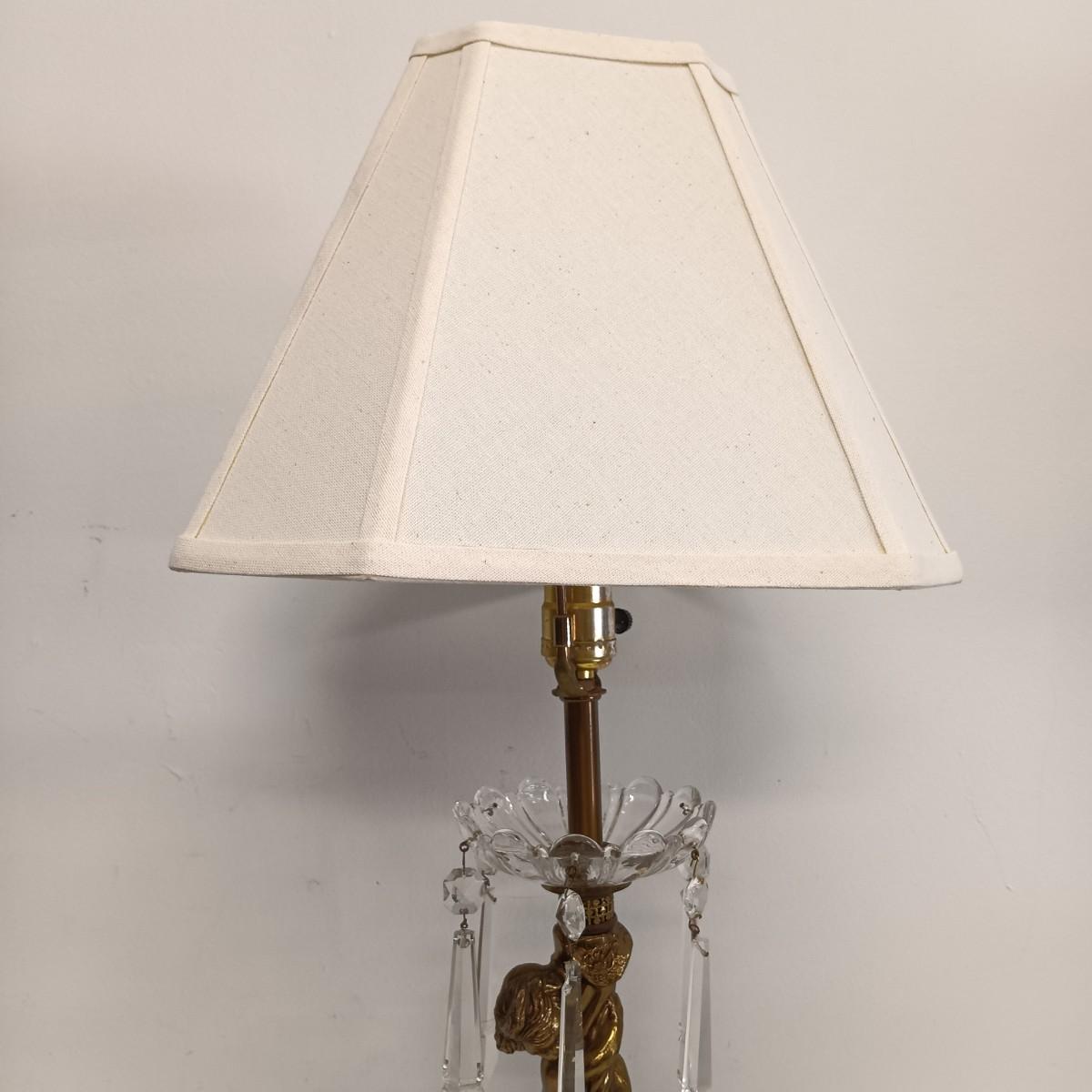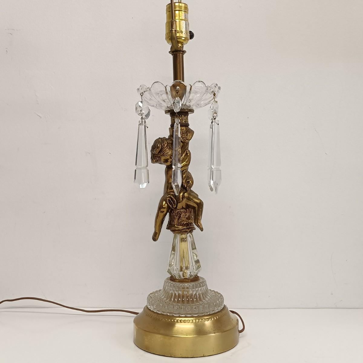 LOT 25: Cherub Crystal and Brass Table Lamp