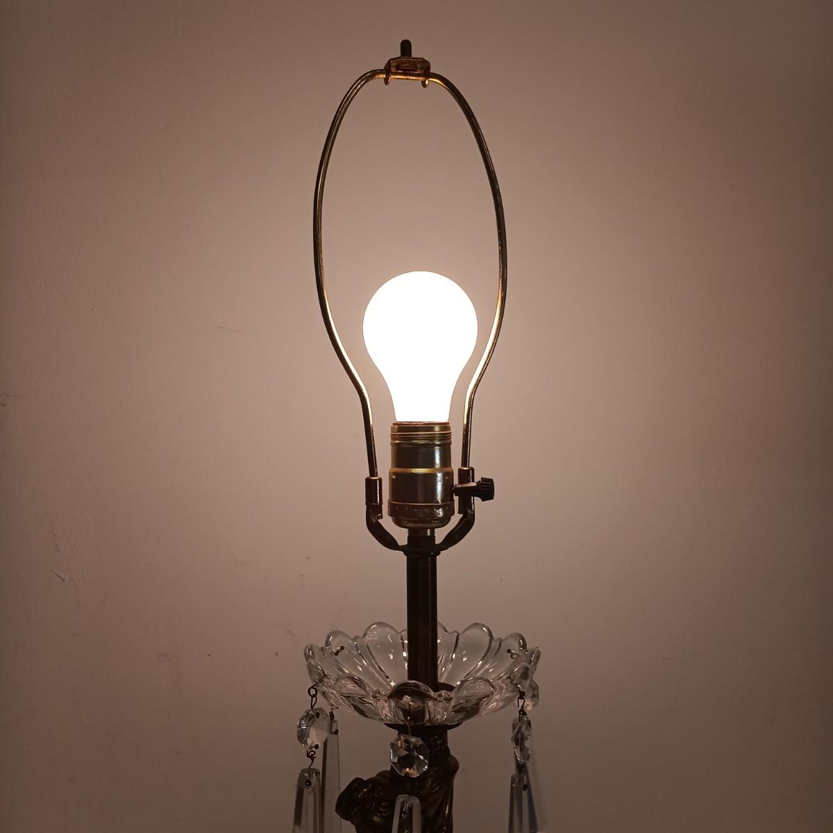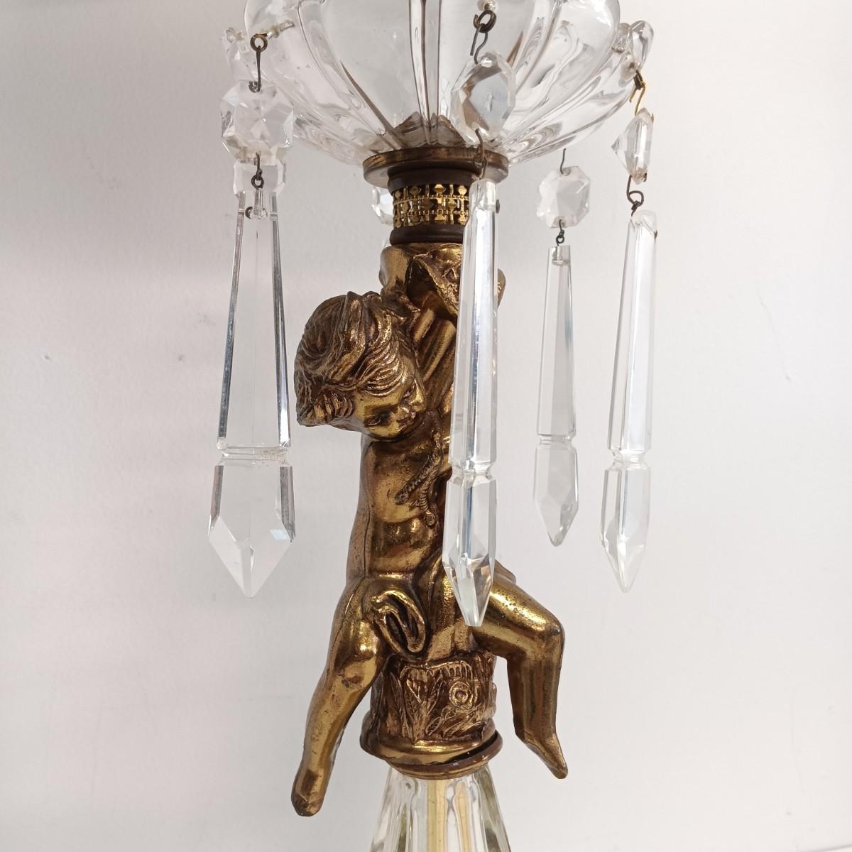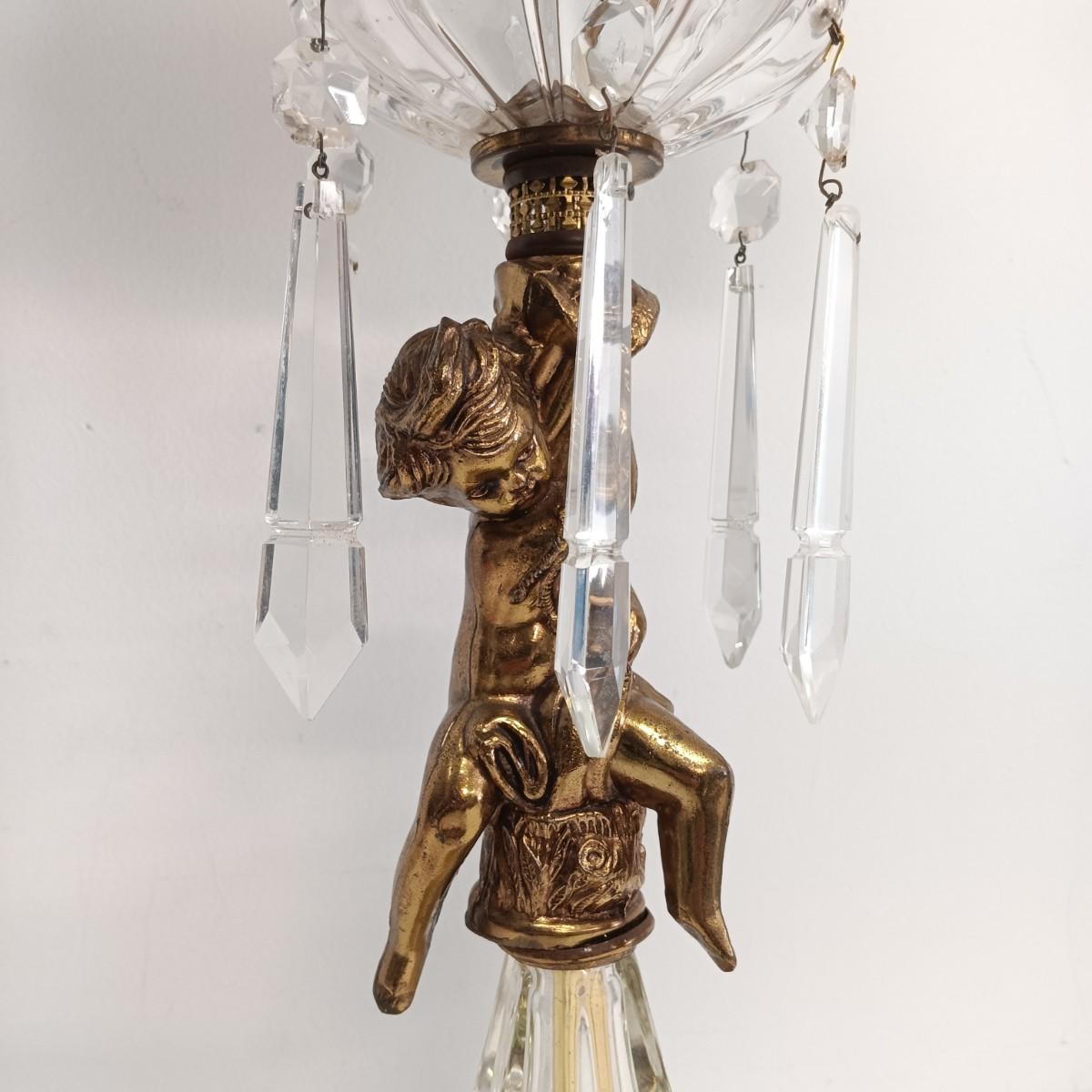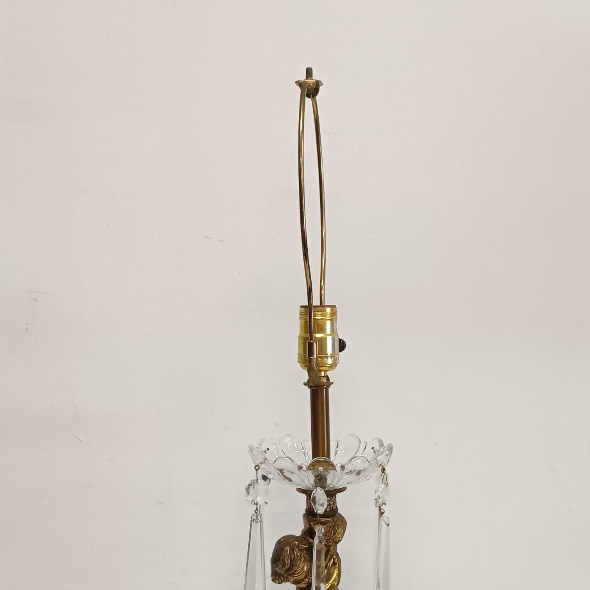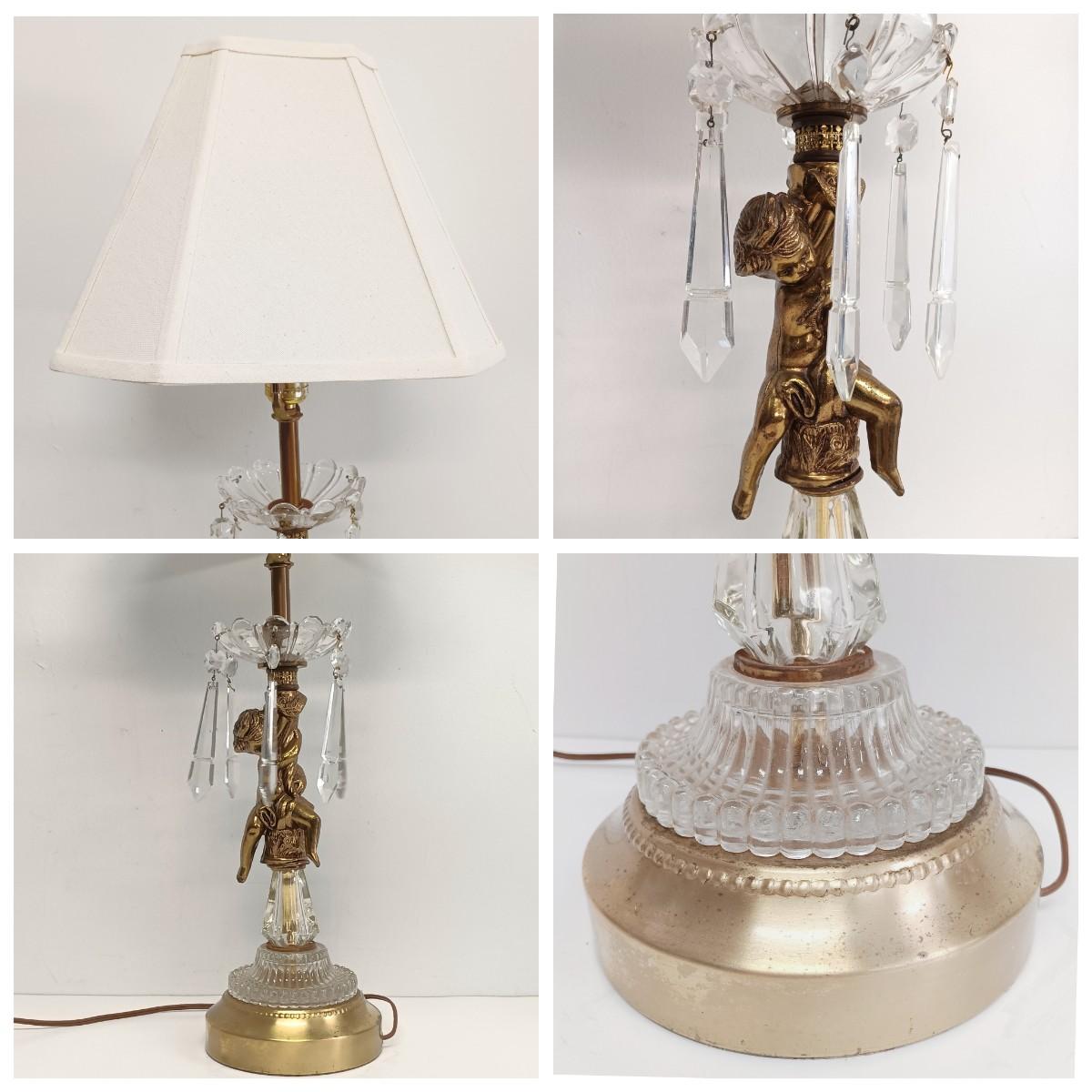 LOT 25: Cherub Crystal and Brass Table Lamp