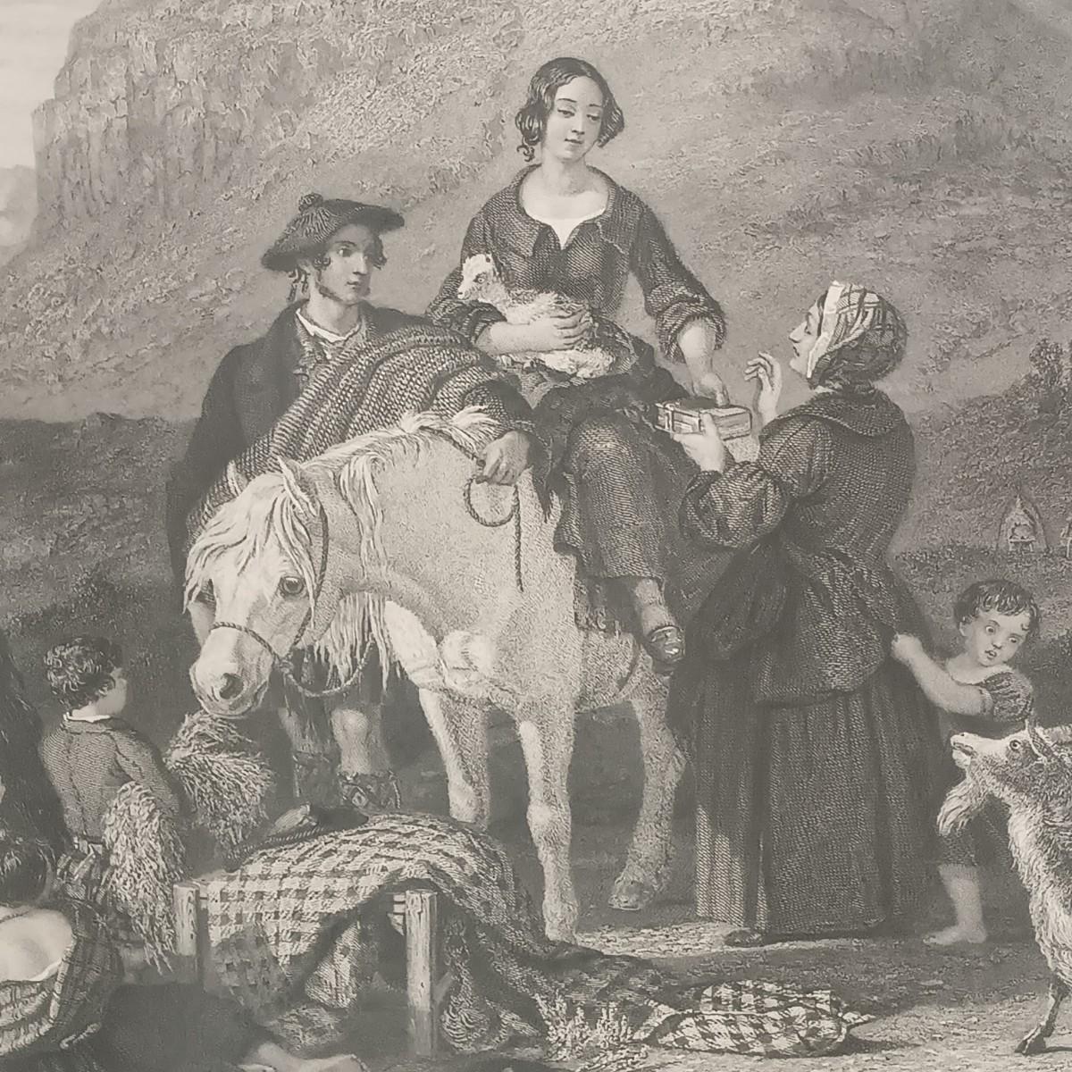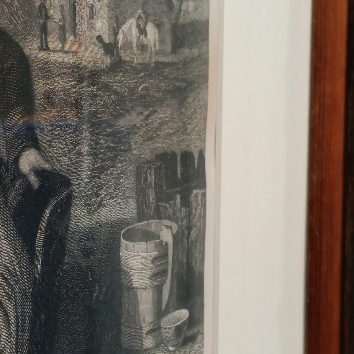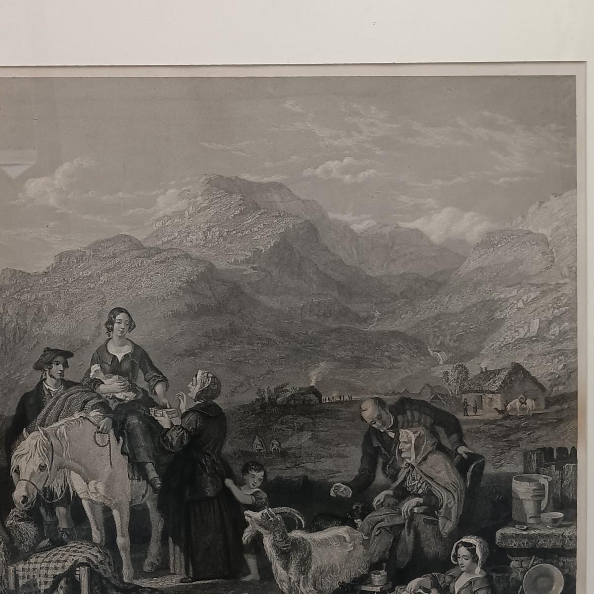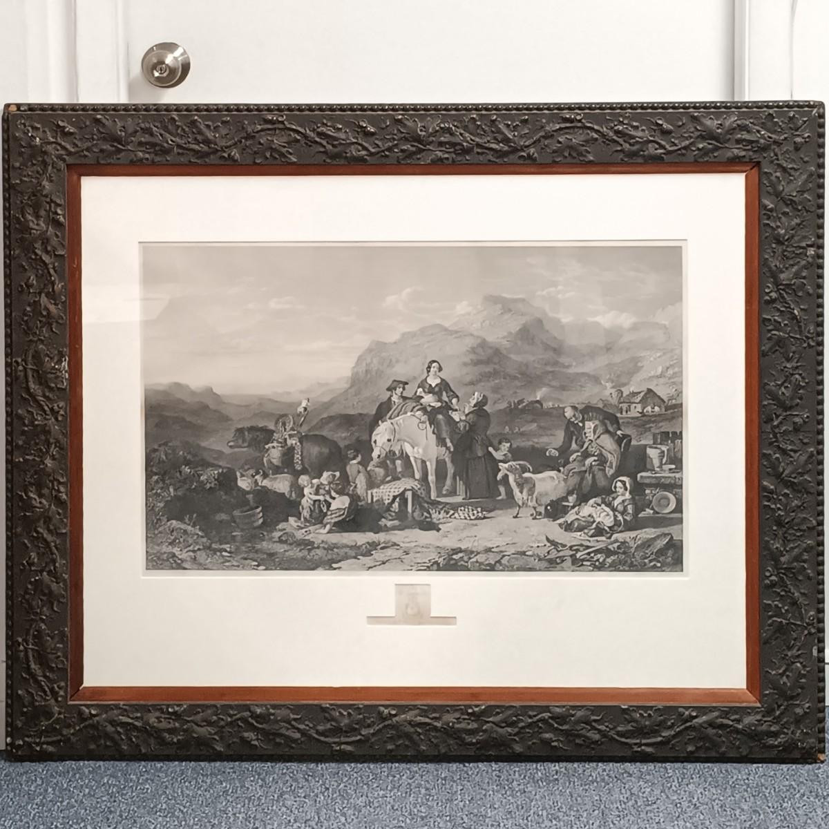 LOT 29: Engraving of the Departure of the Highland Bride in an Antique Oak Leaf Wood Frame