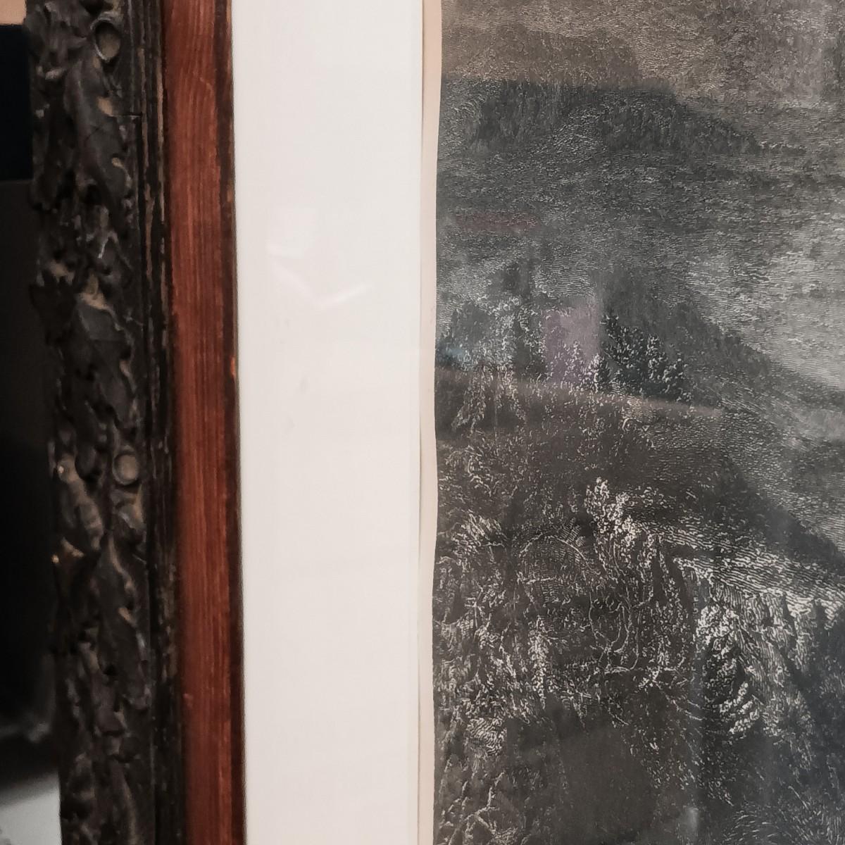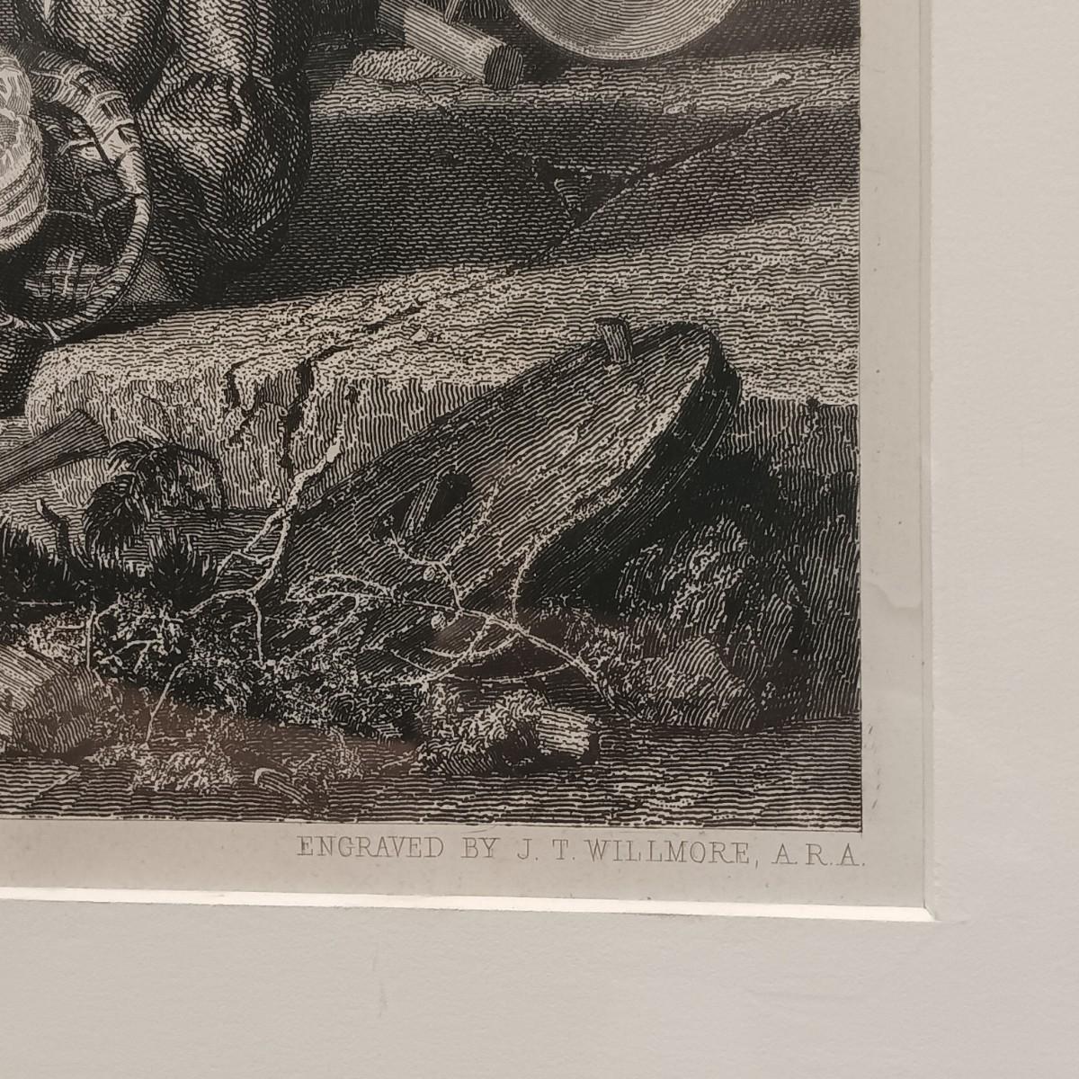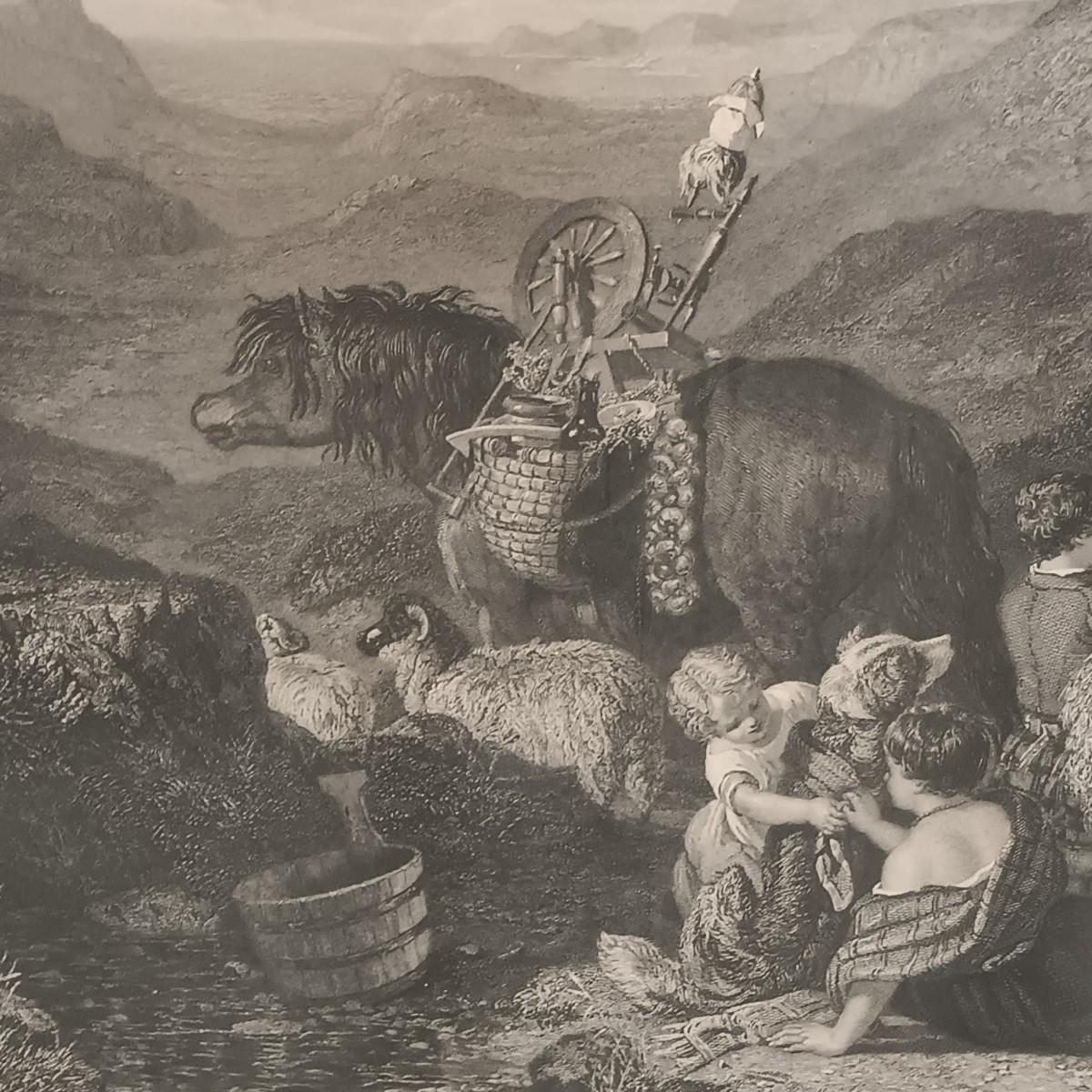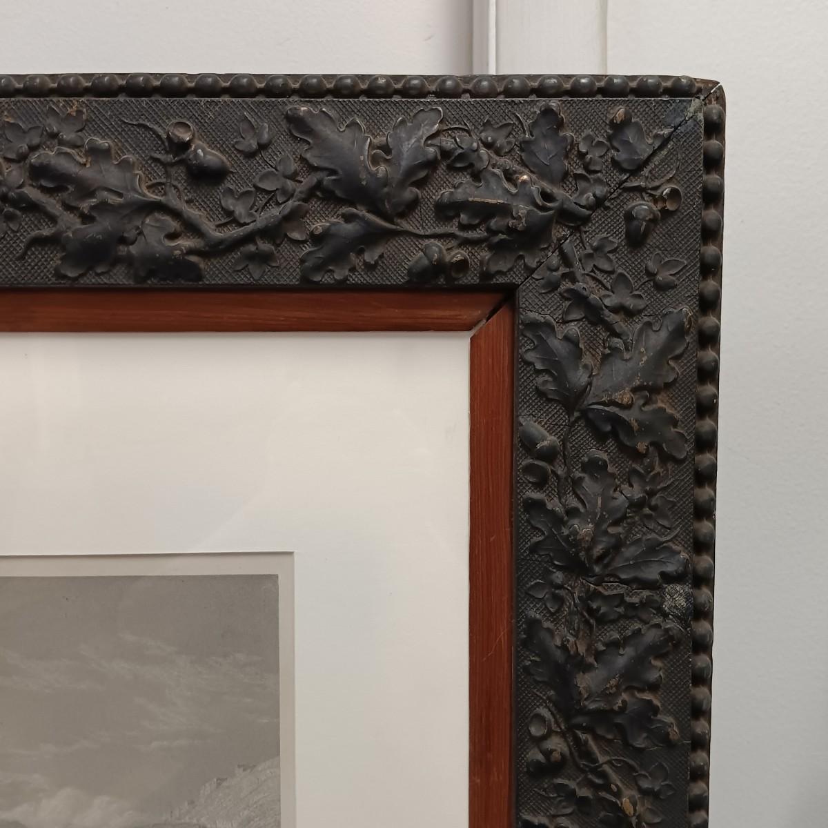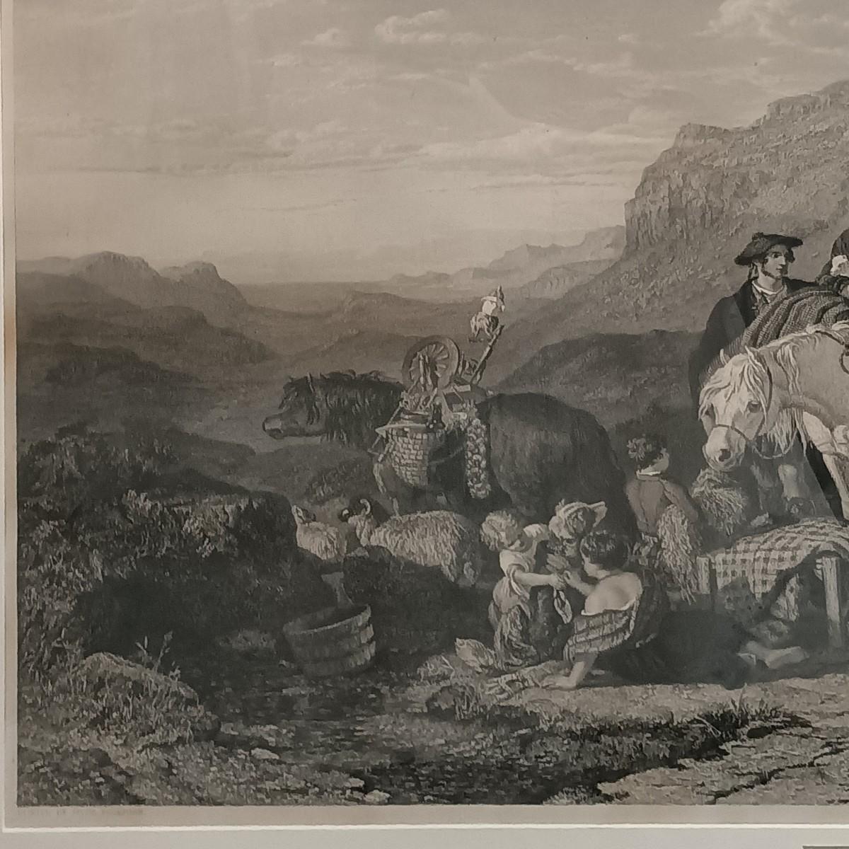 LOT 29: Engraving of the Departure of the Highland Bride in an Antique Oak Leaf Wood Frame