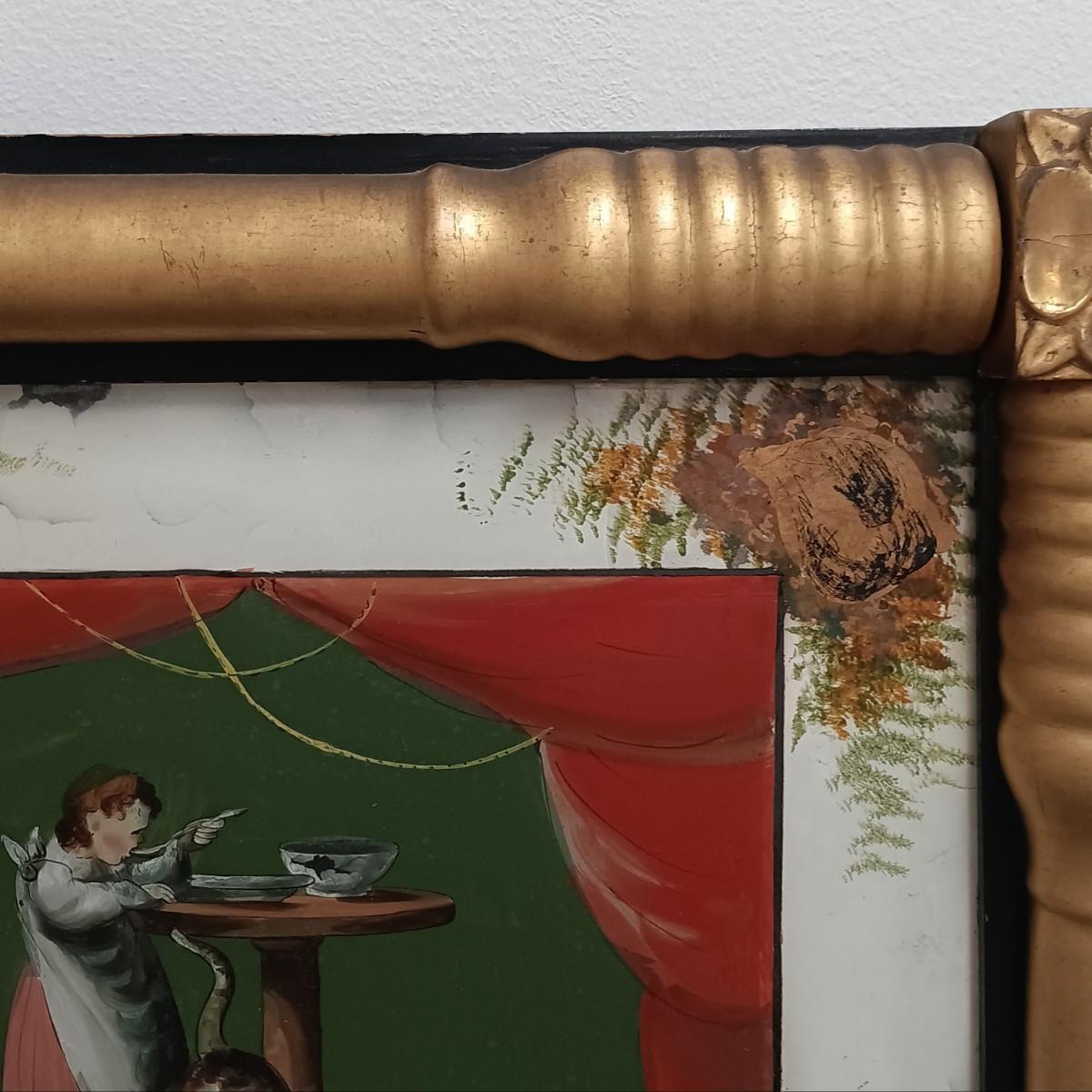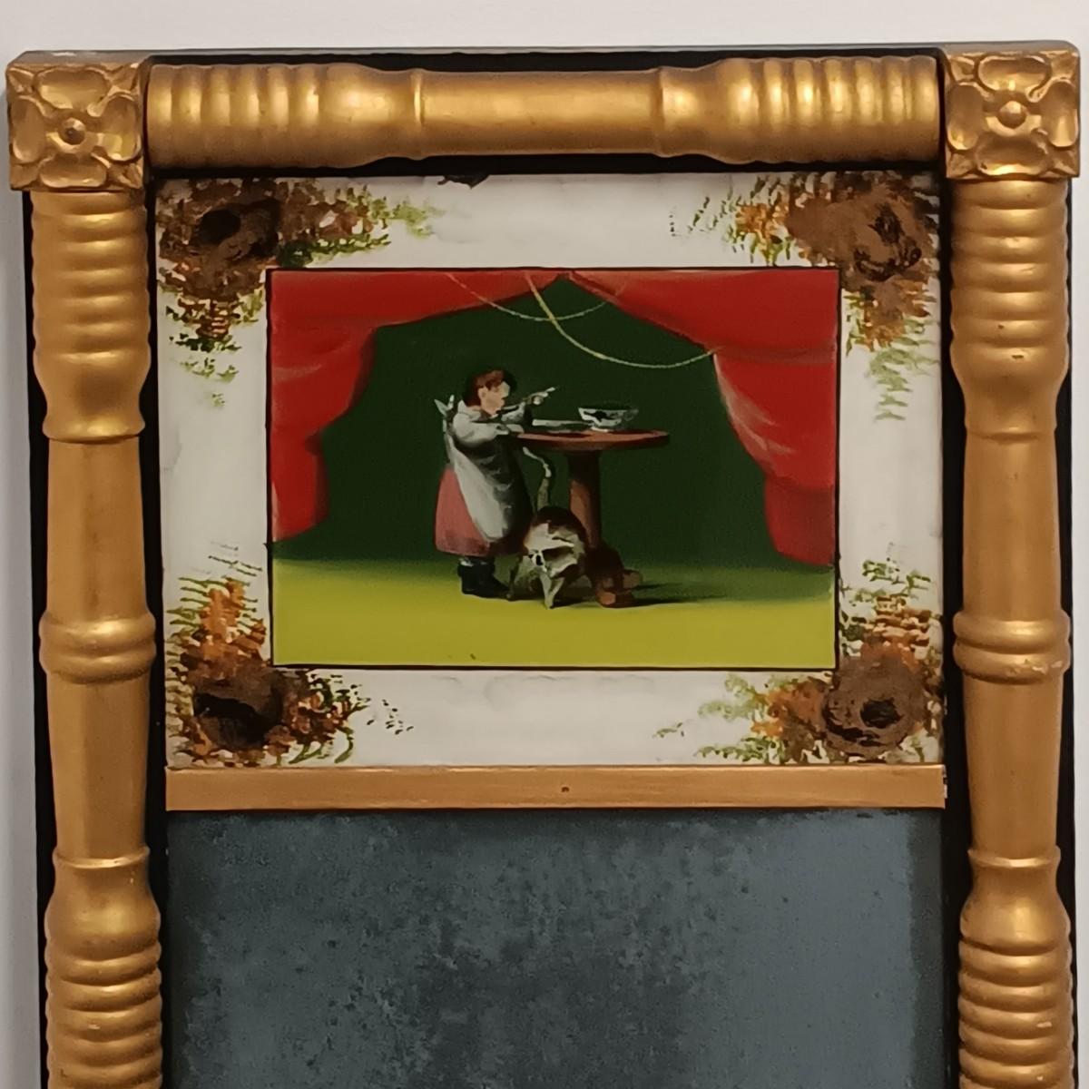 LOT 31: Antique Reverse Painted Mirror