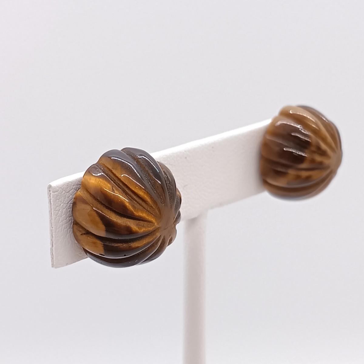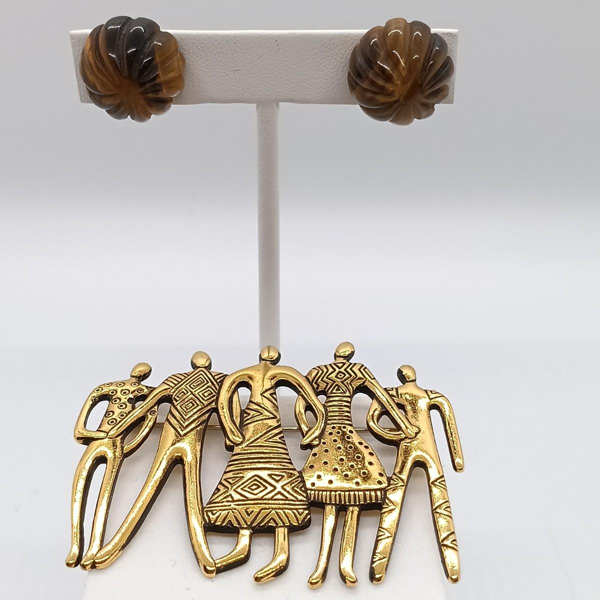 LOT 40: Tiger's Eye Earrings with 14K Backs & Laurel Birch Brooch