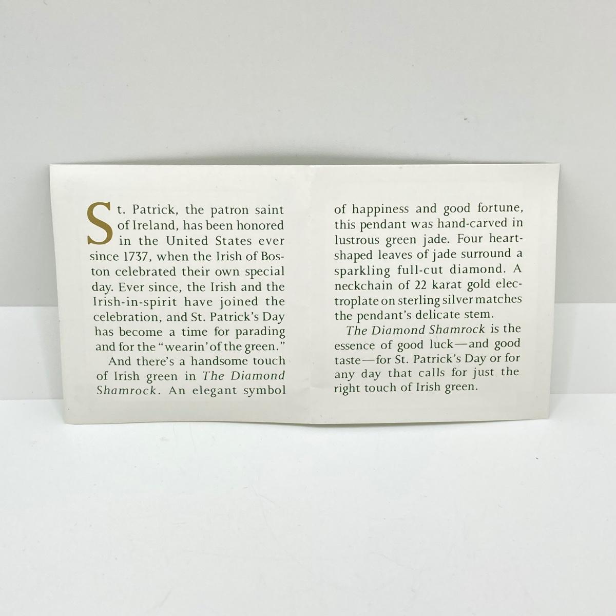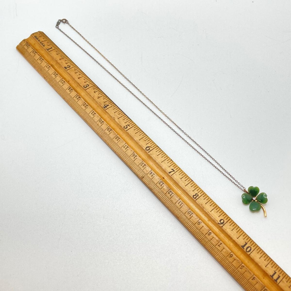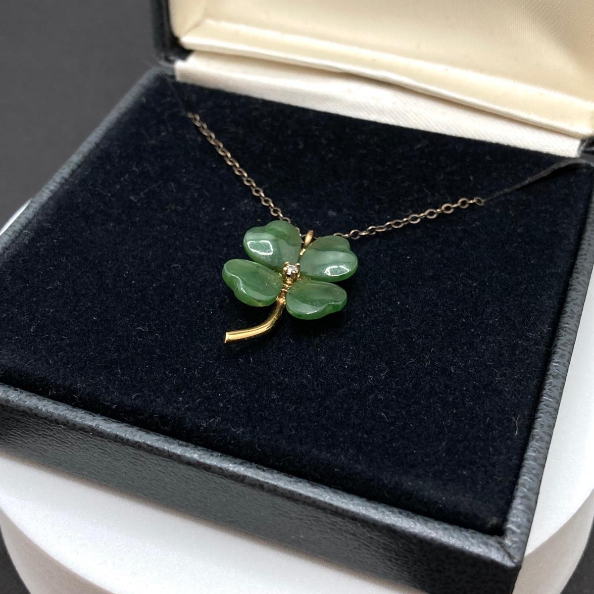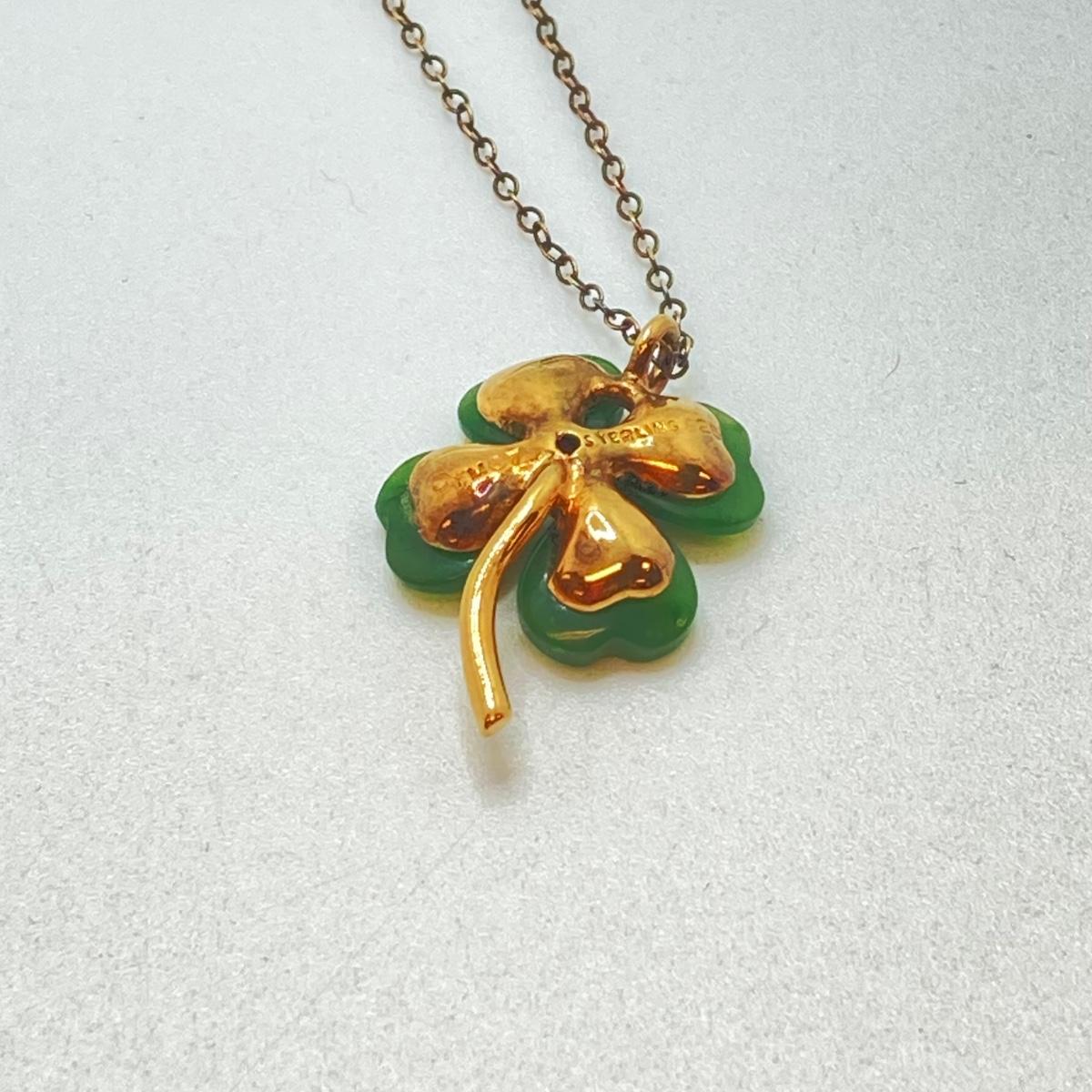 LOT 57: Vintage / Rare The Franklin Mint "The Diamond Shamrock" - Jade Four (4) Leaf Clover with Diamond Center and Sterling Pendant Necklace
