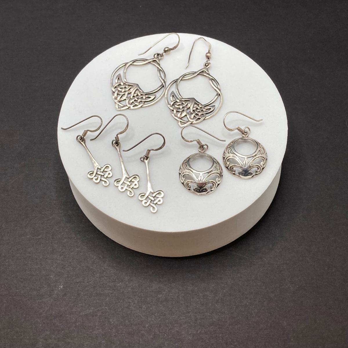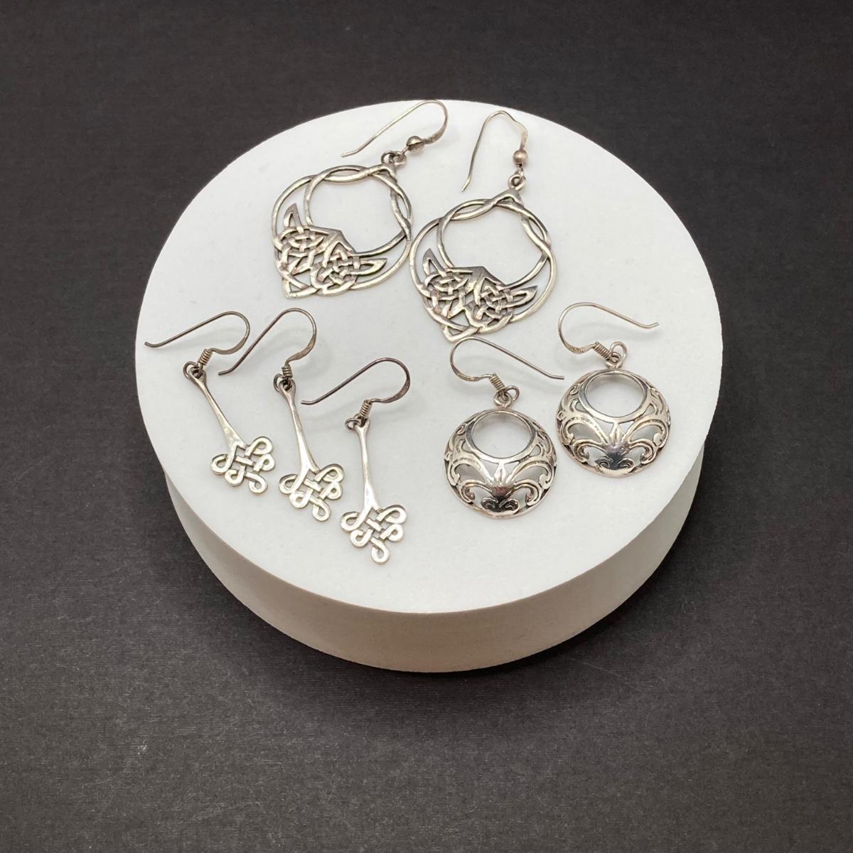 LOT 59: Three Pair of Sterling Silver Dangle Earrings