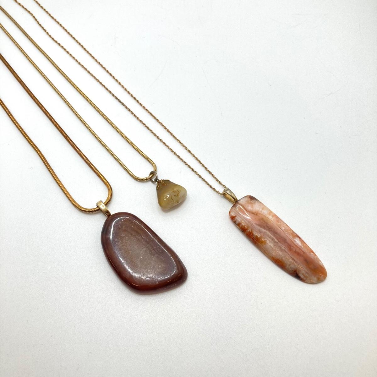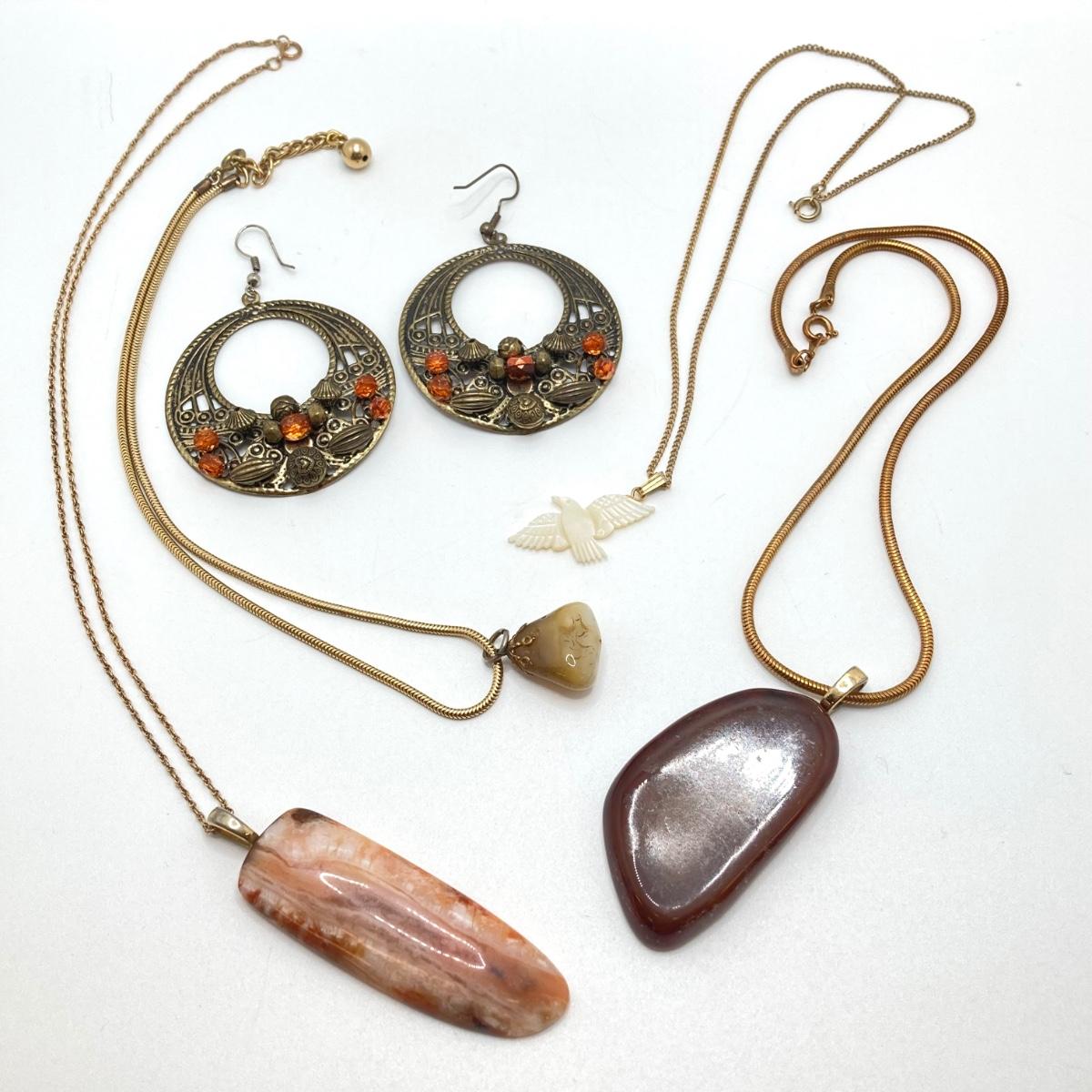 LOT 71: Vintage Jewelry - Polished Stone Pendant Necklaces, Ornate Earrings and More