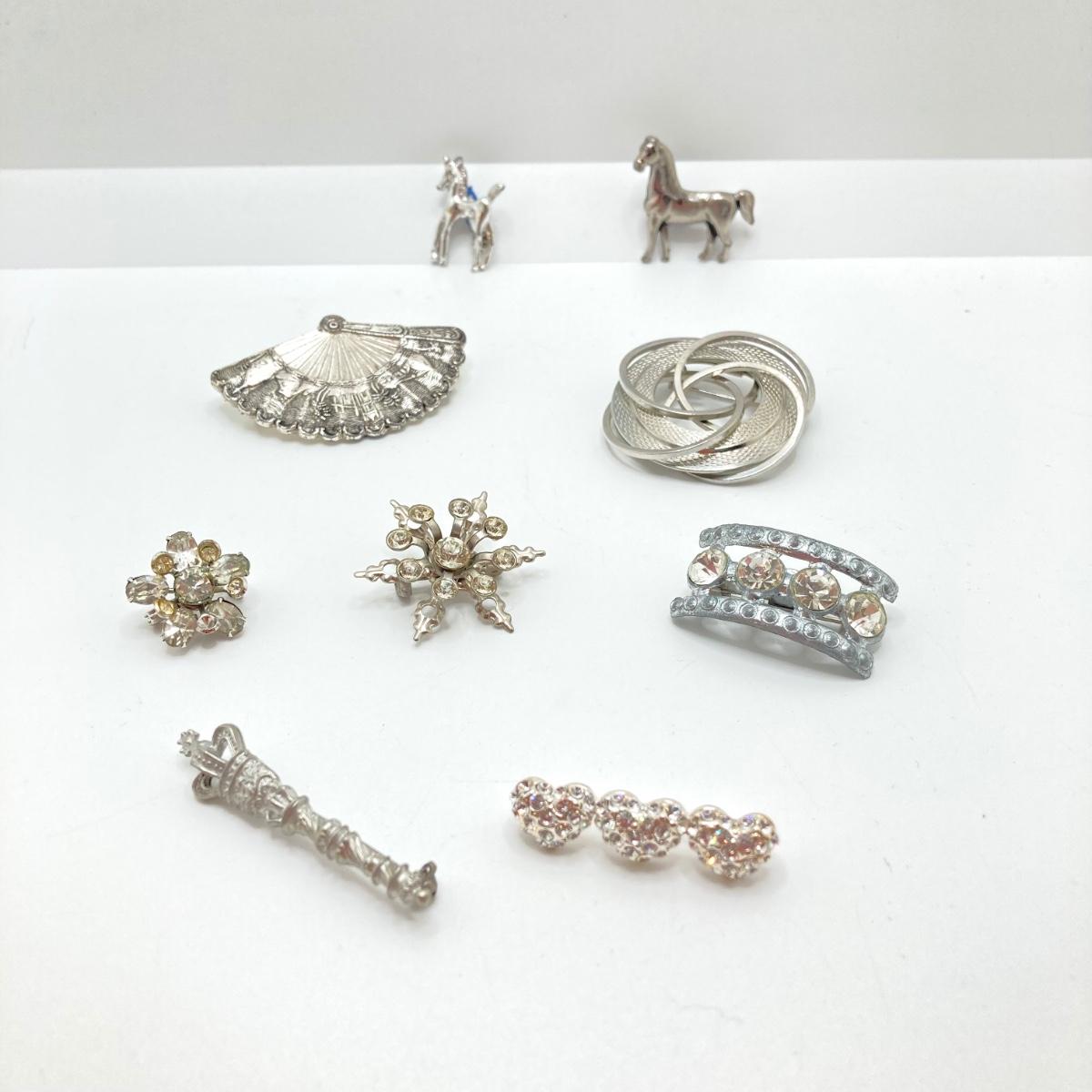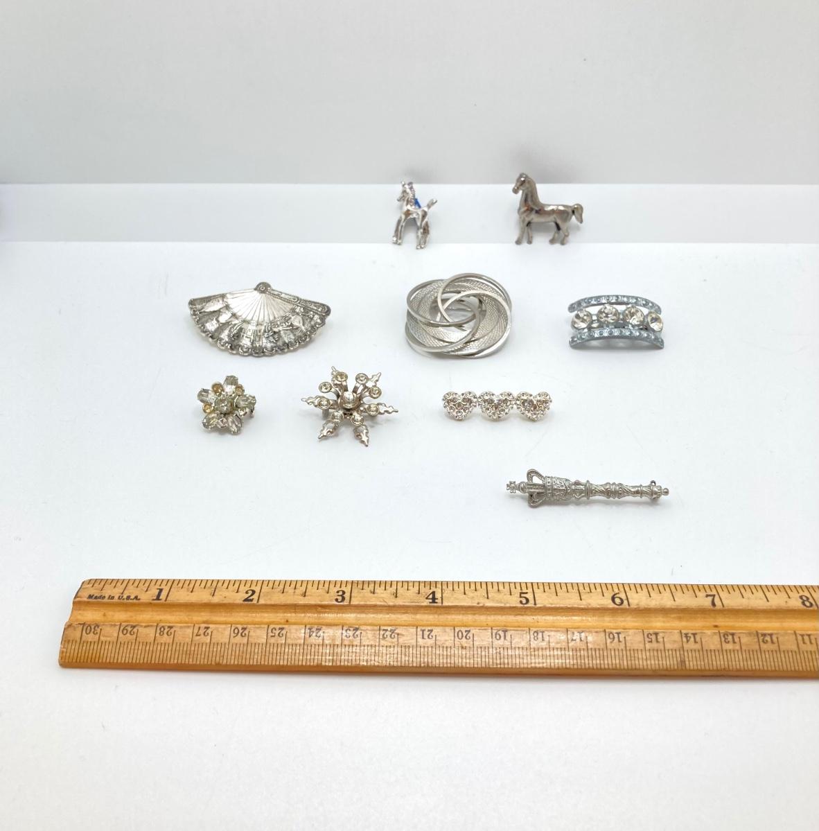 LOT 80: Vintage Brooch / Pin Collection - Silver Tone, Coro, Rhinestone and More
