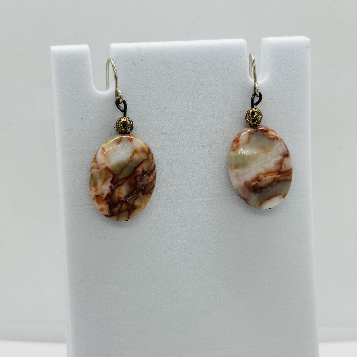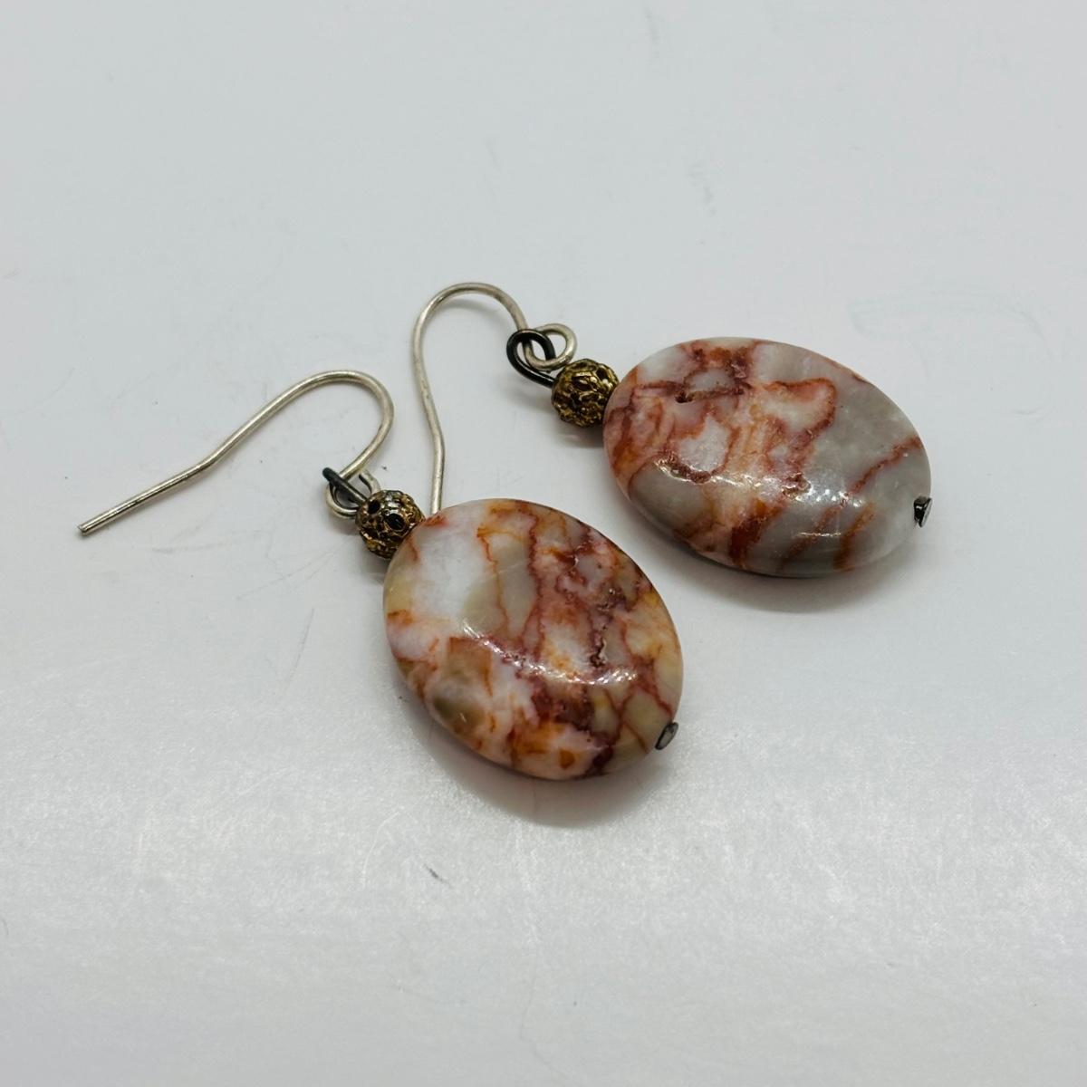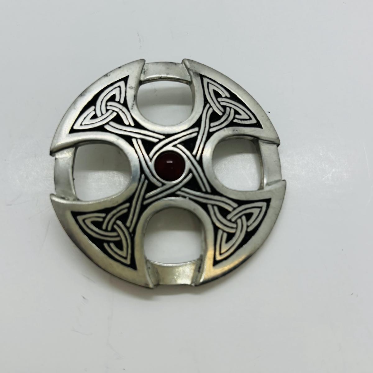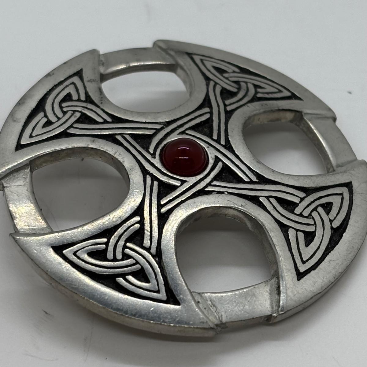 LOT 83: Camelia & Silver Bead Necklace 16" w/925 Clasp, SI Justin Celtic Brooch & Pierced Earrings