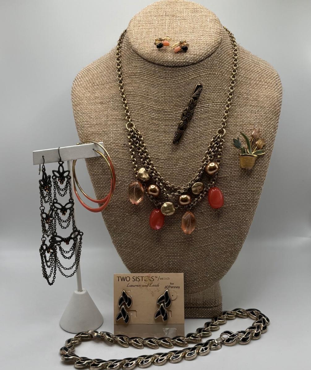LOT 93: Fashion Jewelry Collection: Two Sisters, Jones New York, Brooches, Earrings