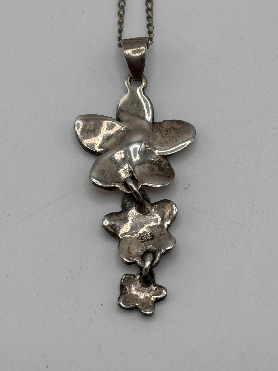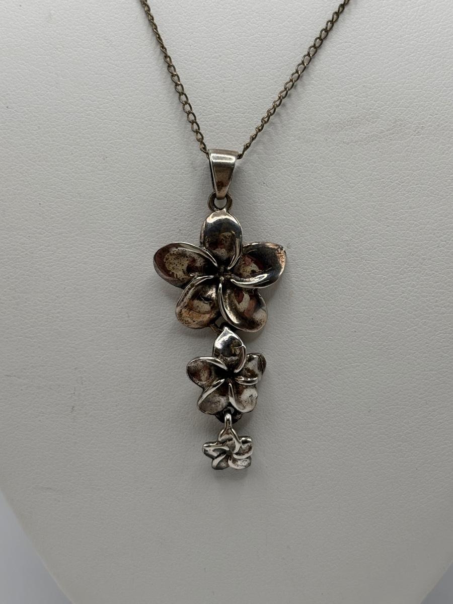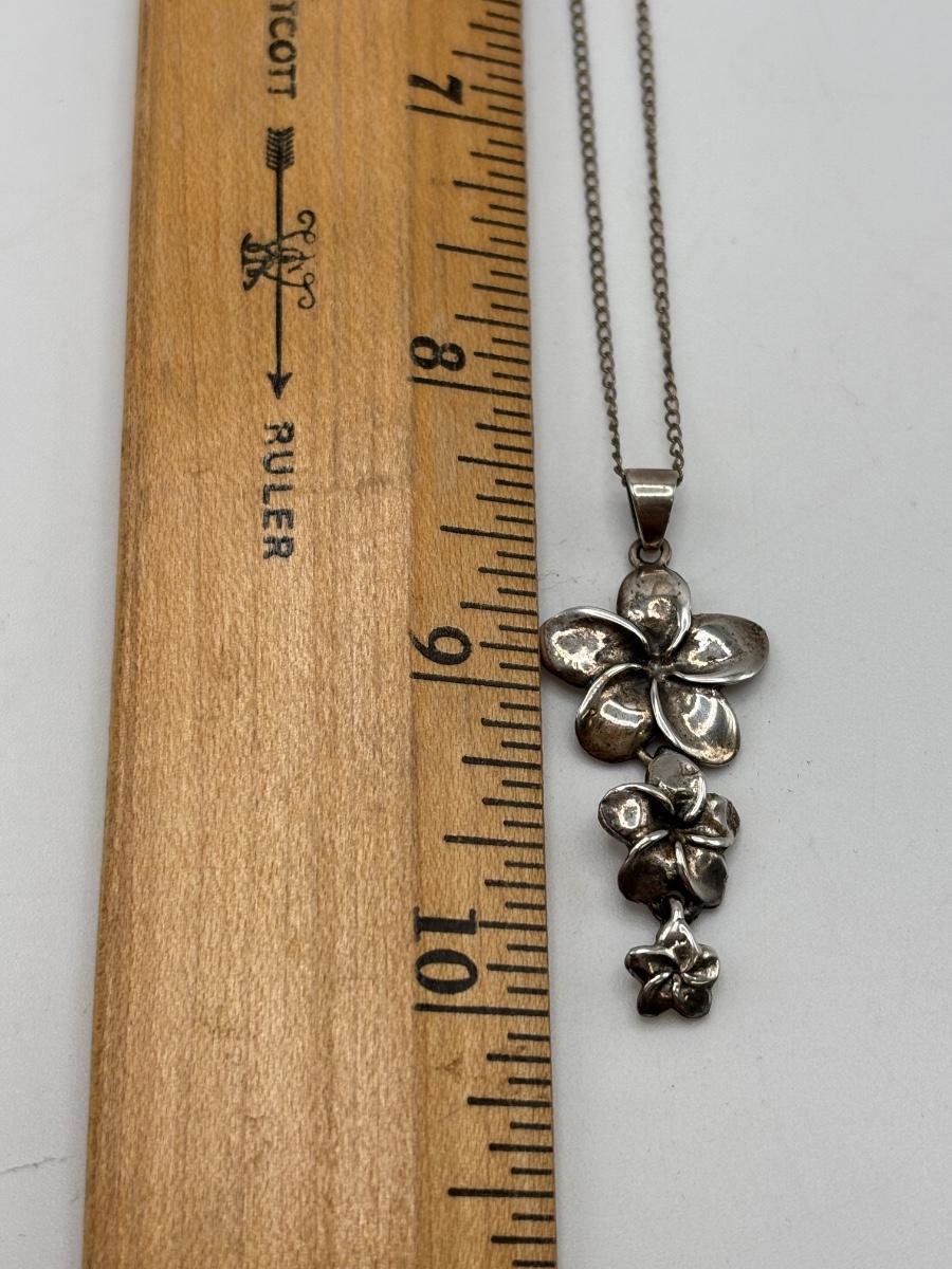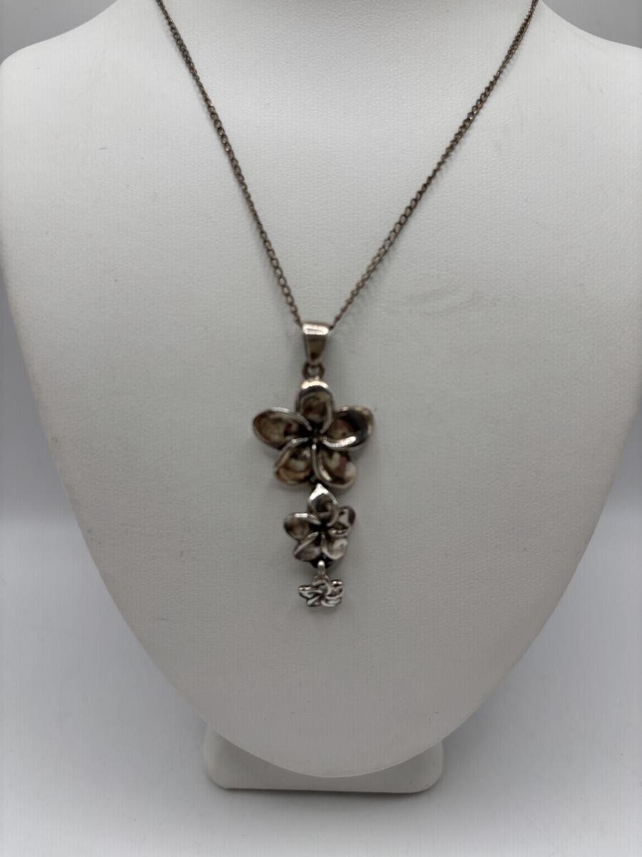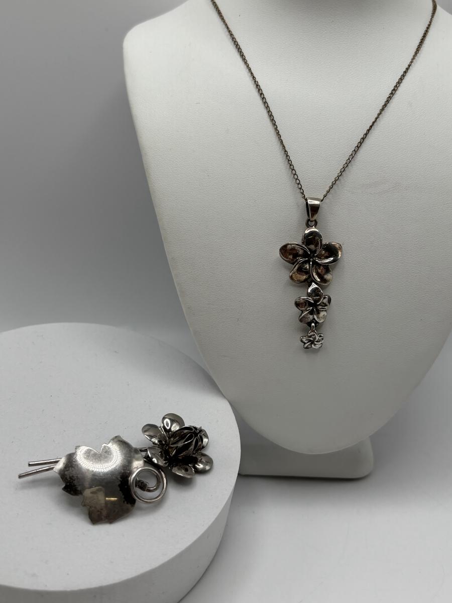 LOT 114: Sterling Silver (925) Plumeria Flower Necklace & Floral Brooch
