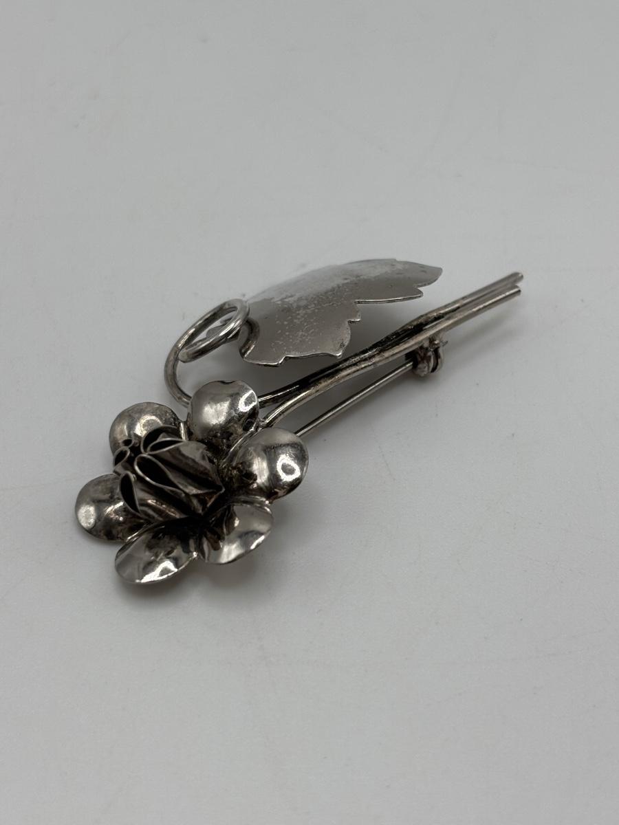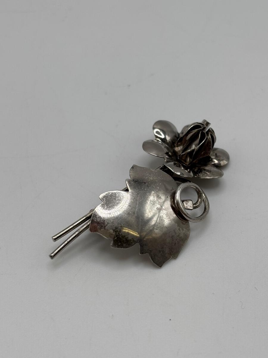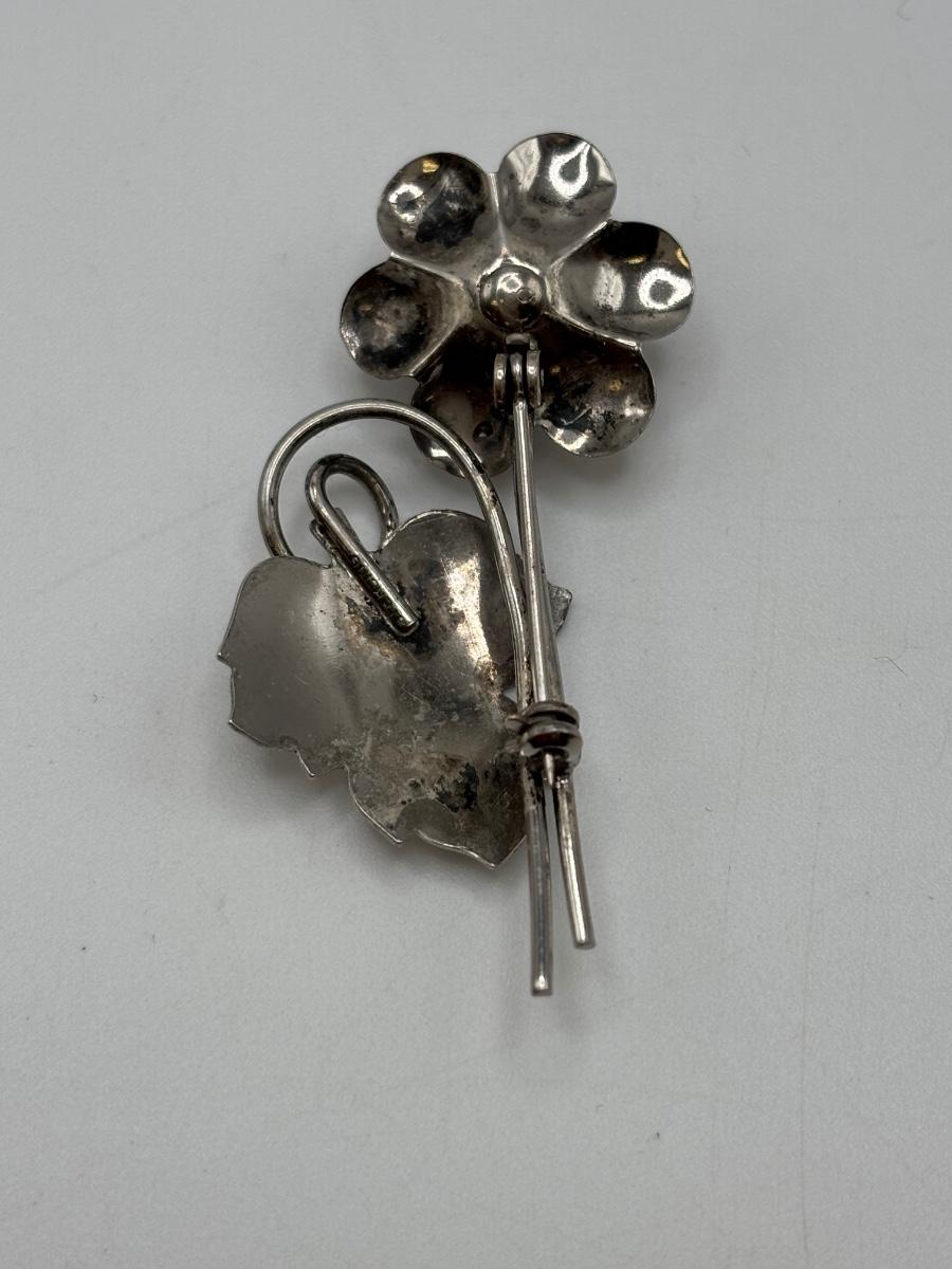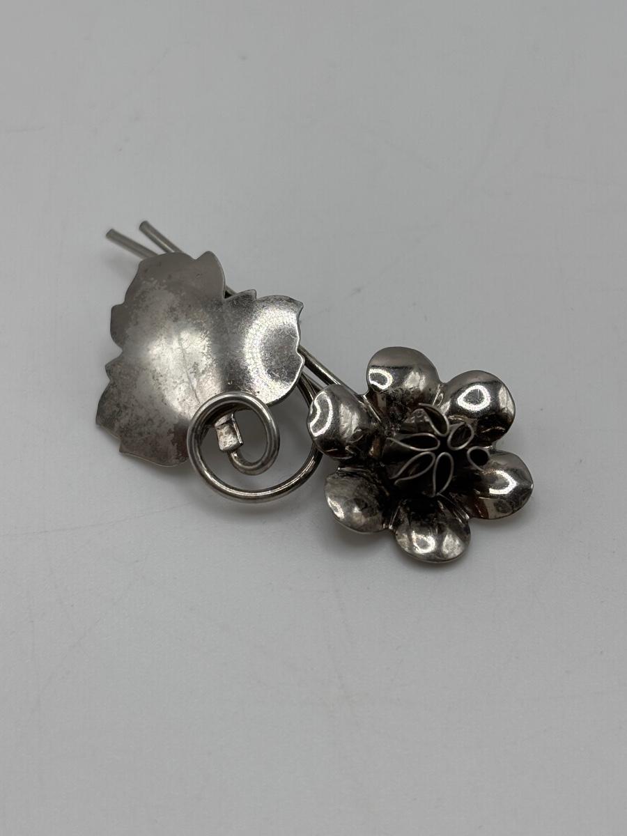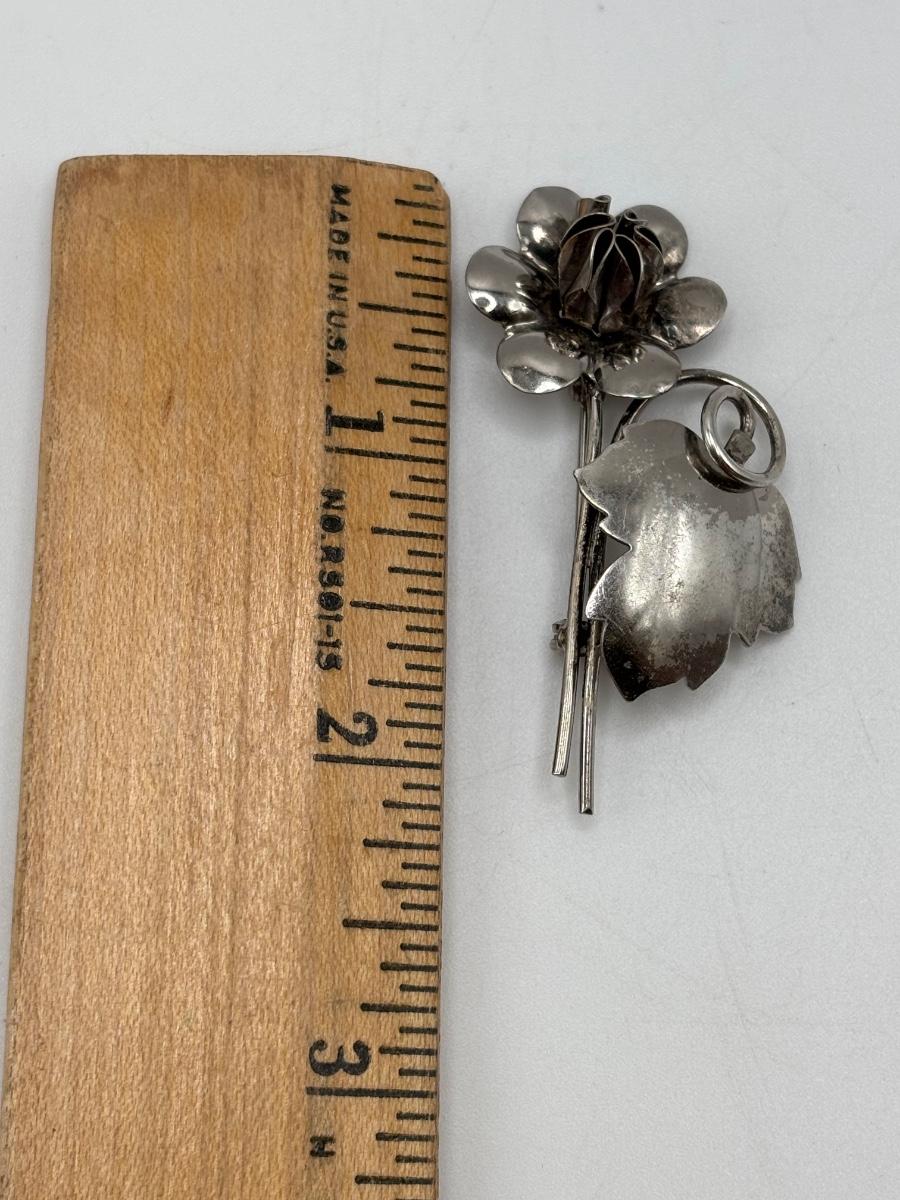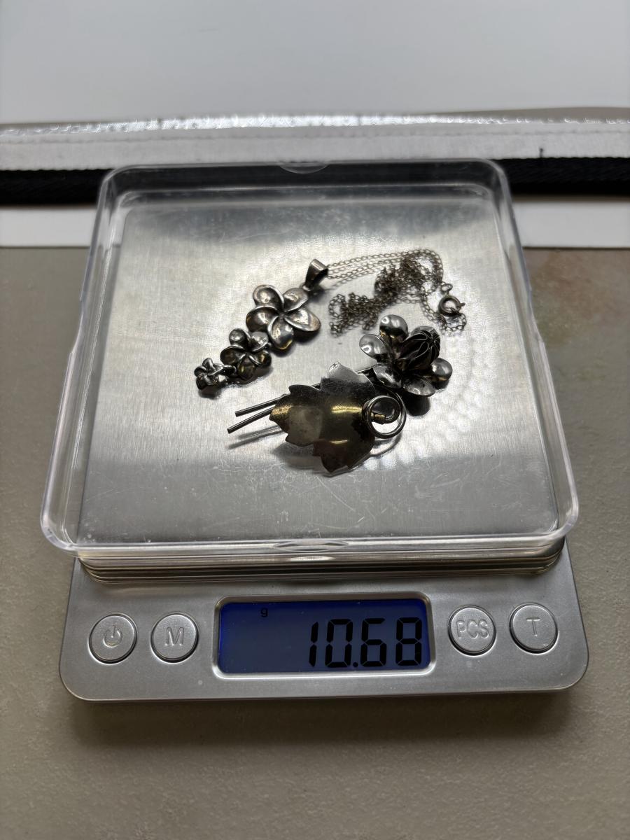 LOT 114: Sterling Silver (925) Plumeria Flower Necklace & Floral Brooch