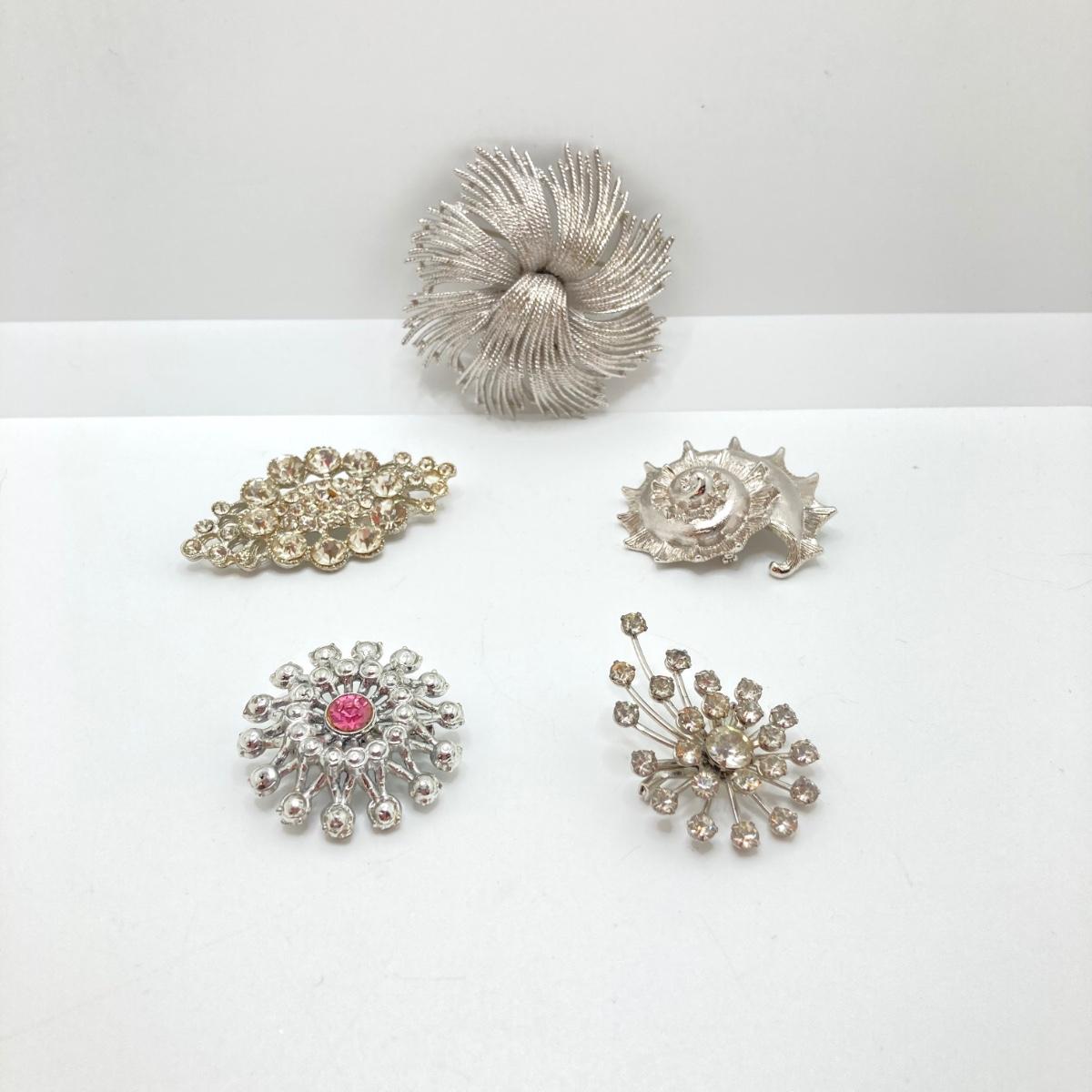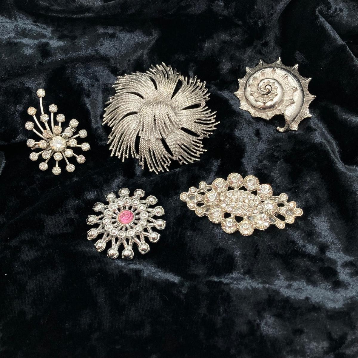 LOT 138: Eye Catching Silver Tone Brooch / Pin Collection - Monet and Rhinestone