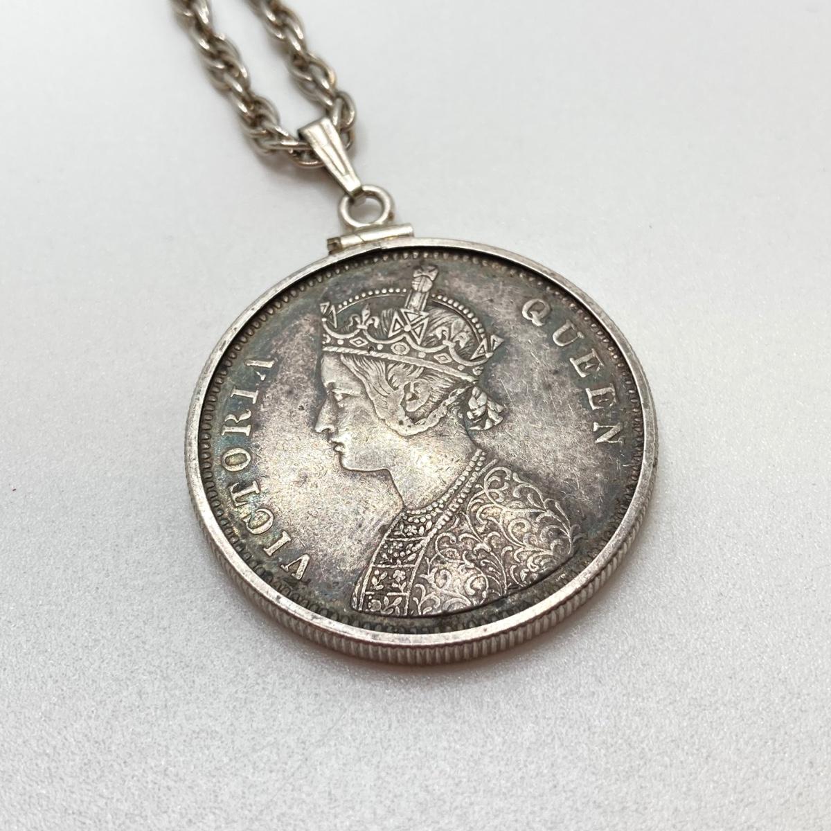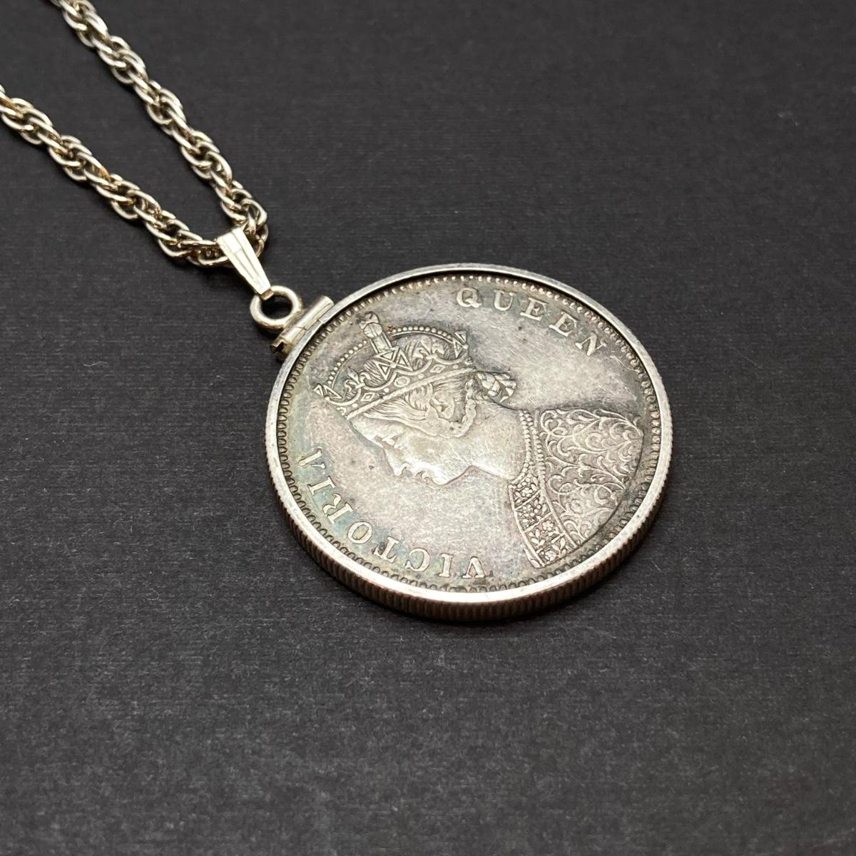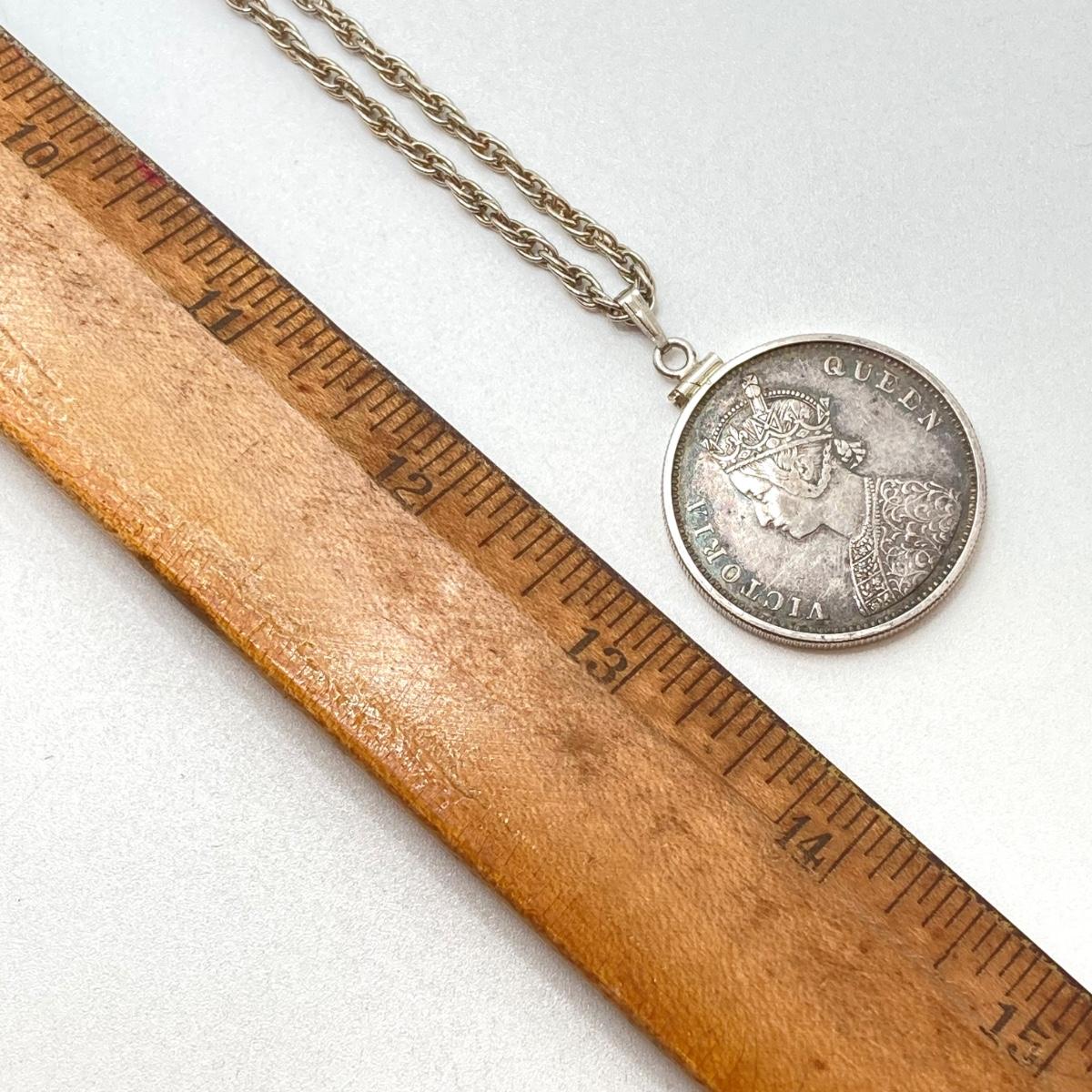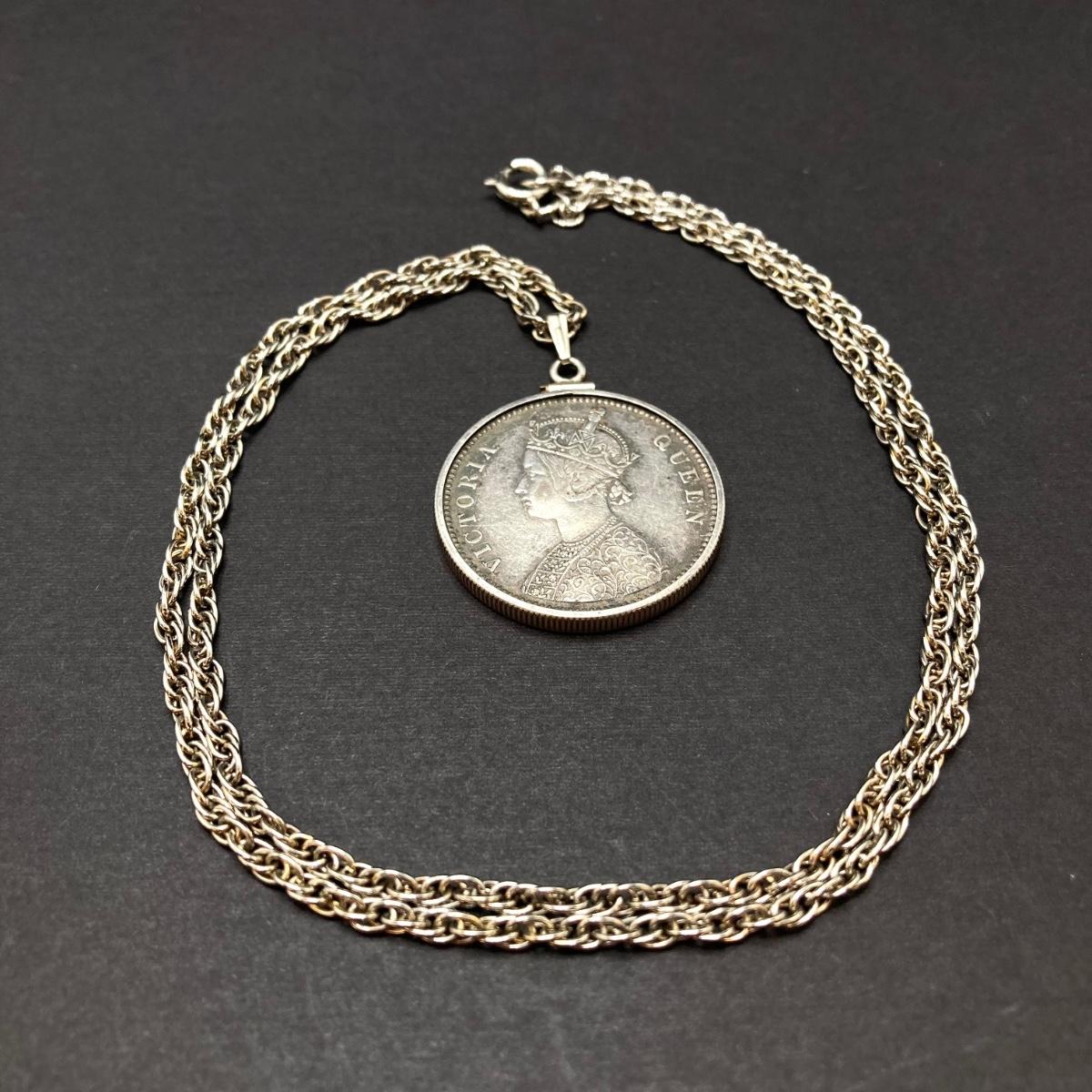 LOT 141: Vintage Pendant Necklace with British India 1862 One Rupee Silver Coin Featuring Queen Victoria