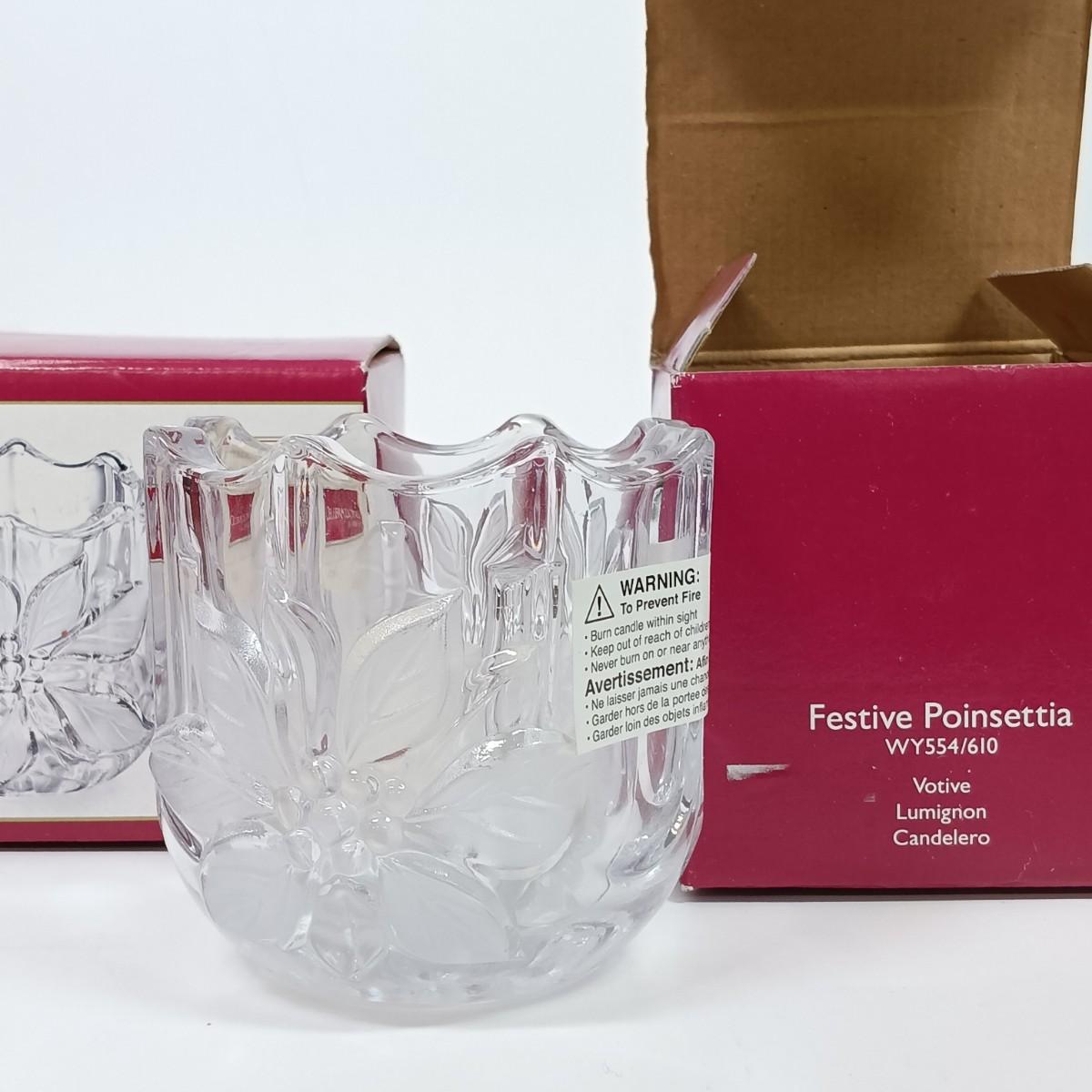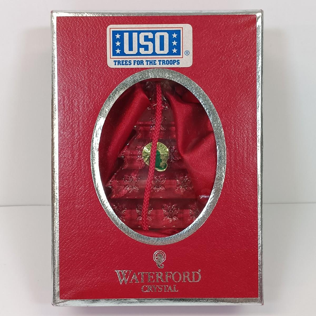 LOT 43: Waterford Happy Anniversary Stem Vase and USO Tree Ornament with Gorham Crystal Ornaments & Mikasa Tea Light Holders