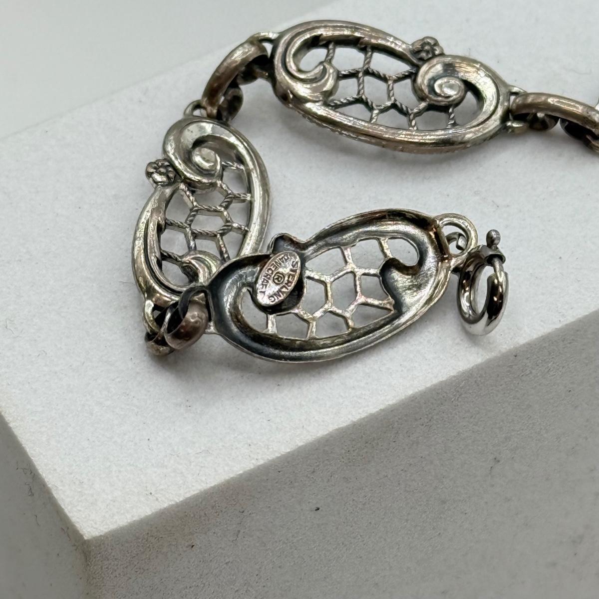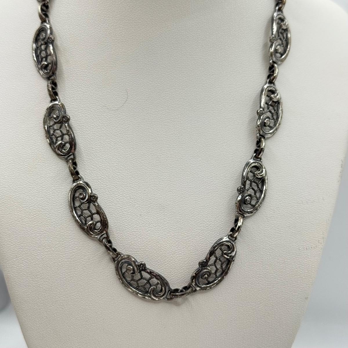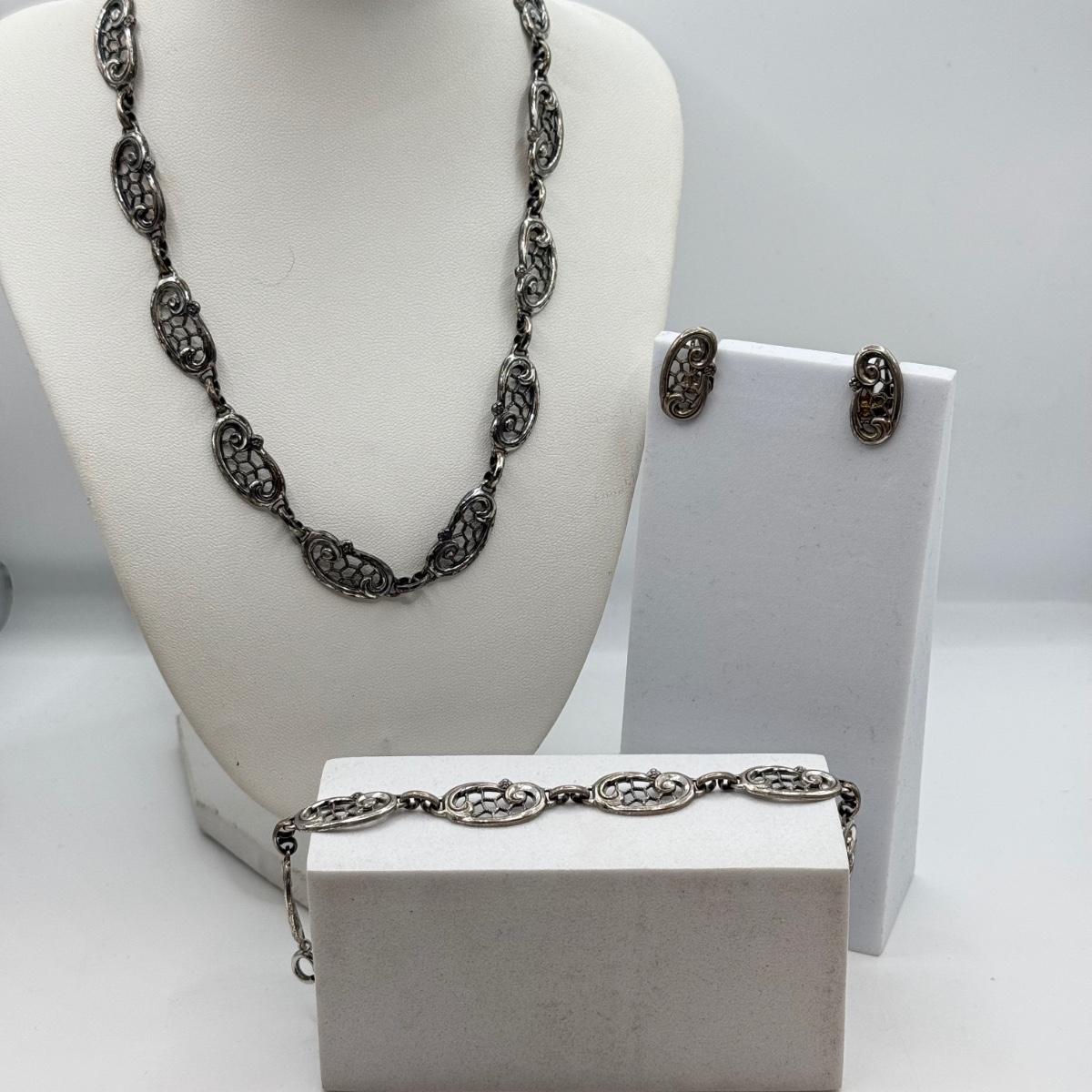 LOT 113: Danecraft Sterling Silver Set: 15" Necklace, 7" Bracelet & Screwback Earrings (28.8g)
