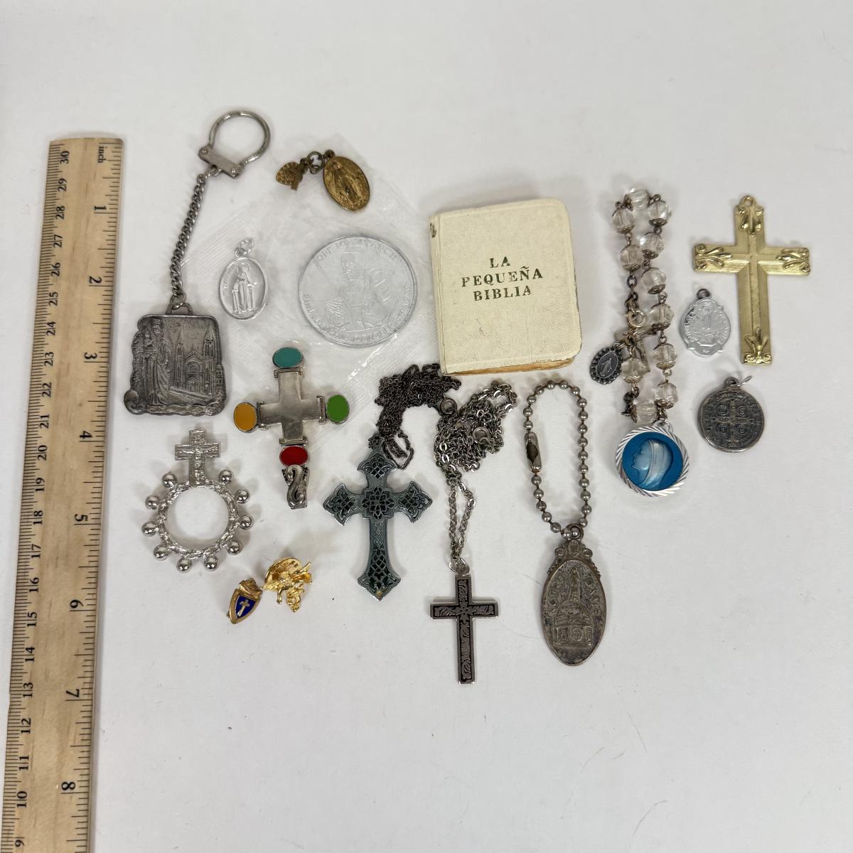 LOT 129: Religious Jewelry, Crosses, Pope Coin & More