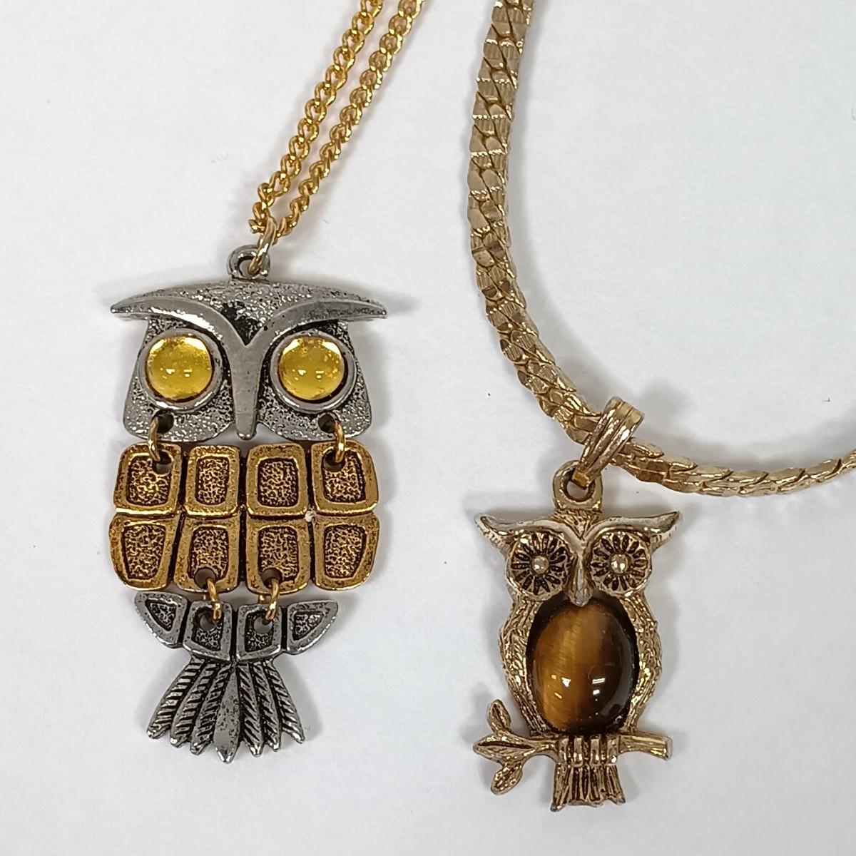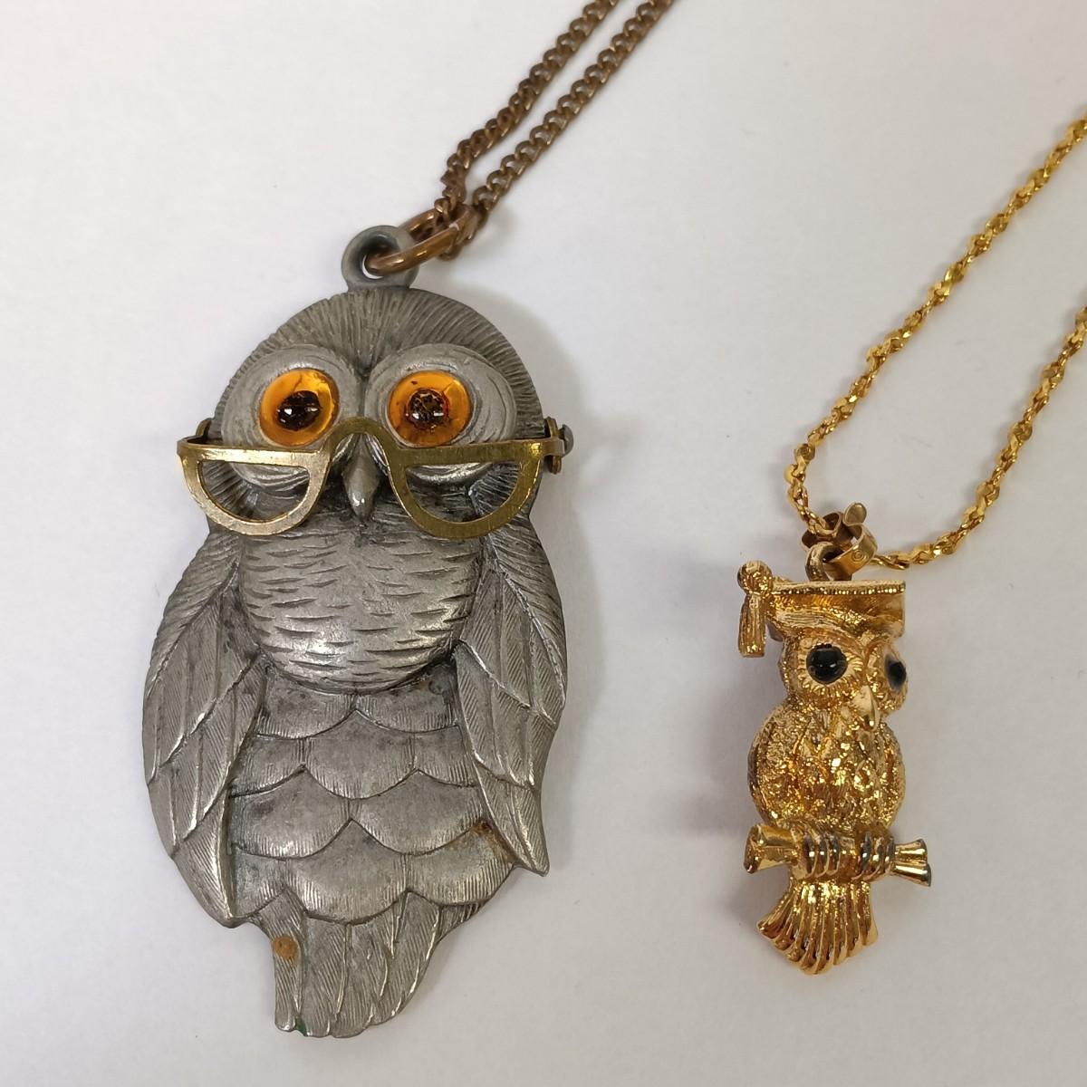 LOT 142: Vintage Owl Pendant Necklaces & Earrings