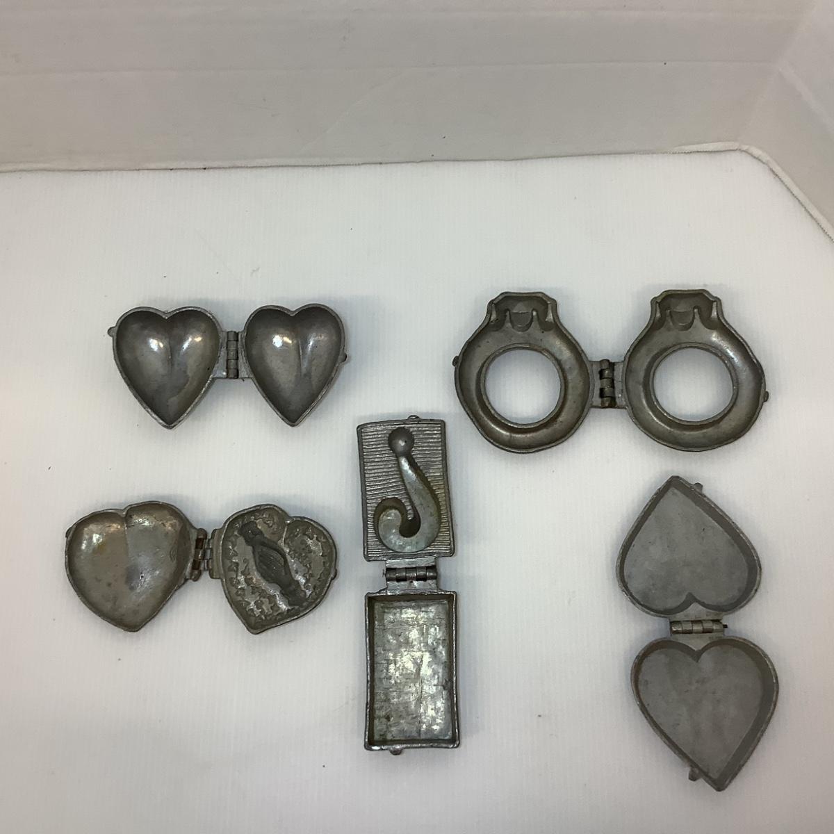 Antique Hinged Pewter Eppelsheimer Ice Cream Molds, molds are from Arundel Ice Cream Company in Baltimore, MD, active in the 1940’s & 1950’s