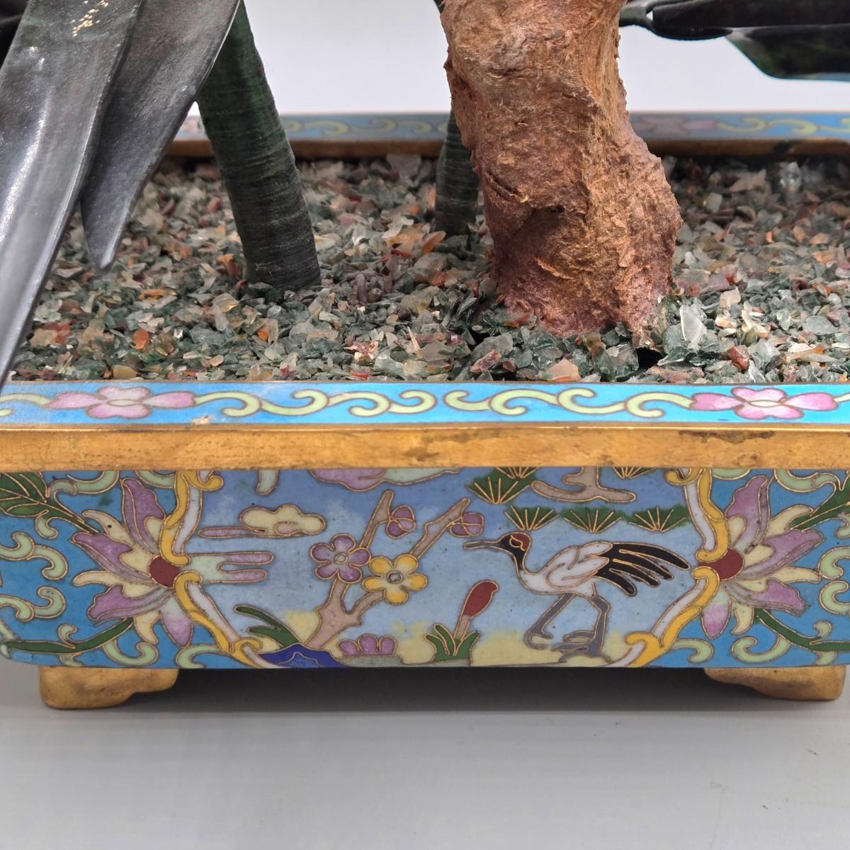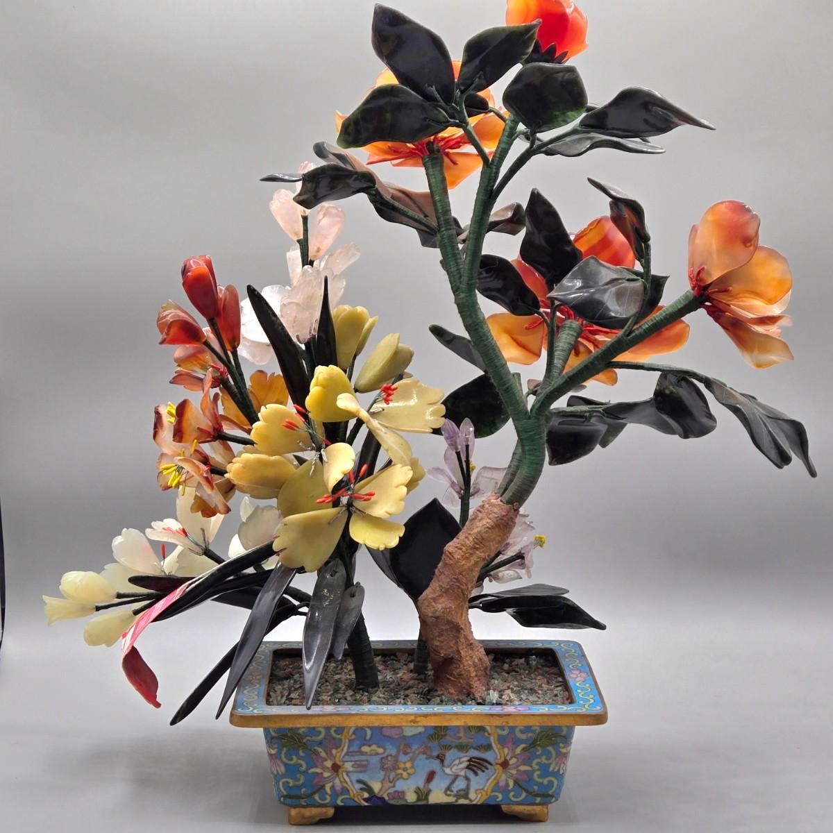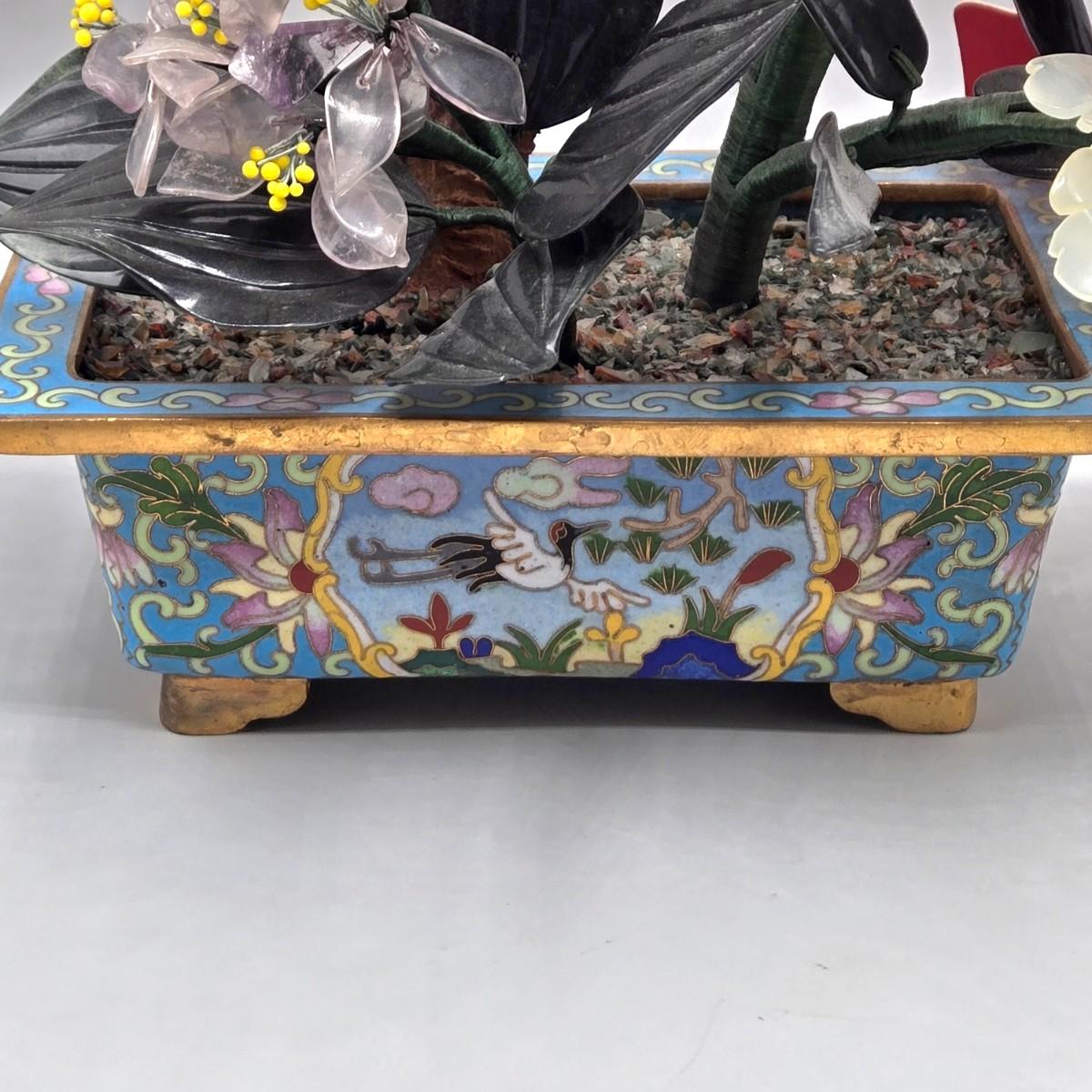 LOT 3L: Antique Chinese Jade Bonsai Tree in Cloisonne Flower Pot