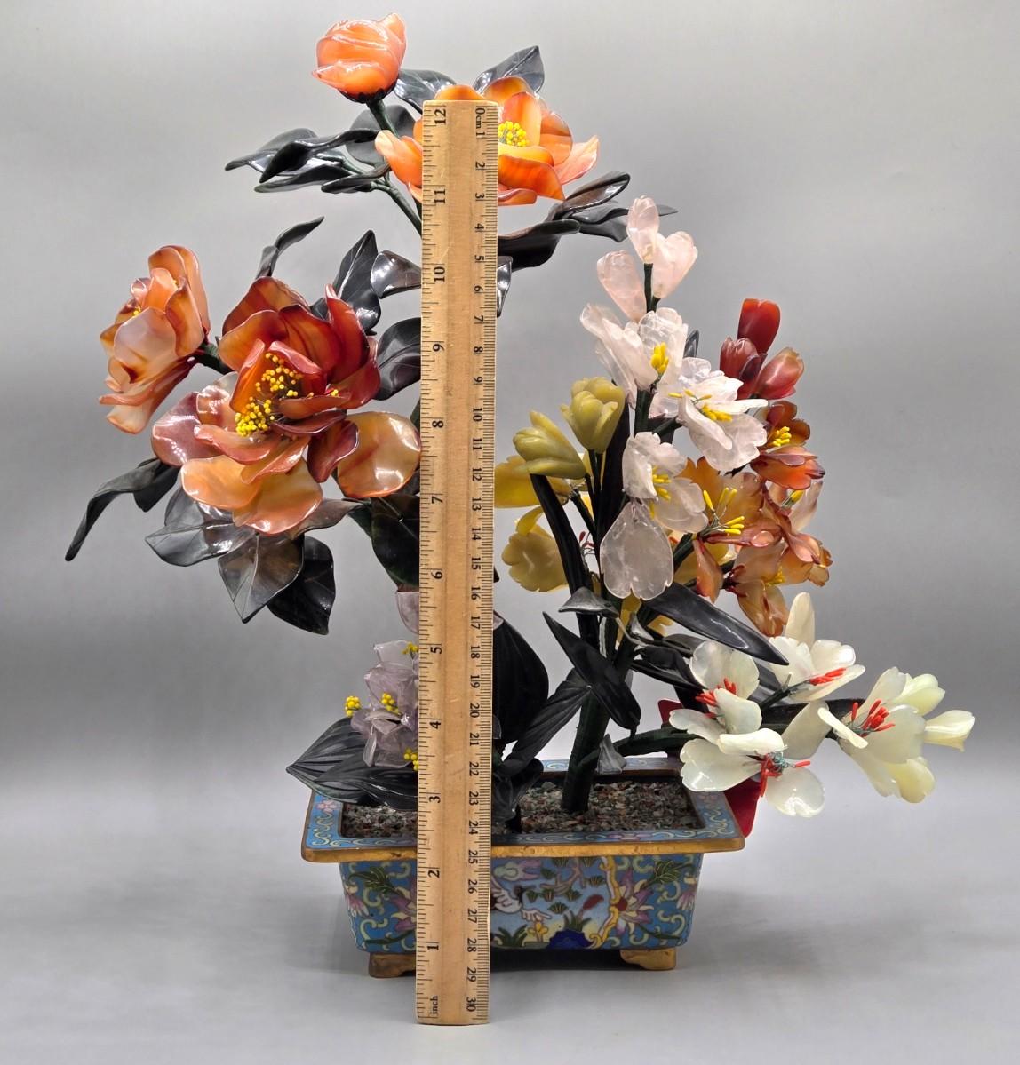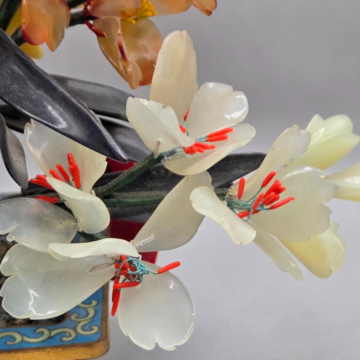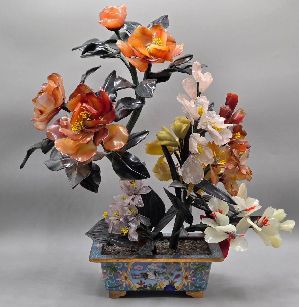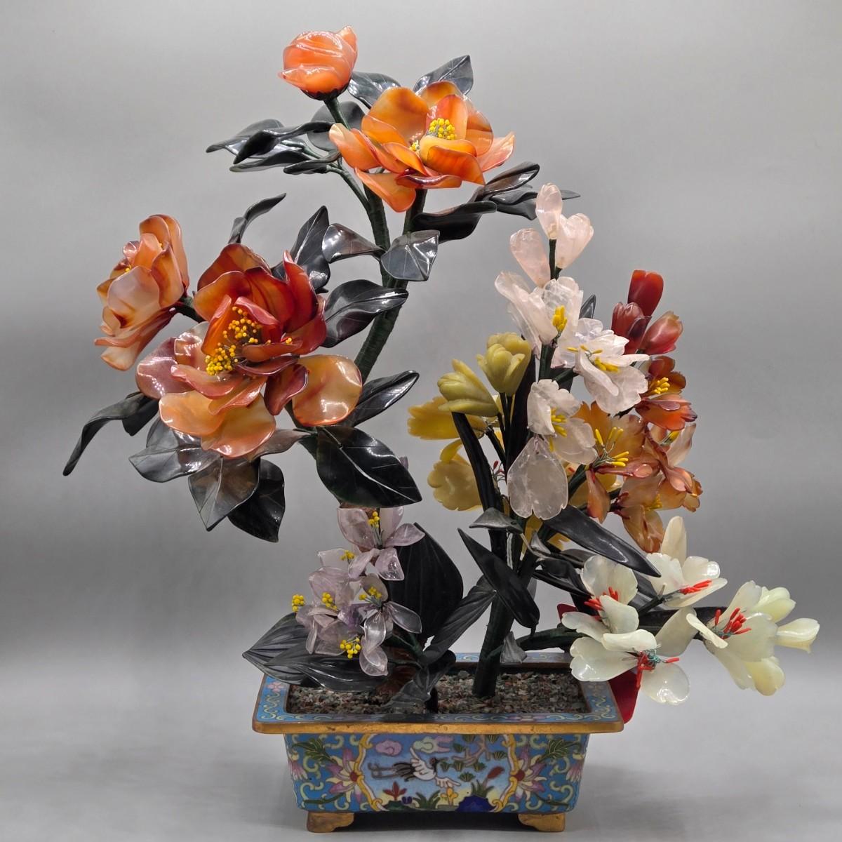 LOT 3L: Antique Chinese Jade Bonsai Tree in Cloisonne Flower Pot