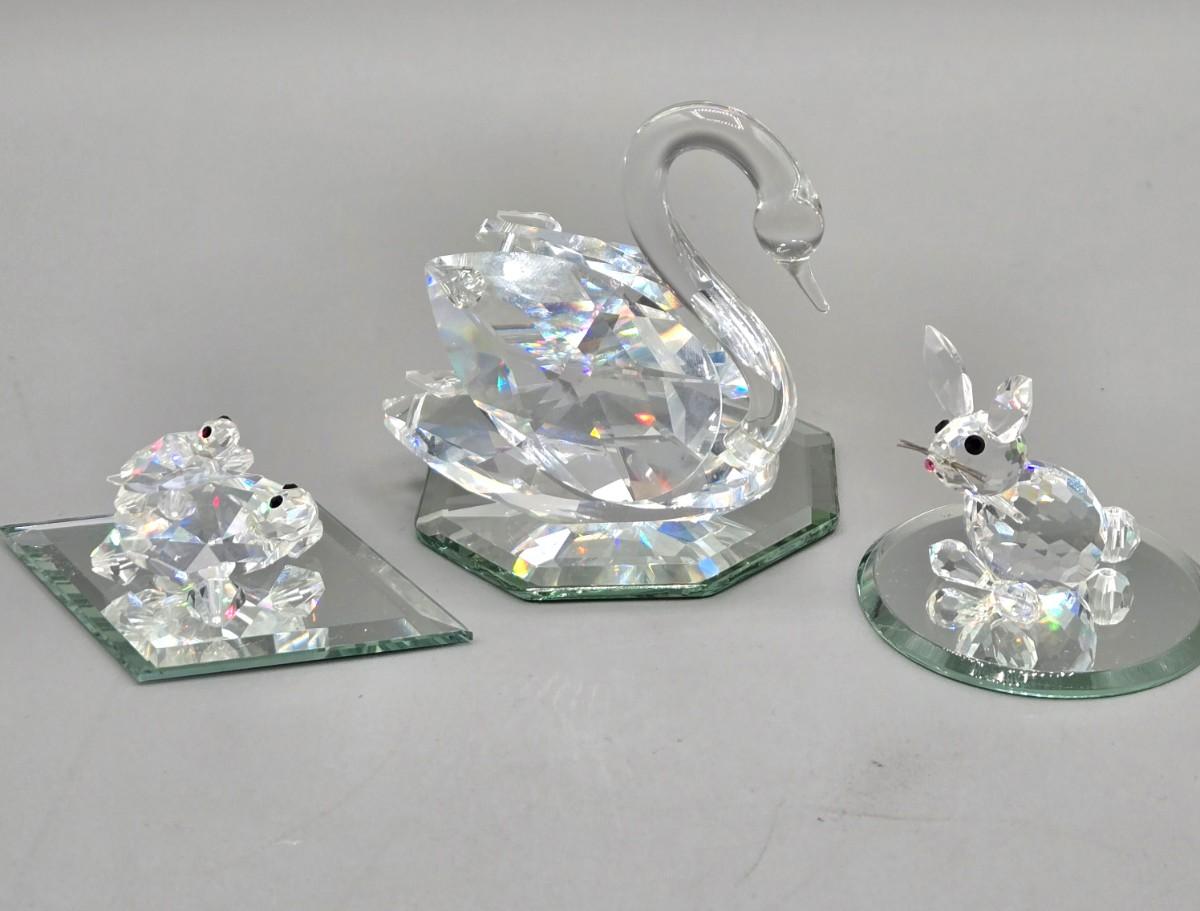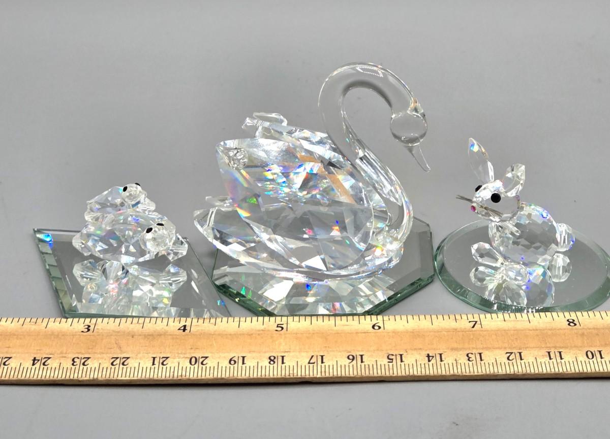 LOT 9L: Miniature Crystal Swan, Bunny, and Turtle Figures
