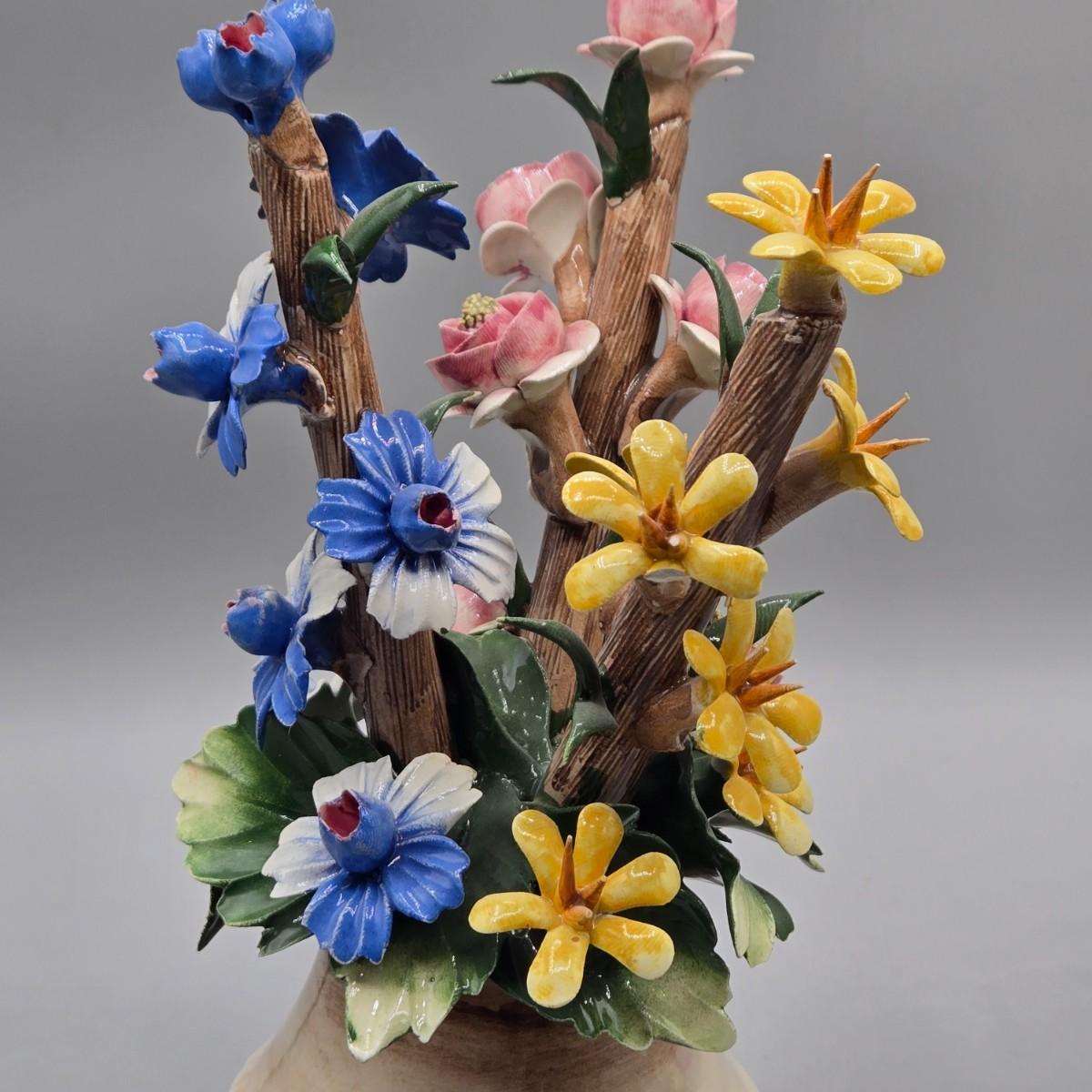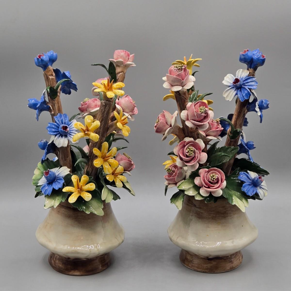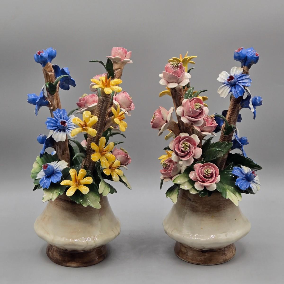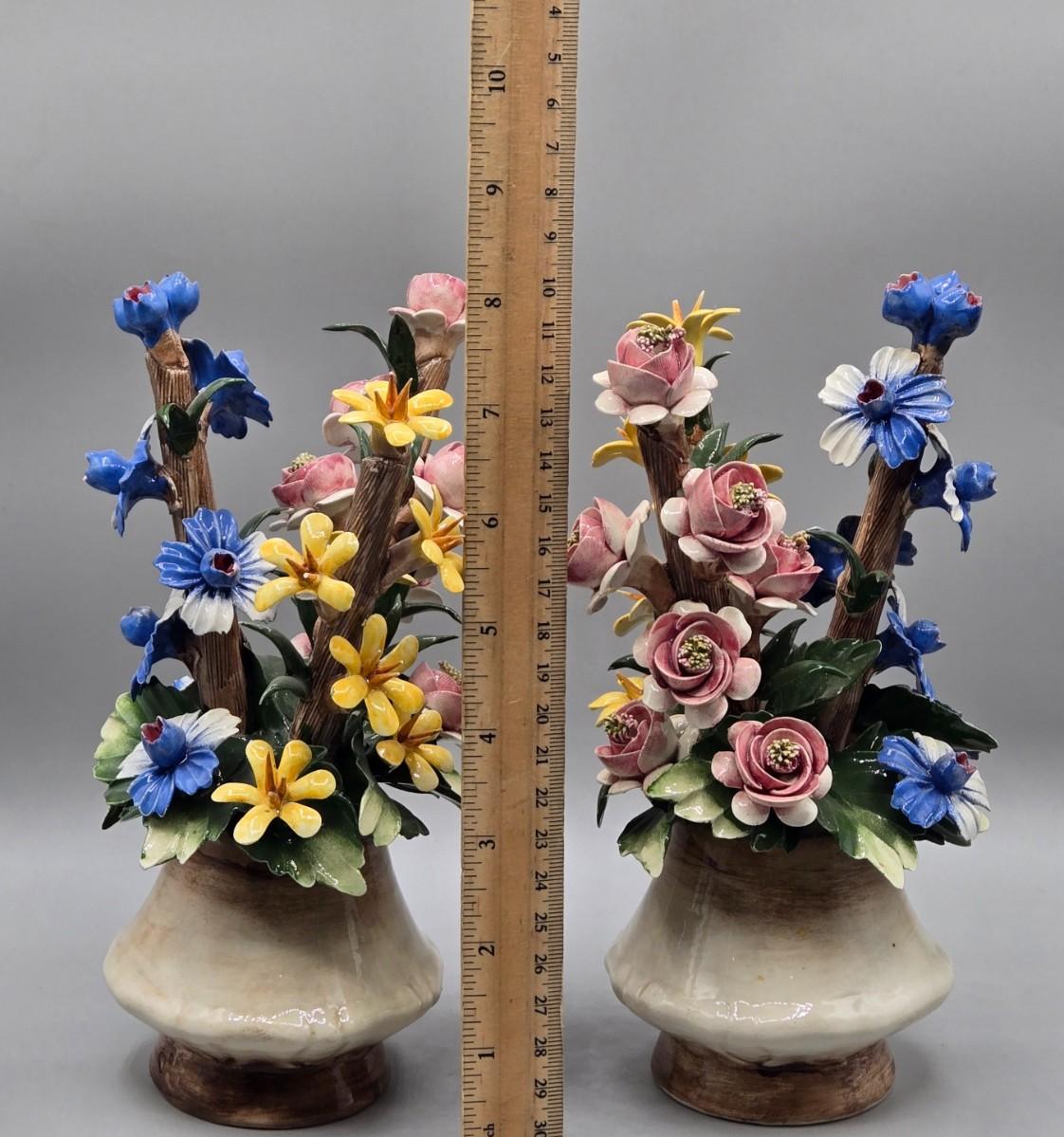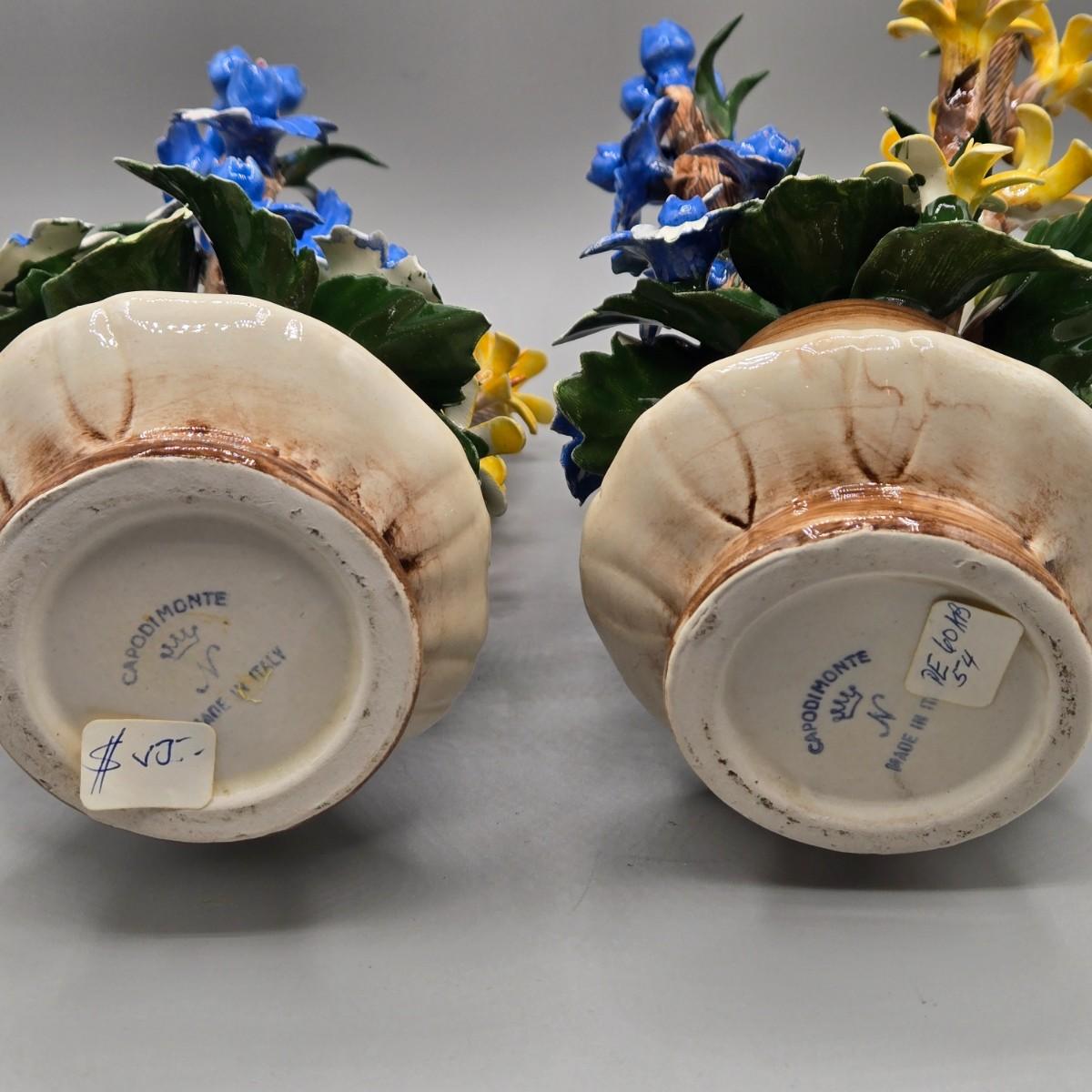 LOT 10L: Pair of Vintage Italian Capodimonte Porcelain Floral Arrangements