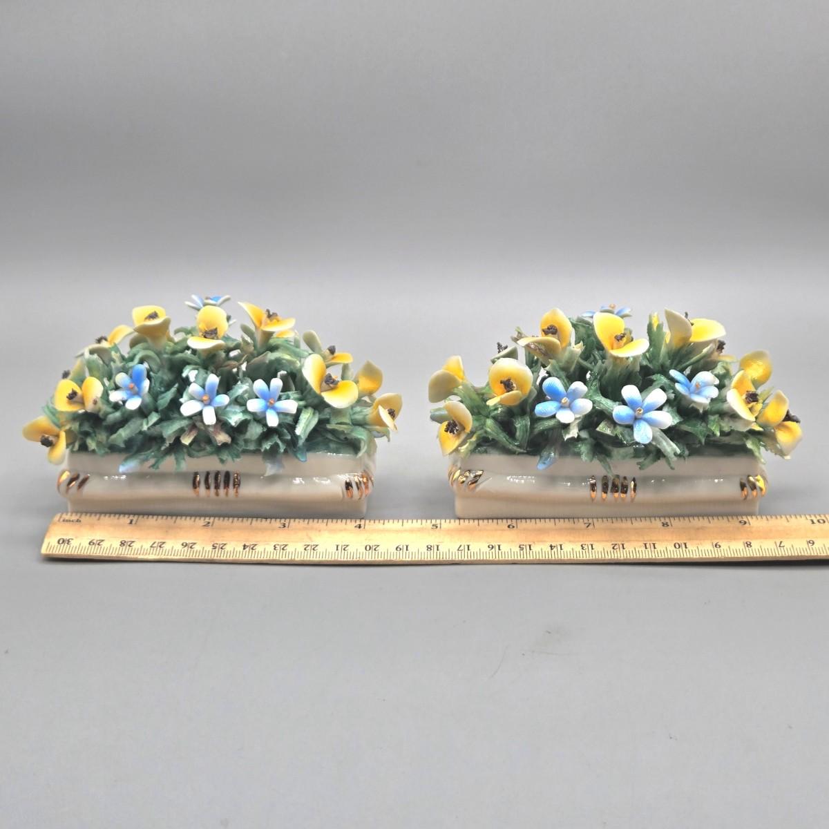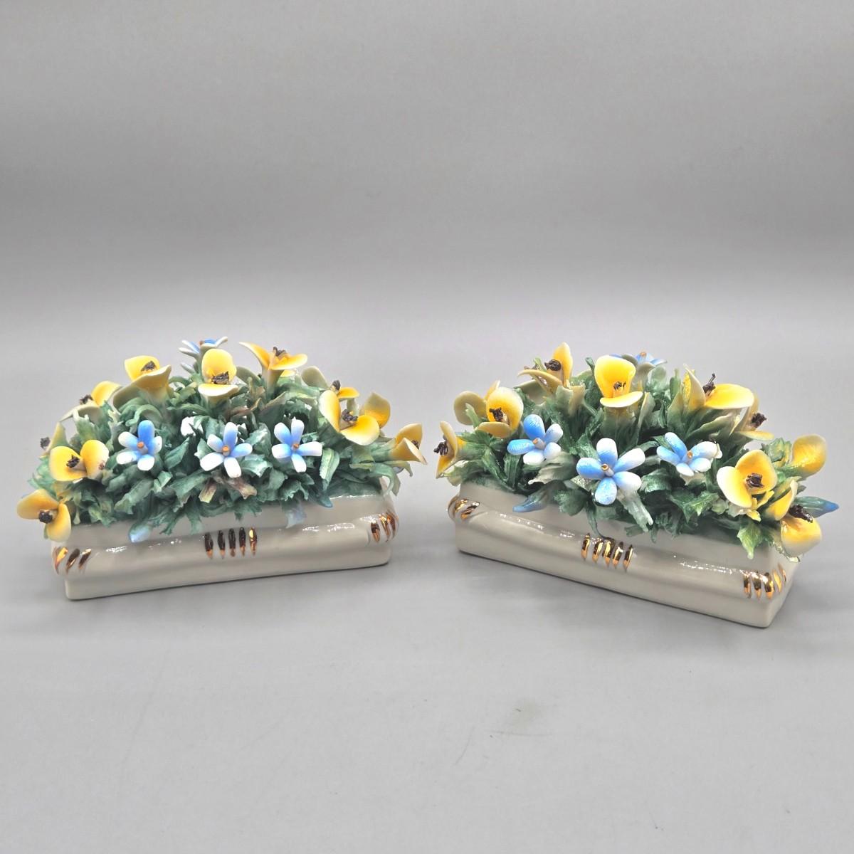LOT 19L: Pair of Vintage Miniature Italian Capodimonte Floral Arrangements