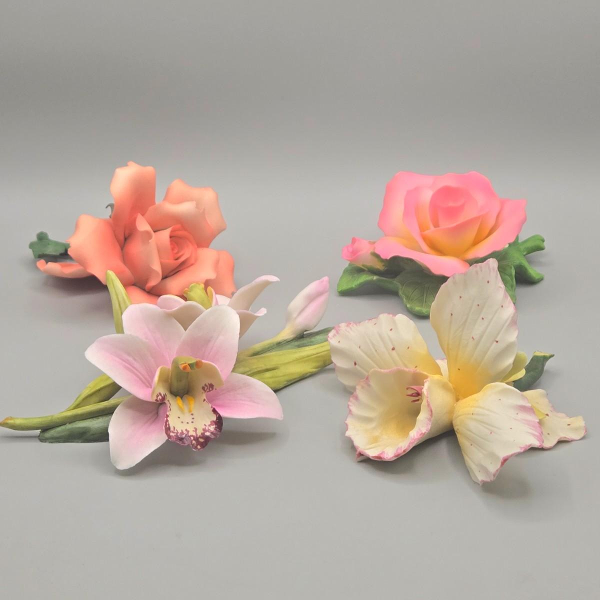 LOT 20L: Three Capodimonte Flowers and More