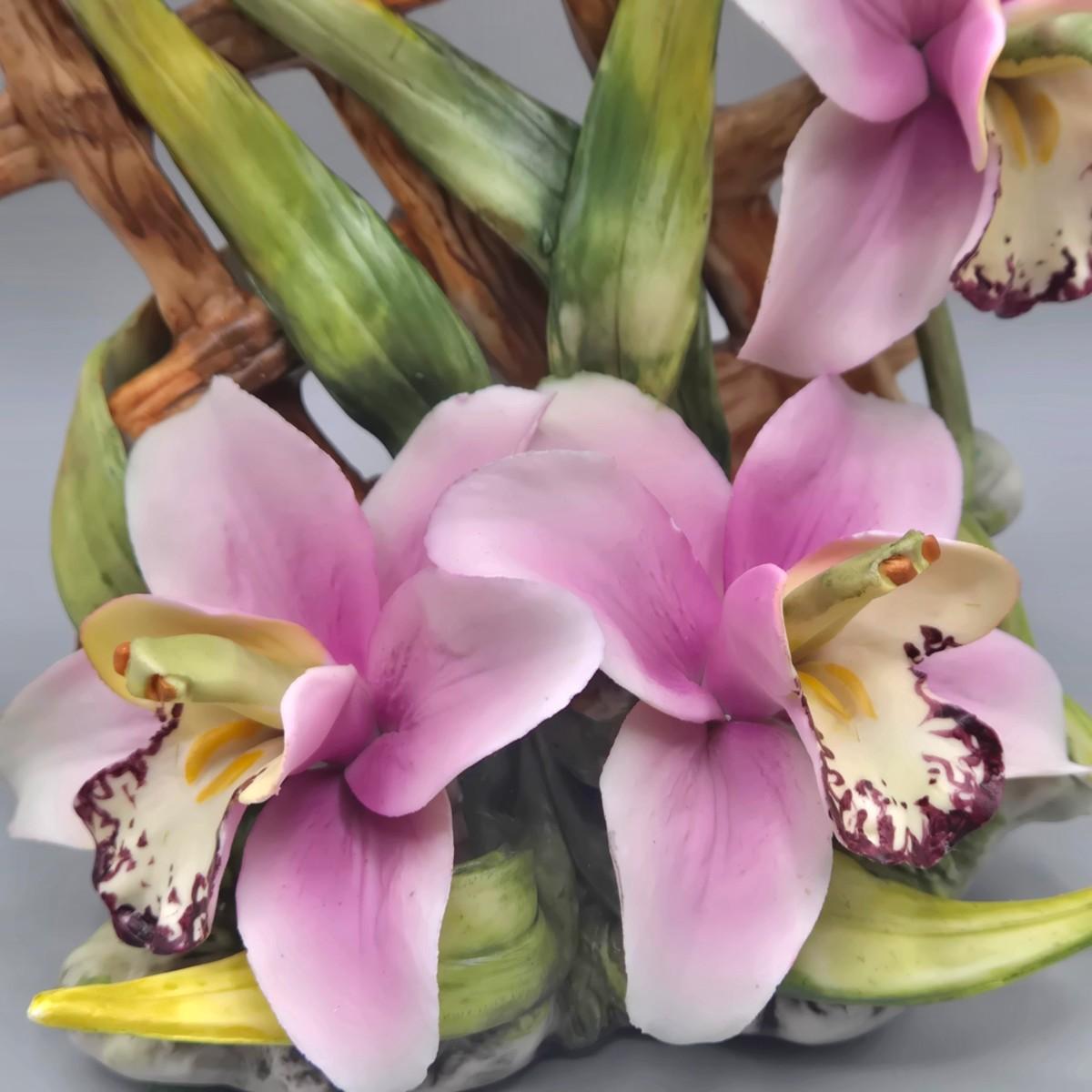 LOT 21L: Vintage Capodimonte Porcelain Orchid Figurine Set