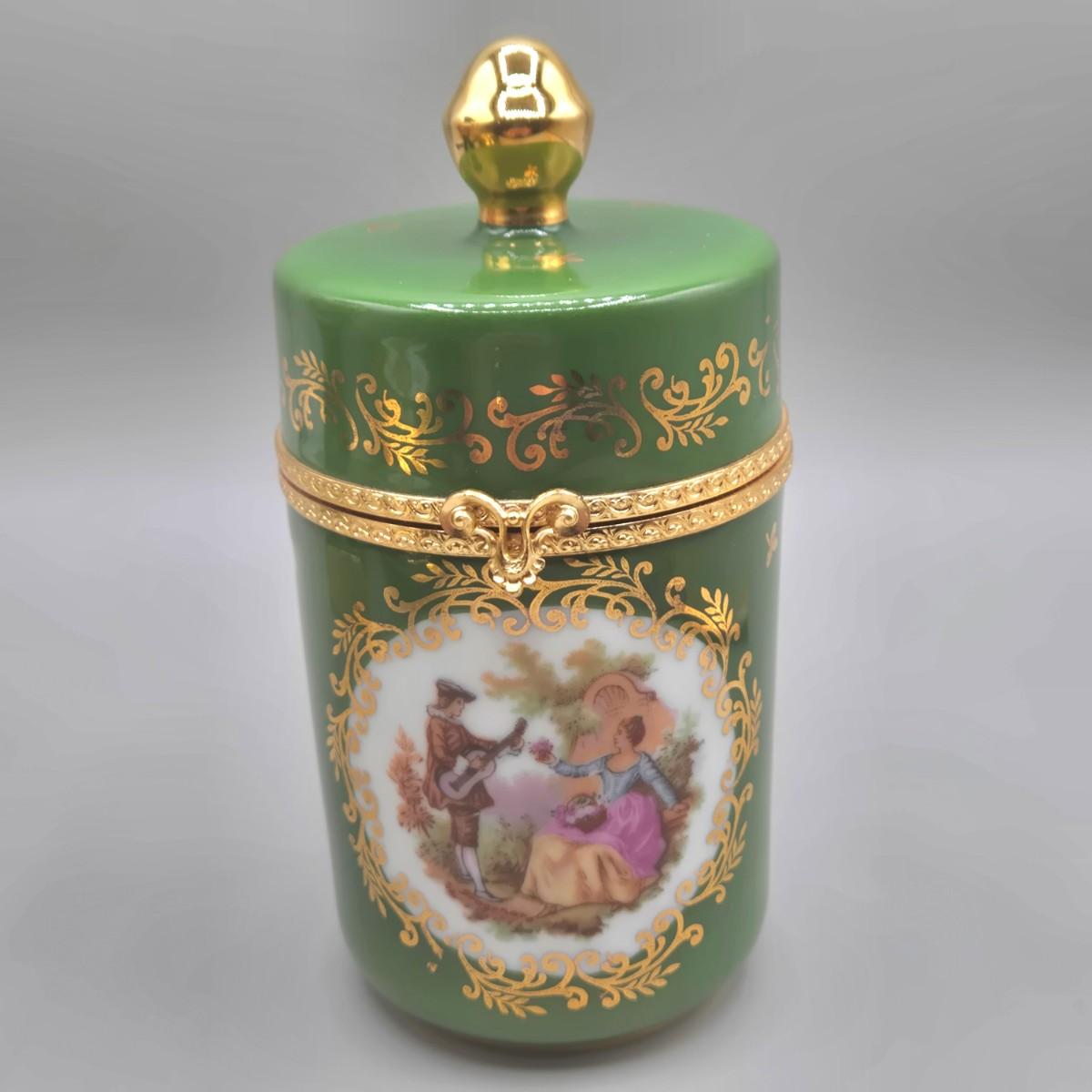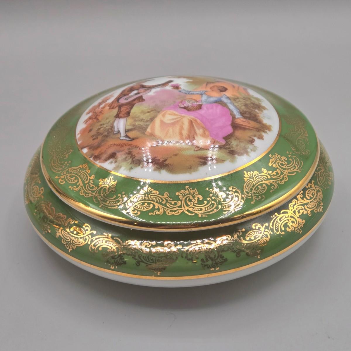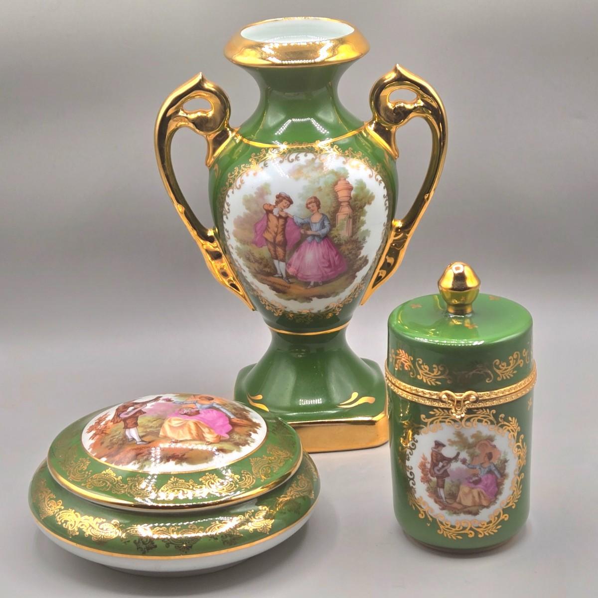 LOT 25L: Collection of Vintage Limoges Porcelain Pieces Including Double Hanldled Vase, Round Bowl with Lid, and Lidded Trinket Box