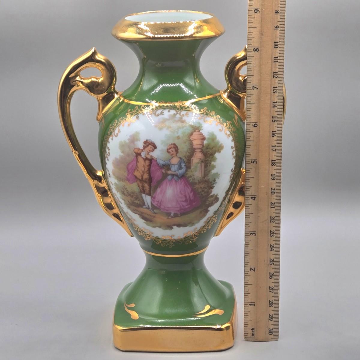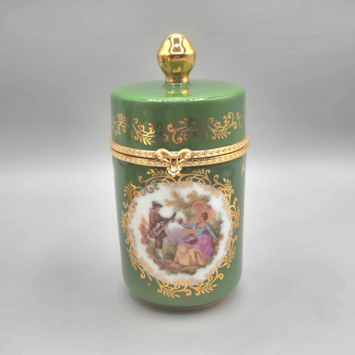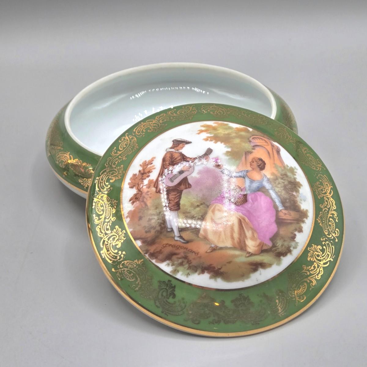 LOT 25L: Collection of Vintage Limoges Porcelain Pieces Including Double Hanldled Vase, Round Bowl with Lid, and Lidded Trinket Box
