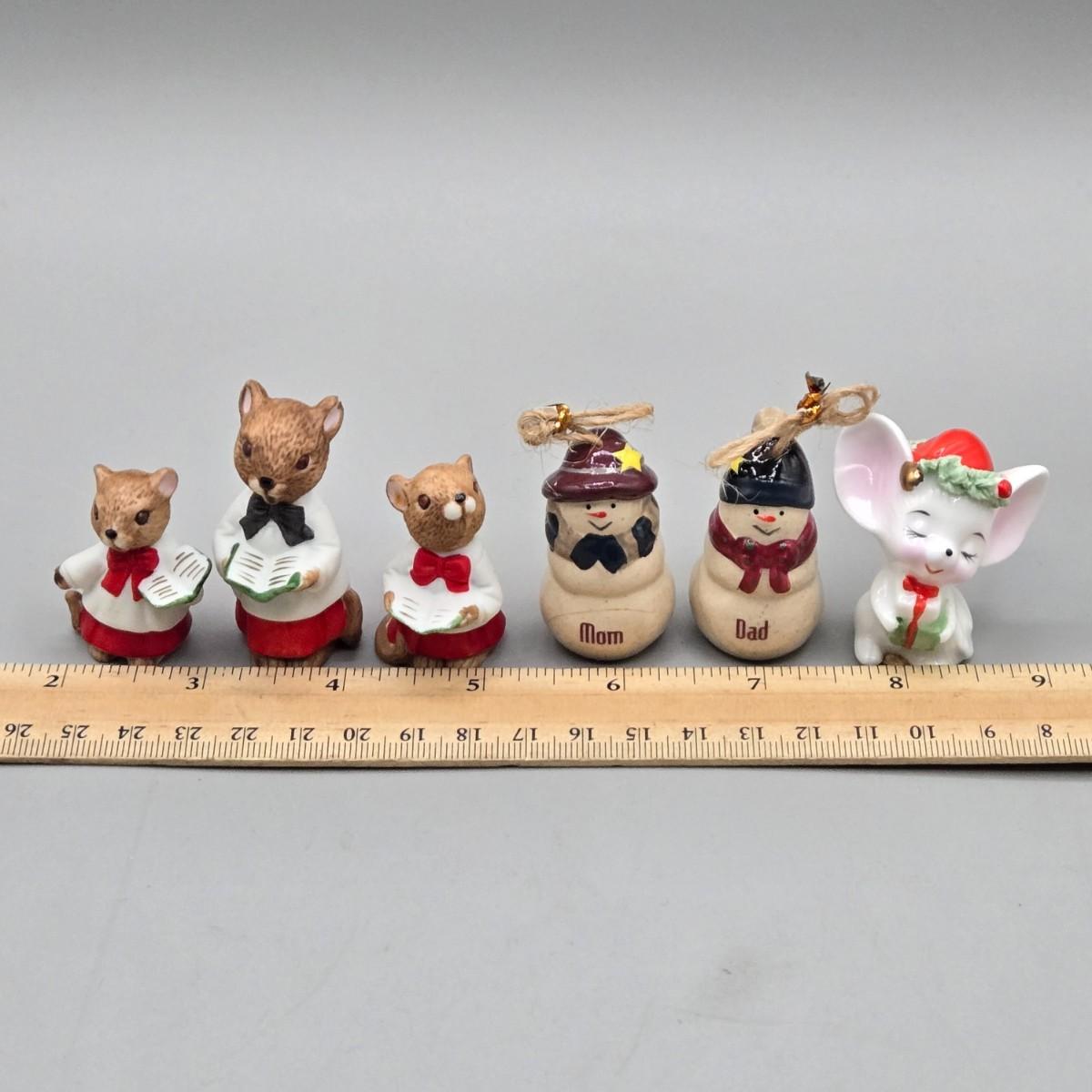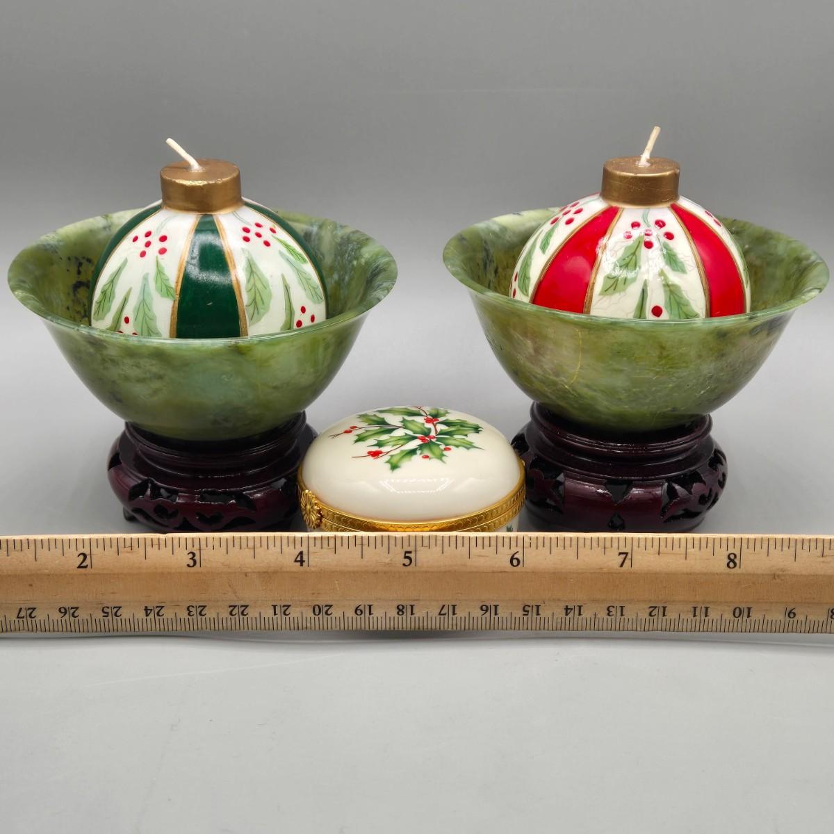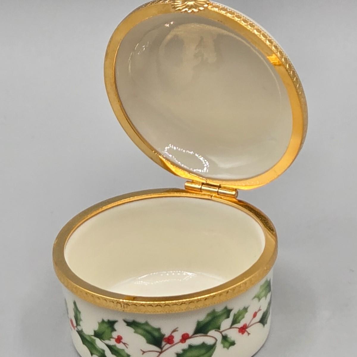 LOT 38L: Lenox Holly Berry Trinket Box, 2008 Danbury Mint Philadelphia Eagles Santa in a Sleigh Ornament, Vintage Napcoware Christmas Mouse Figurine, and More