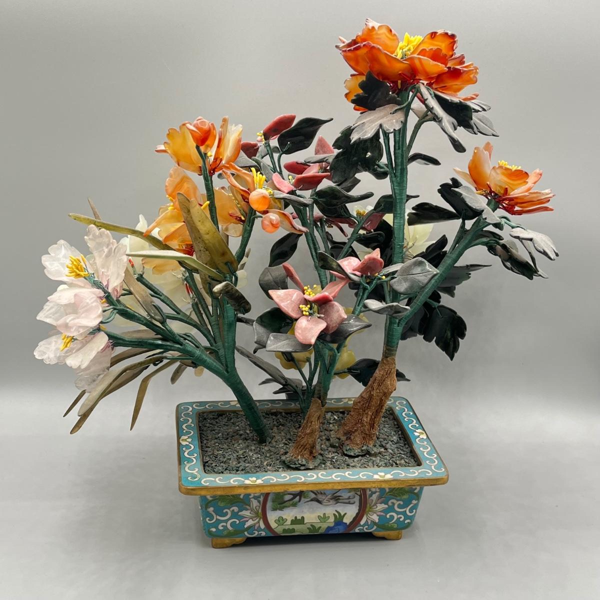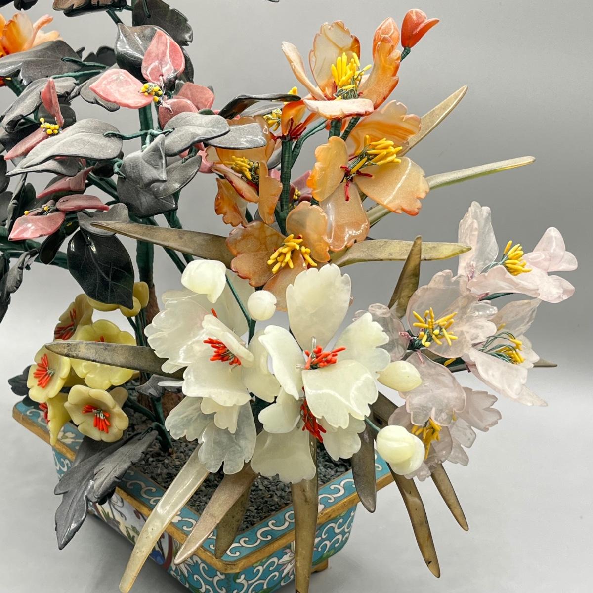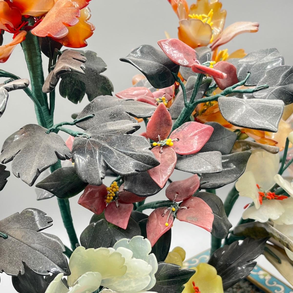 LOT 46L: Vintage Chinese Stone Floral Arrangement in Cloisonne Pot