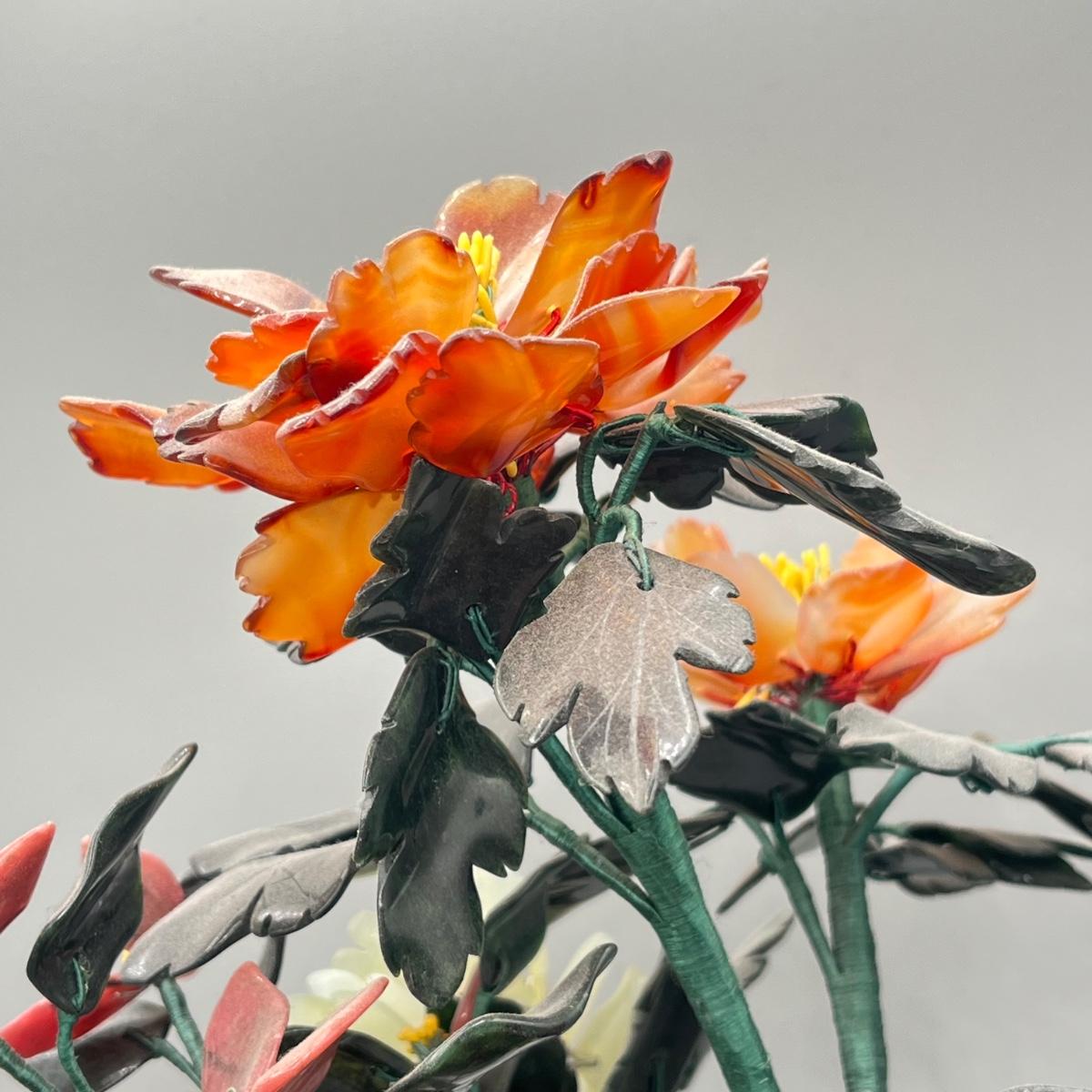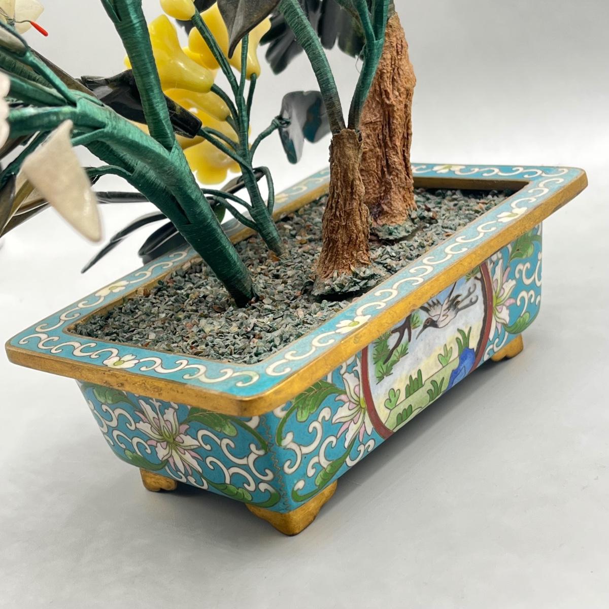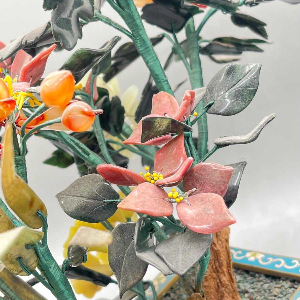 LOT 46L: Vintage Chinese Stone Floral Arrangement in Cloisonne Pot