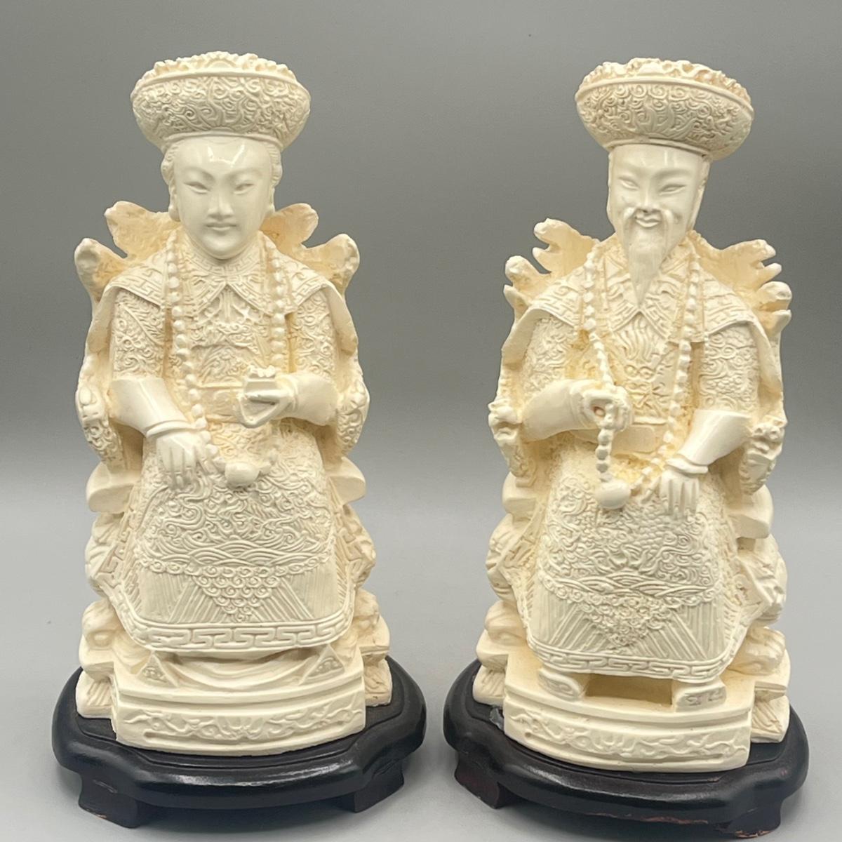 LOT 58L: Vintage Chinese Carved Resin Emperor Couple