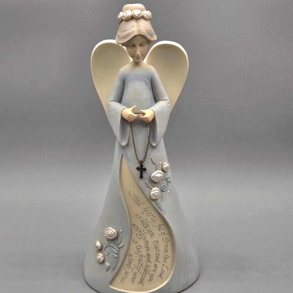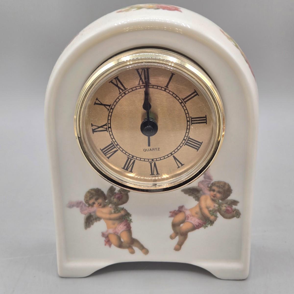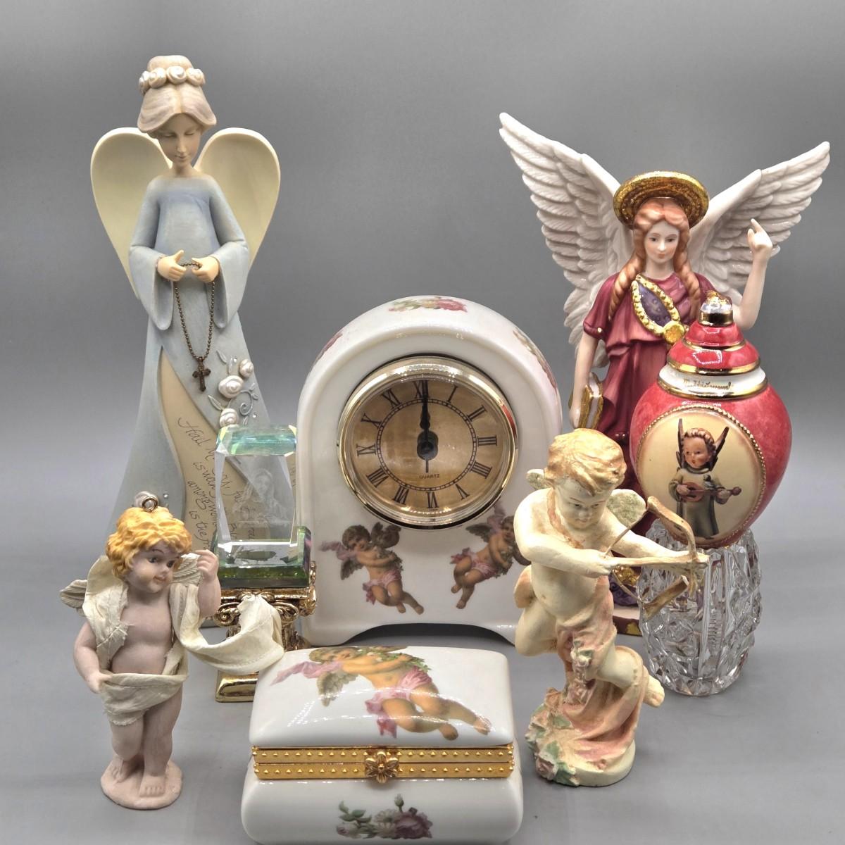 LOT 90L: Liette International Clock and Trinket Box, Coyne's & Company Heavenly Angels Figurine, Enesco Foundations Hail Mary Angel Figurine, and More