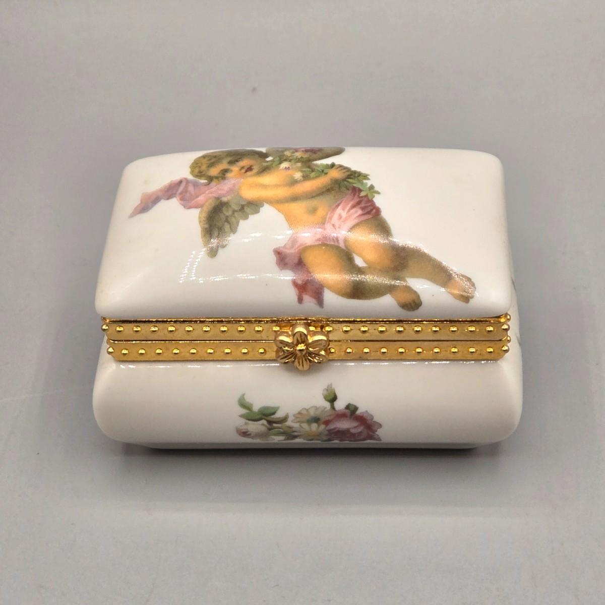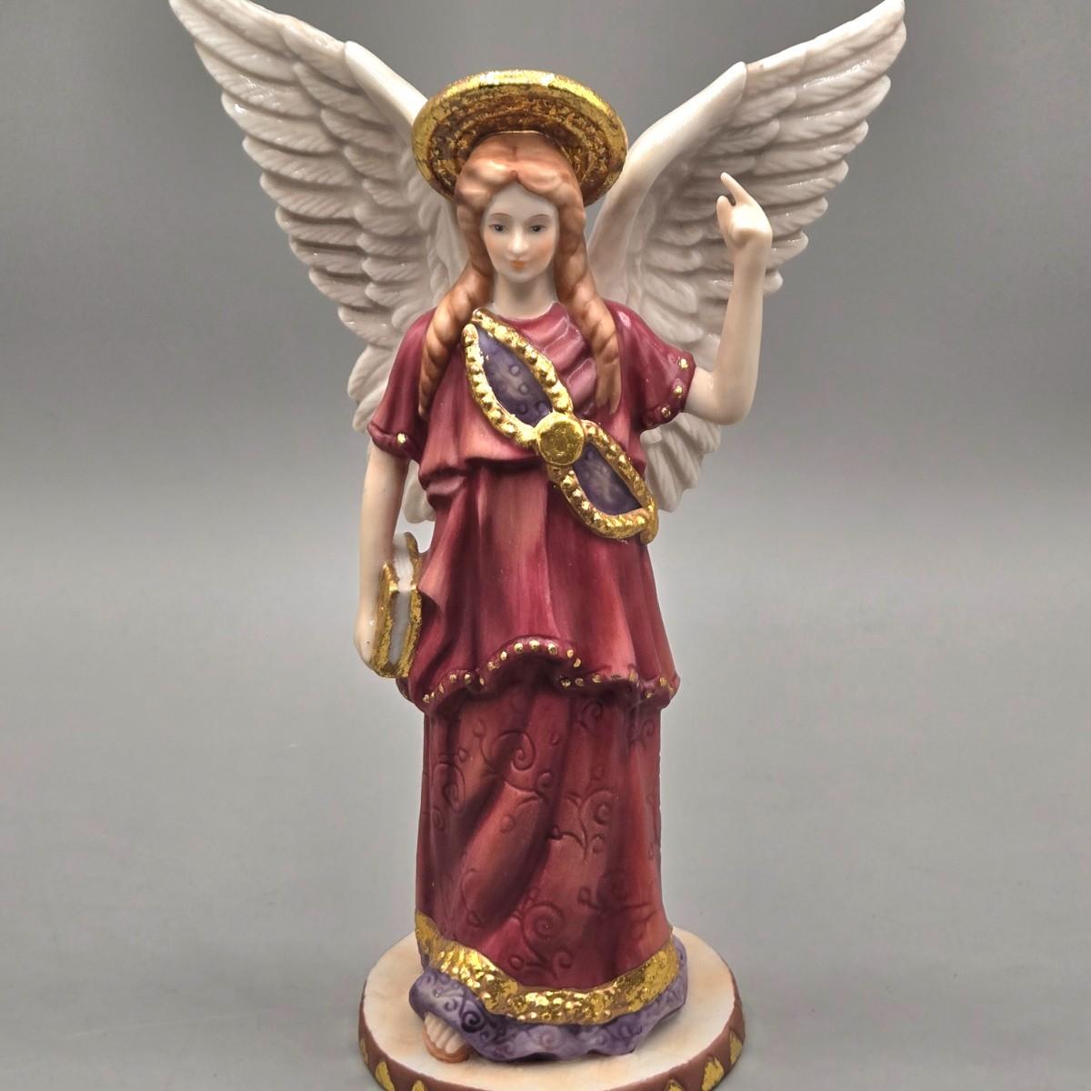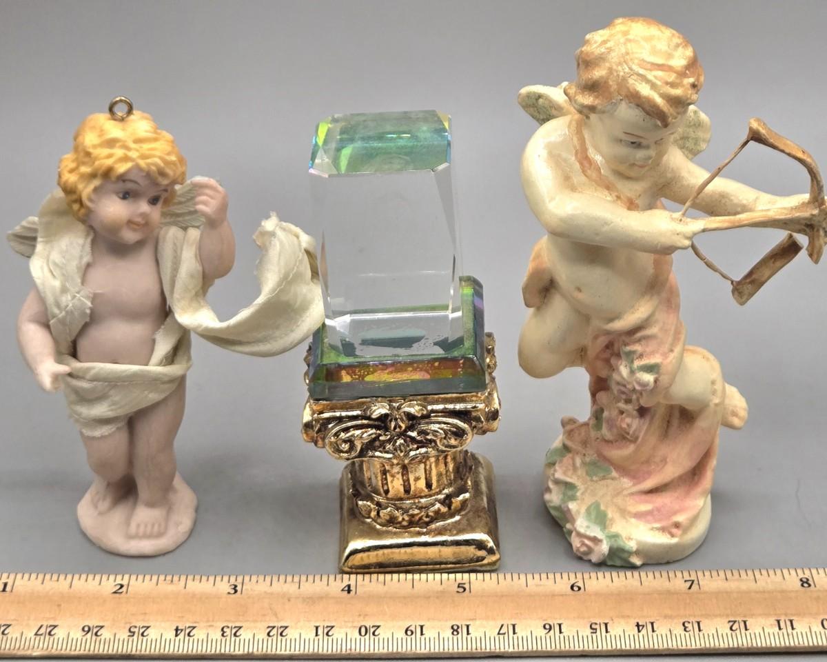 LOT 90L: Liette International Clock and Trinket Box, Coyne's & Company Heavenly Angels Figurine, Enesco Foundations Hail Mary Angel Figurine, and More