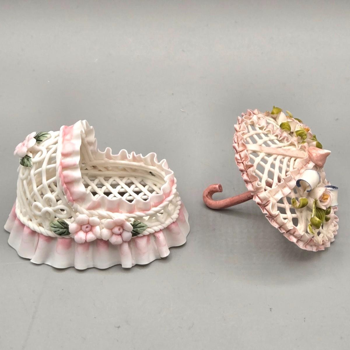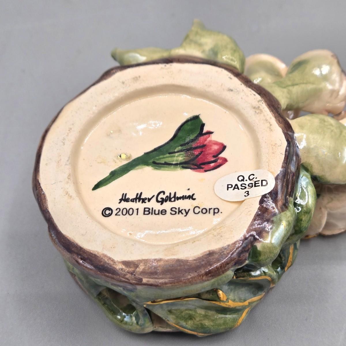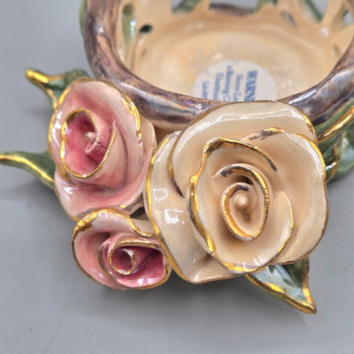 LOT 91L: Vintage Art Glass Rose Paperweight, Royale Stratford Handcrafted Porcelain Flower Bouquet Vase, Vintage Cloisonné Enamel Bell, and More