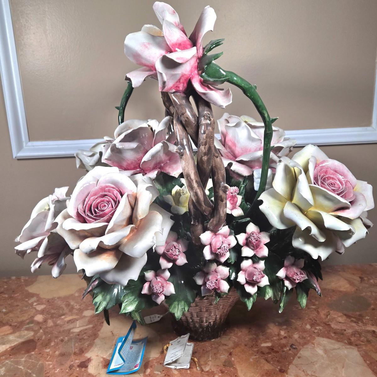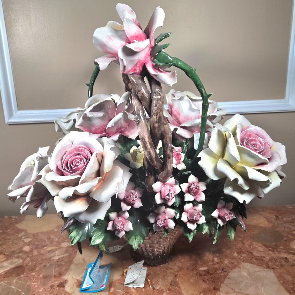 LOT 110D: Large Capodimonte Basket of Roses
