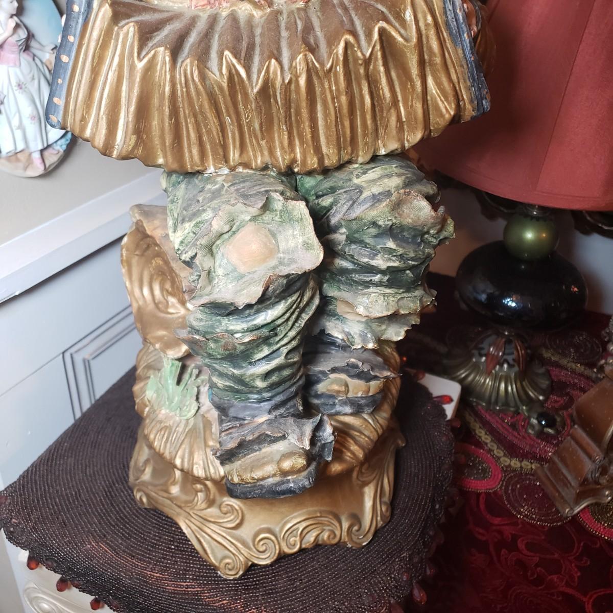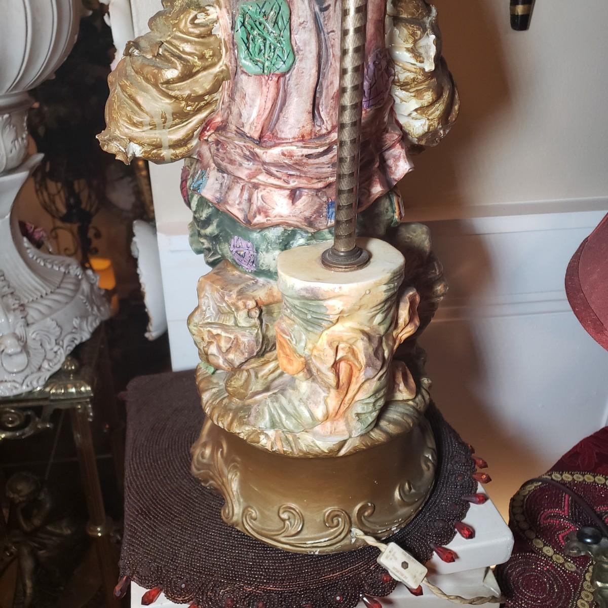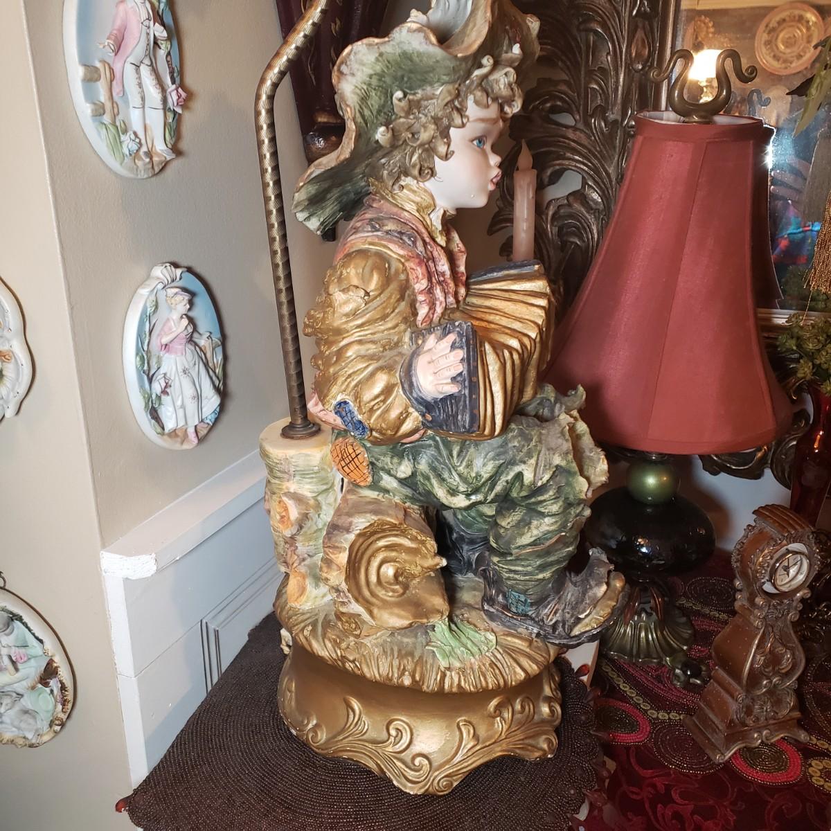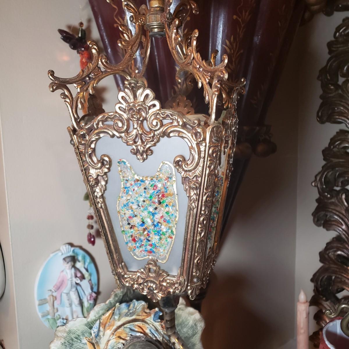 LOT 14: Italian Capodimonte Porcelain Lamp with Pebbled Glass Shade