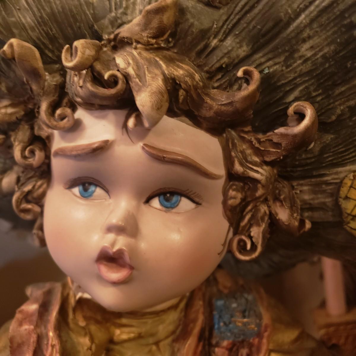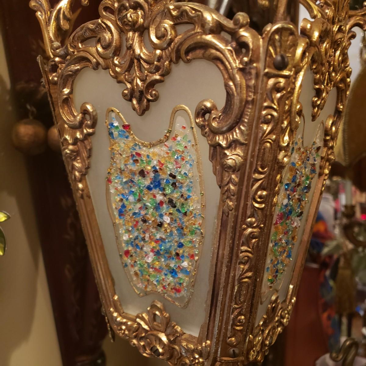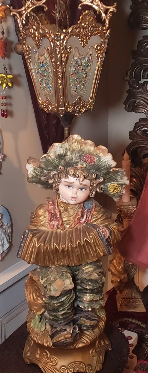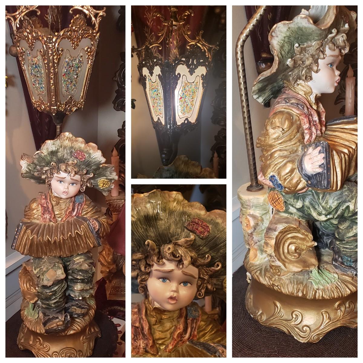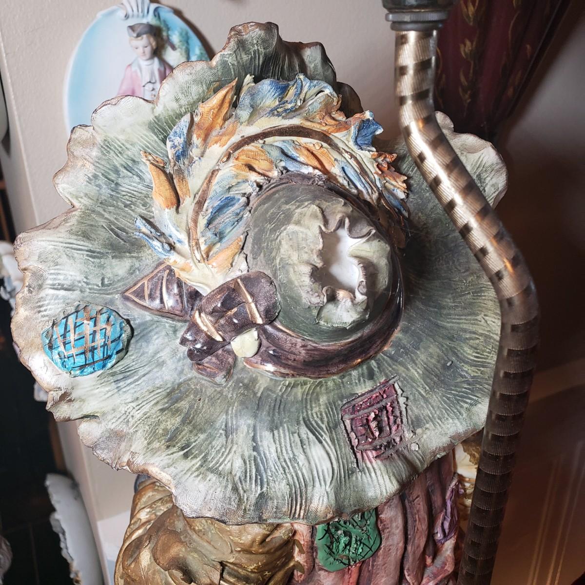 LOT 14: Italian Capodimonte Porcelain Lamp with Pebbled Glass Shade