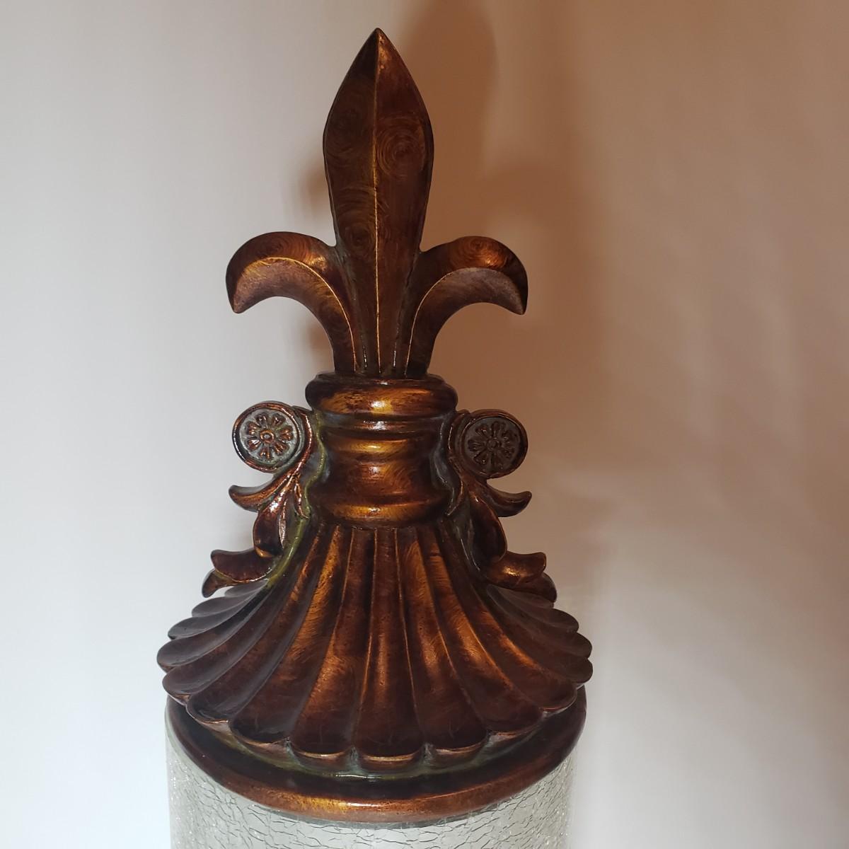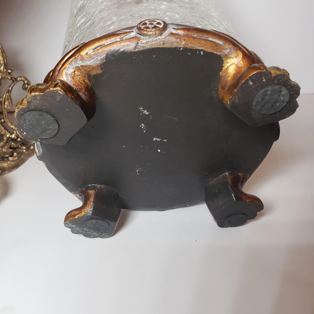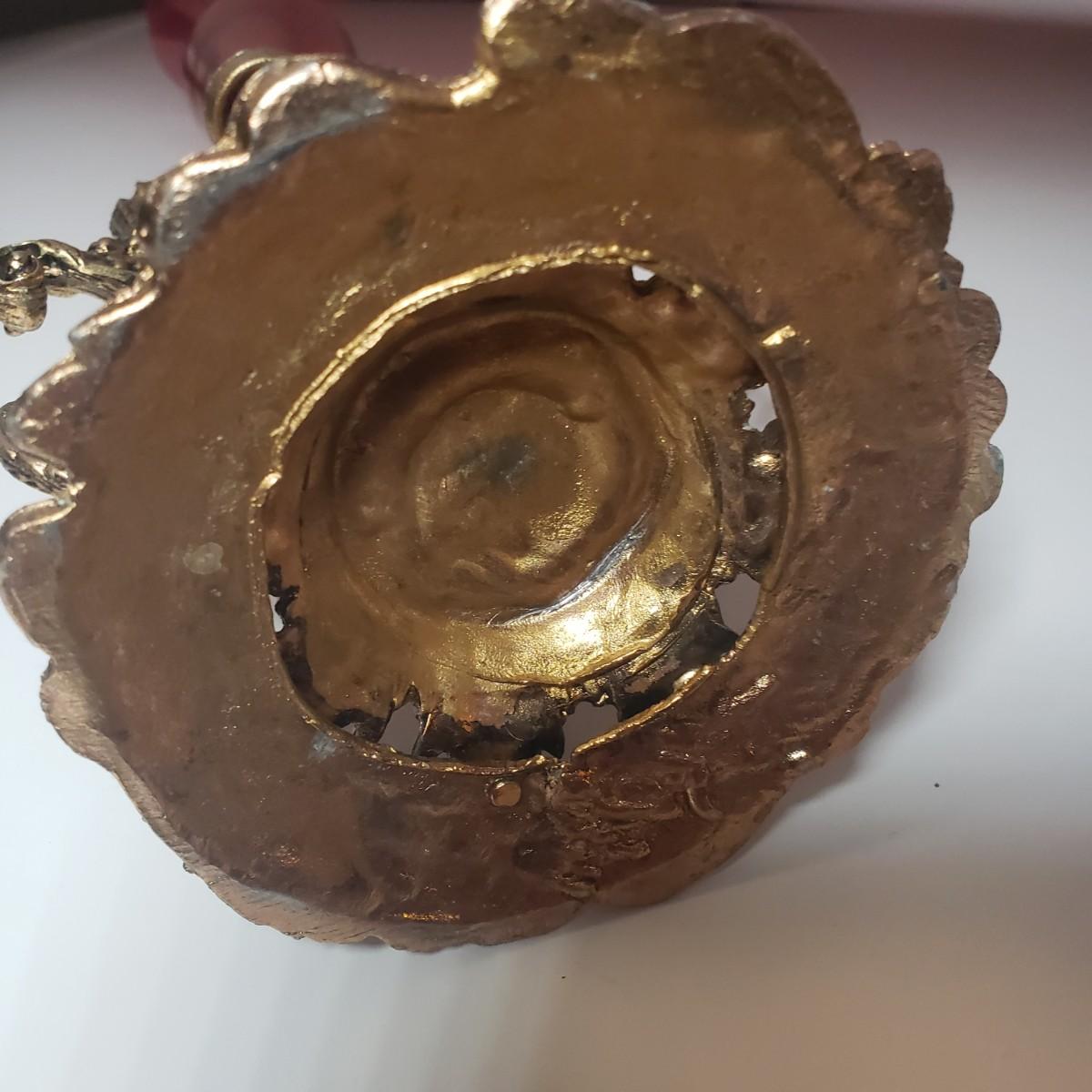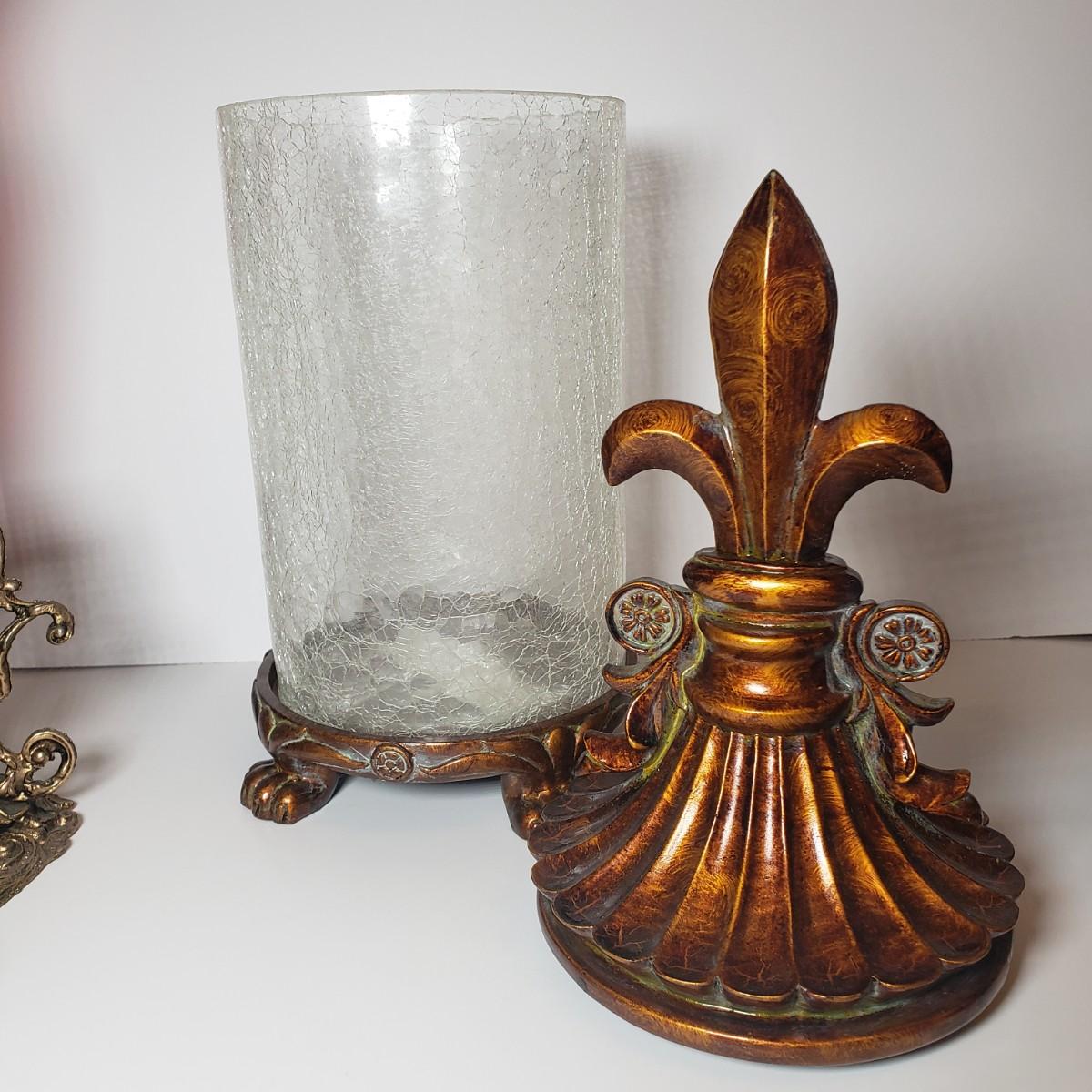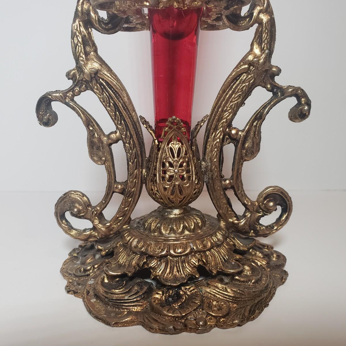 LOT 19: Decorative Collectibles: Glass Bud Vase on Metal Gold Stand, Ornate Perfume Bottle & More
