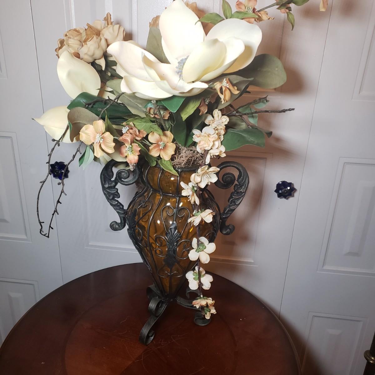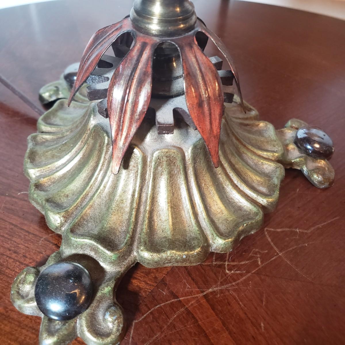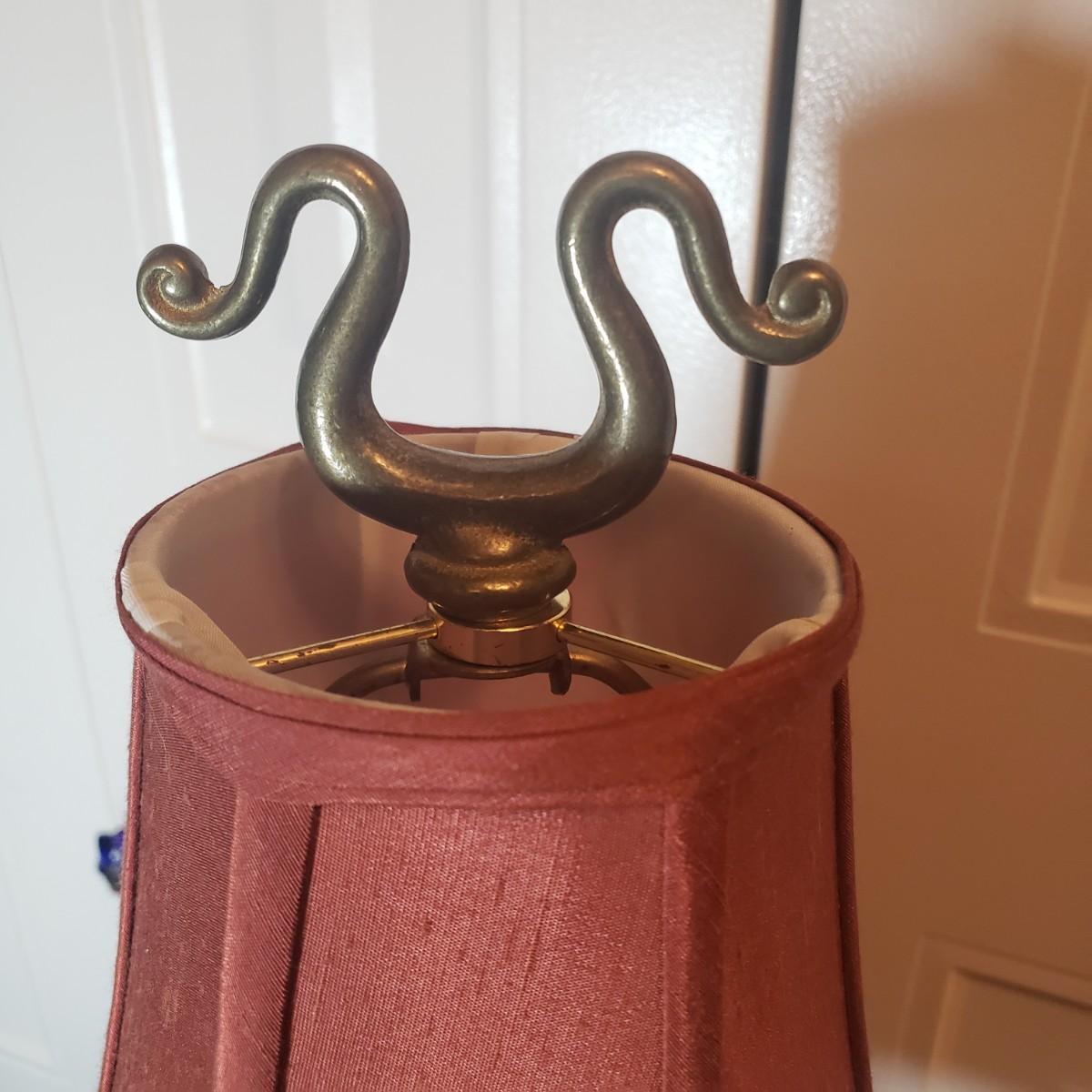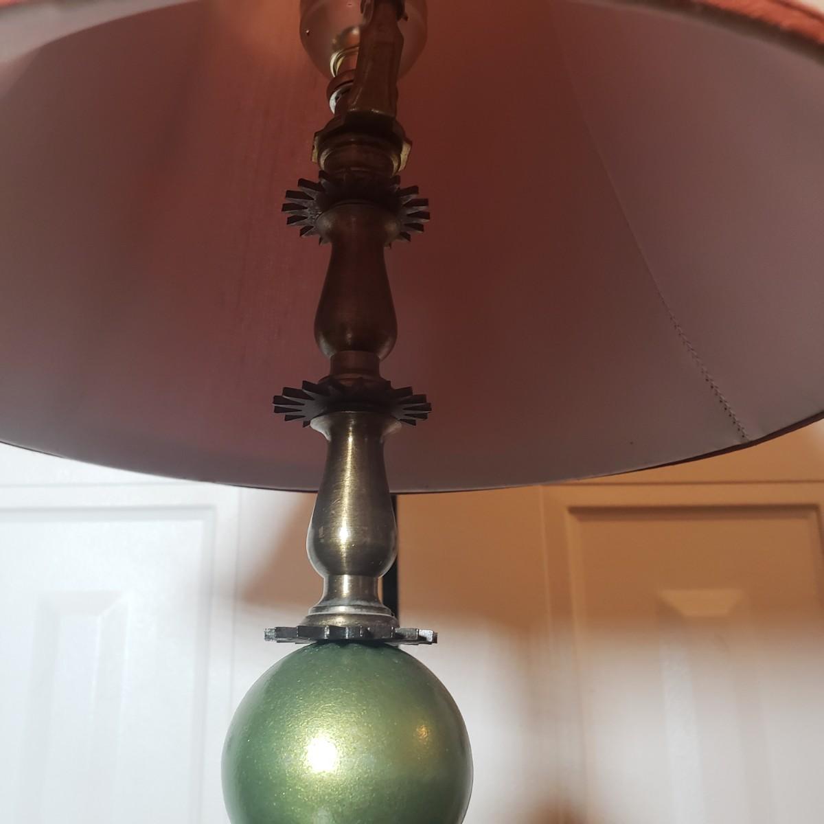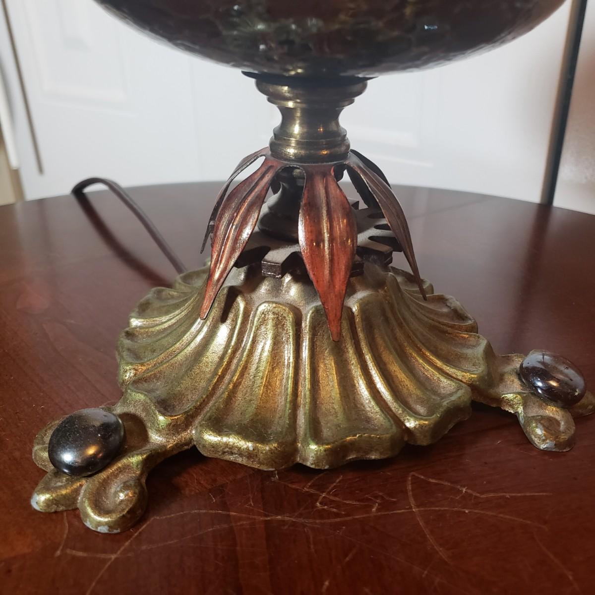 LOT 20: Amber Glass Caged Vase & Decorative Table Tamp with Brass Finial