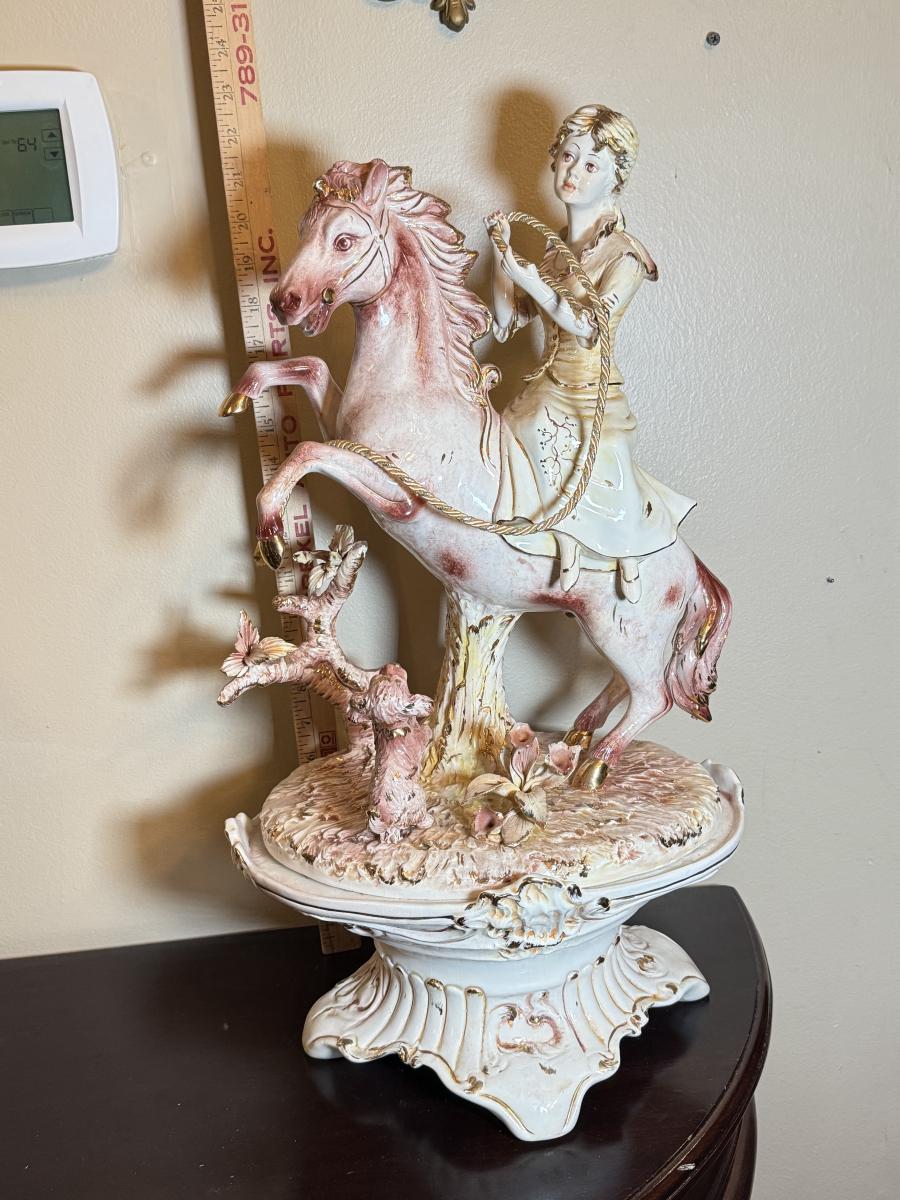 LOT 22: Vintage Italian Equestrian Porcelain Sculpture Lamp Base
